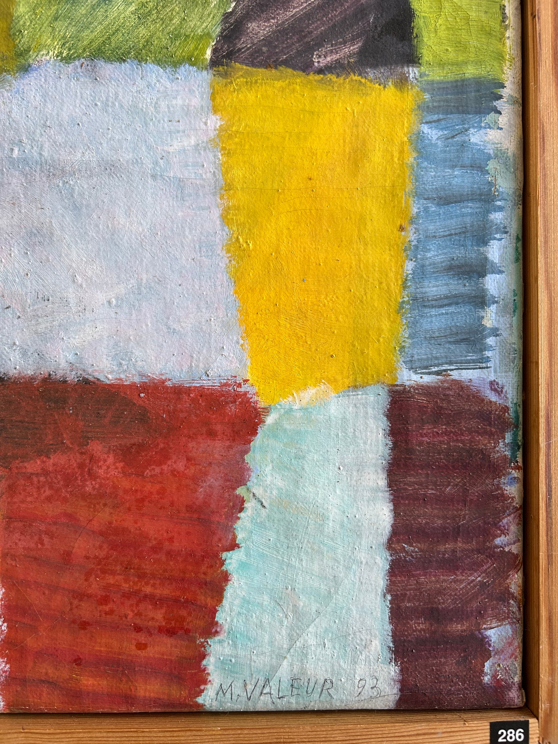 Mogens Valeur (1927-2000). Composition, oil on canvas, signed and dated M. Valeur 93. 40 x 49 (42,5 x 51,5) cm. Pine frame.