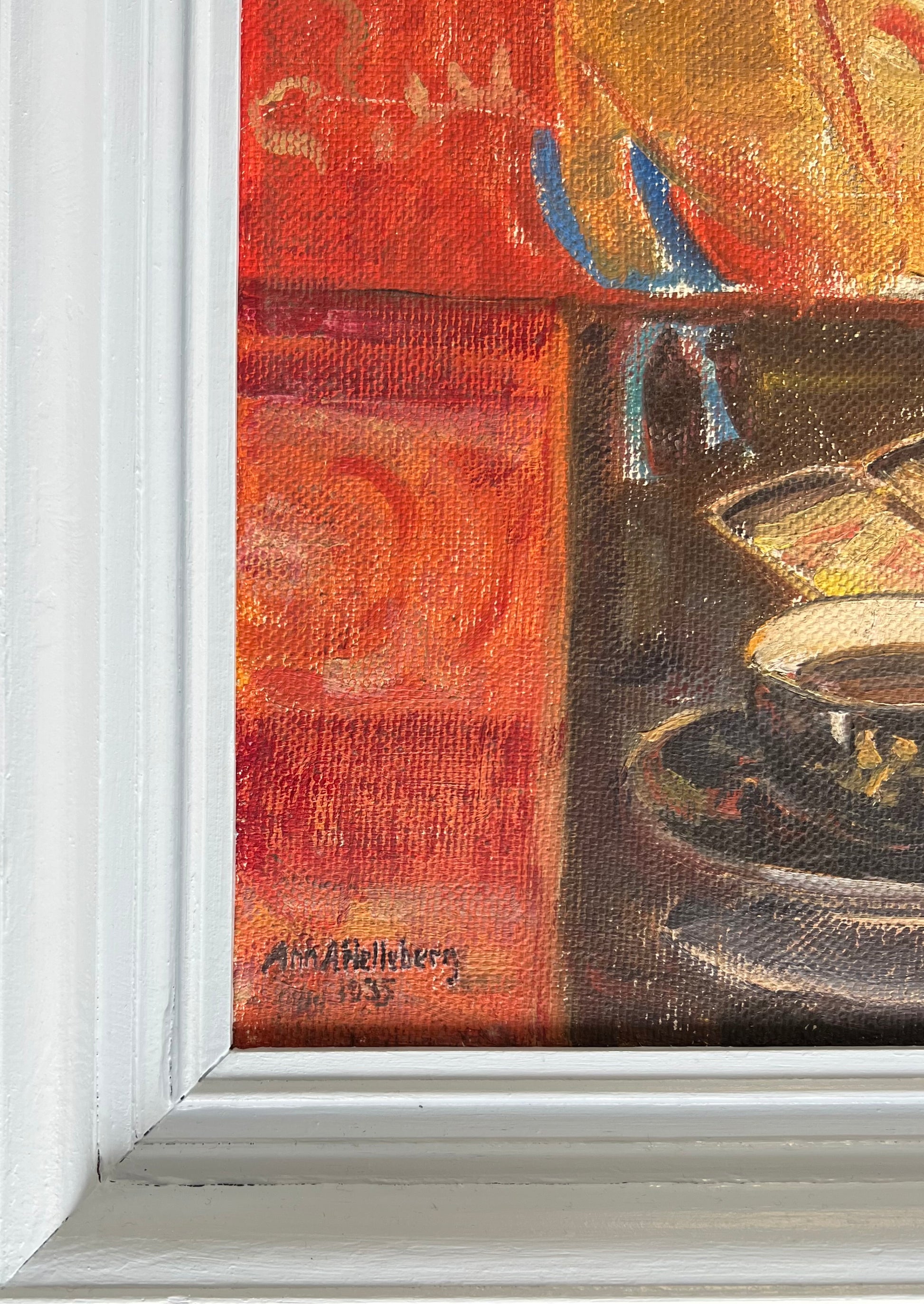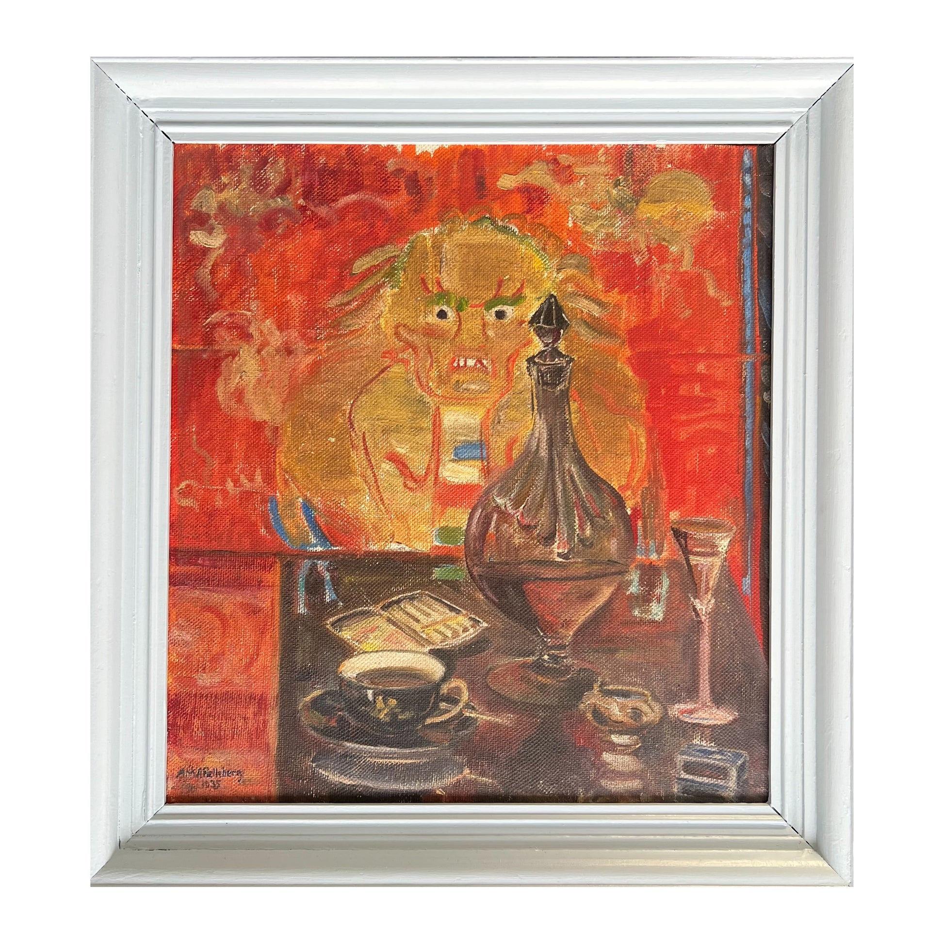 Anna Helleberg (1874-1964). Interior with a phantom, oil on canvas, signed and dated 1935. 45,5x41 (56,5x52) cm. grey painted wood frame.