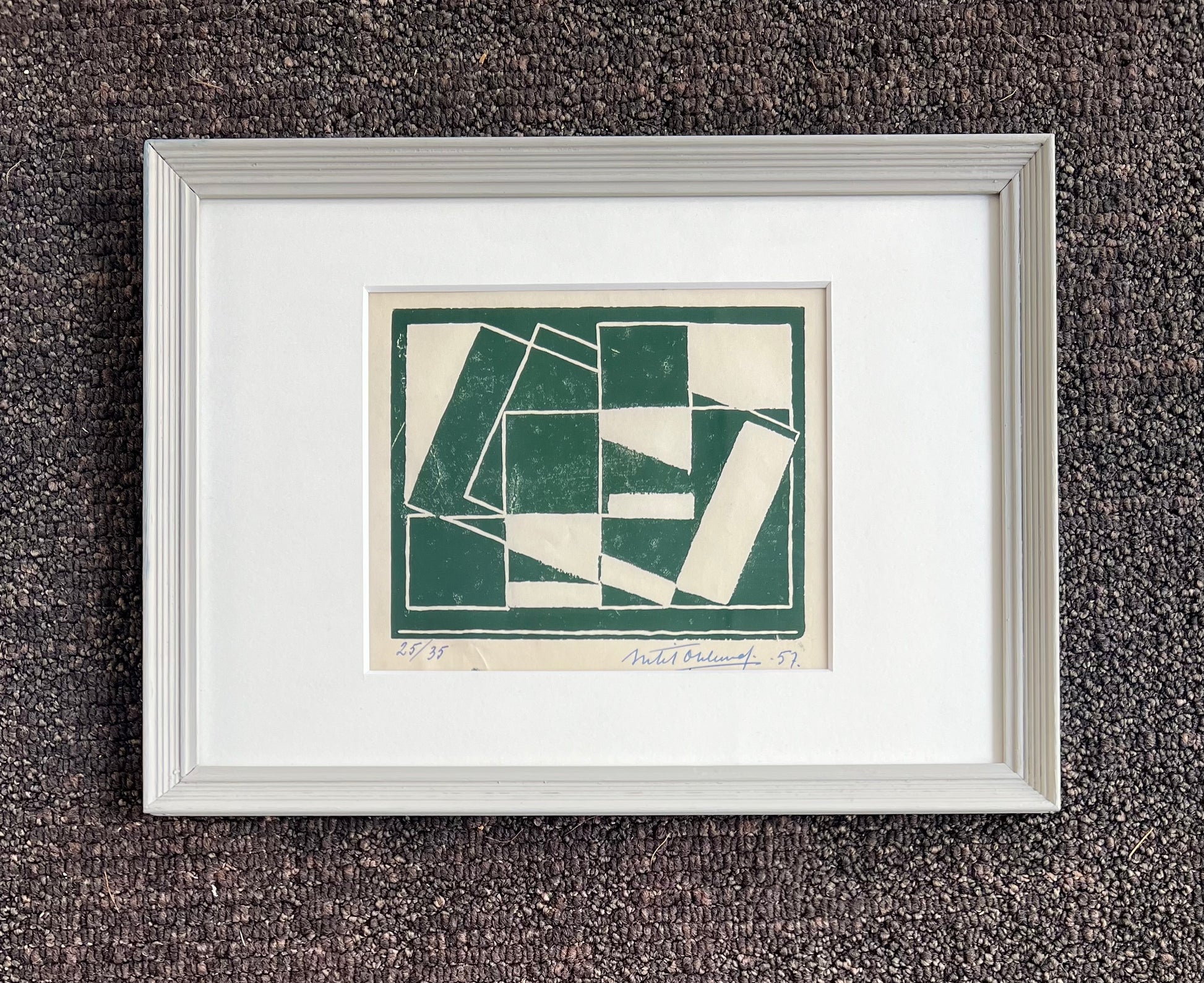 Bertil Öhlund (1923-2003). Composition, linocut, 25/35, signed and dated 1957. 14 x 17 (24 x 32) cm. Grey painted frame.
