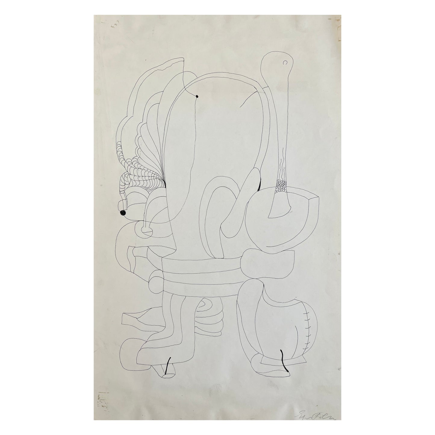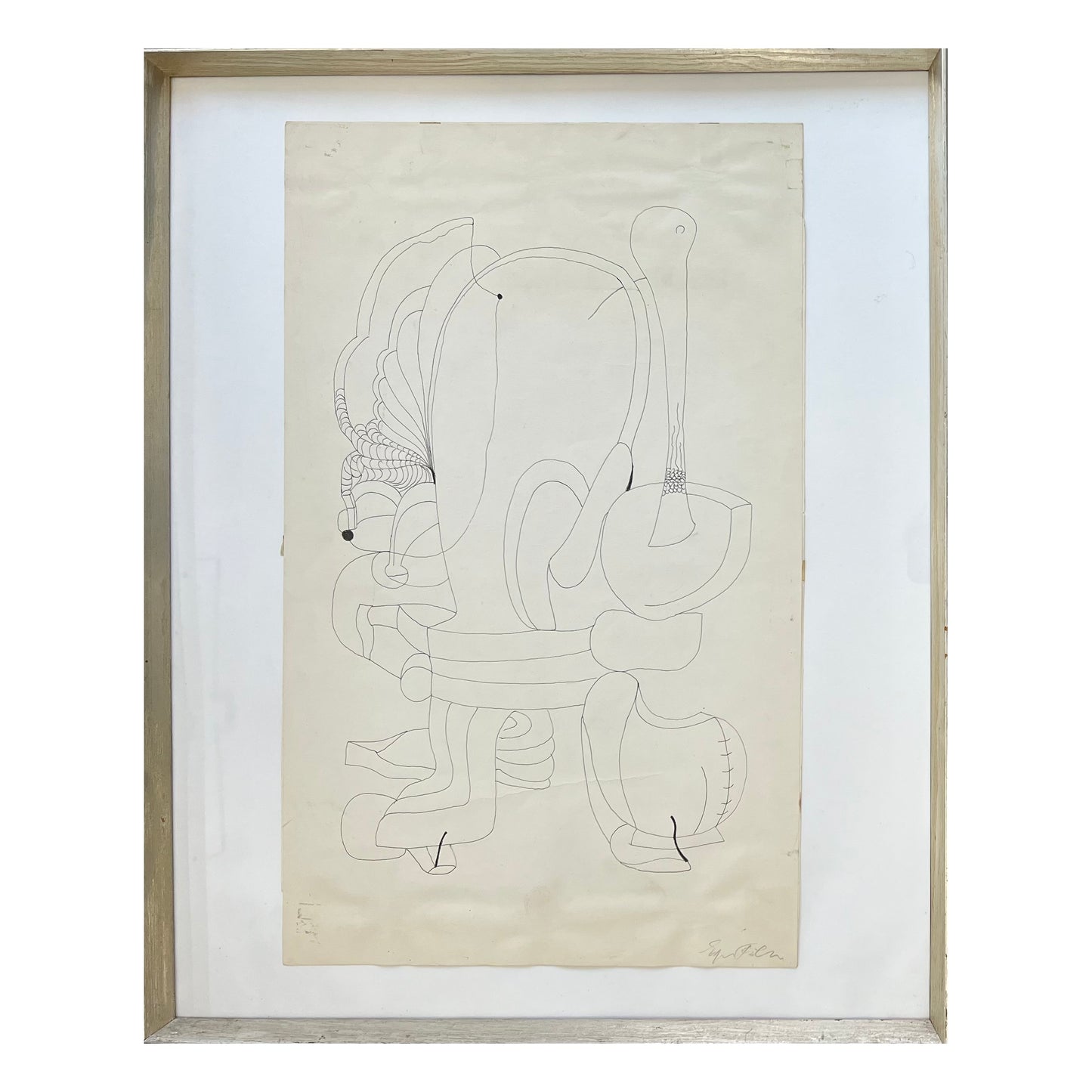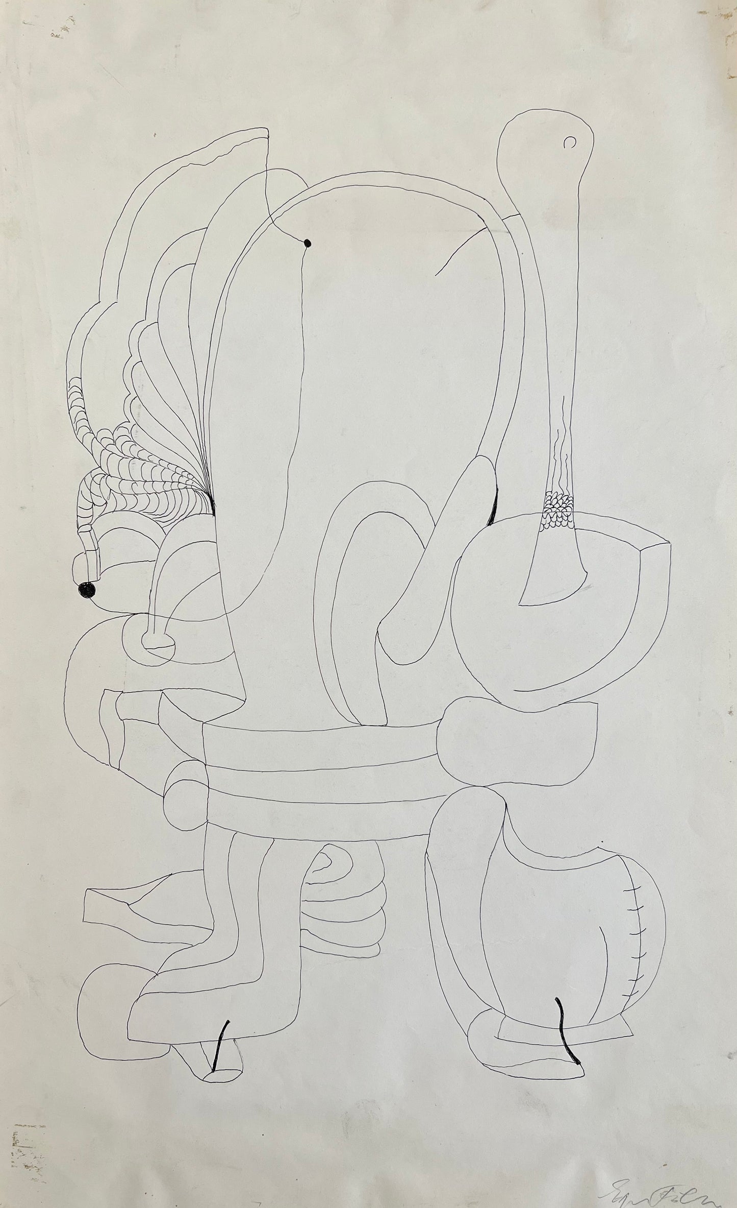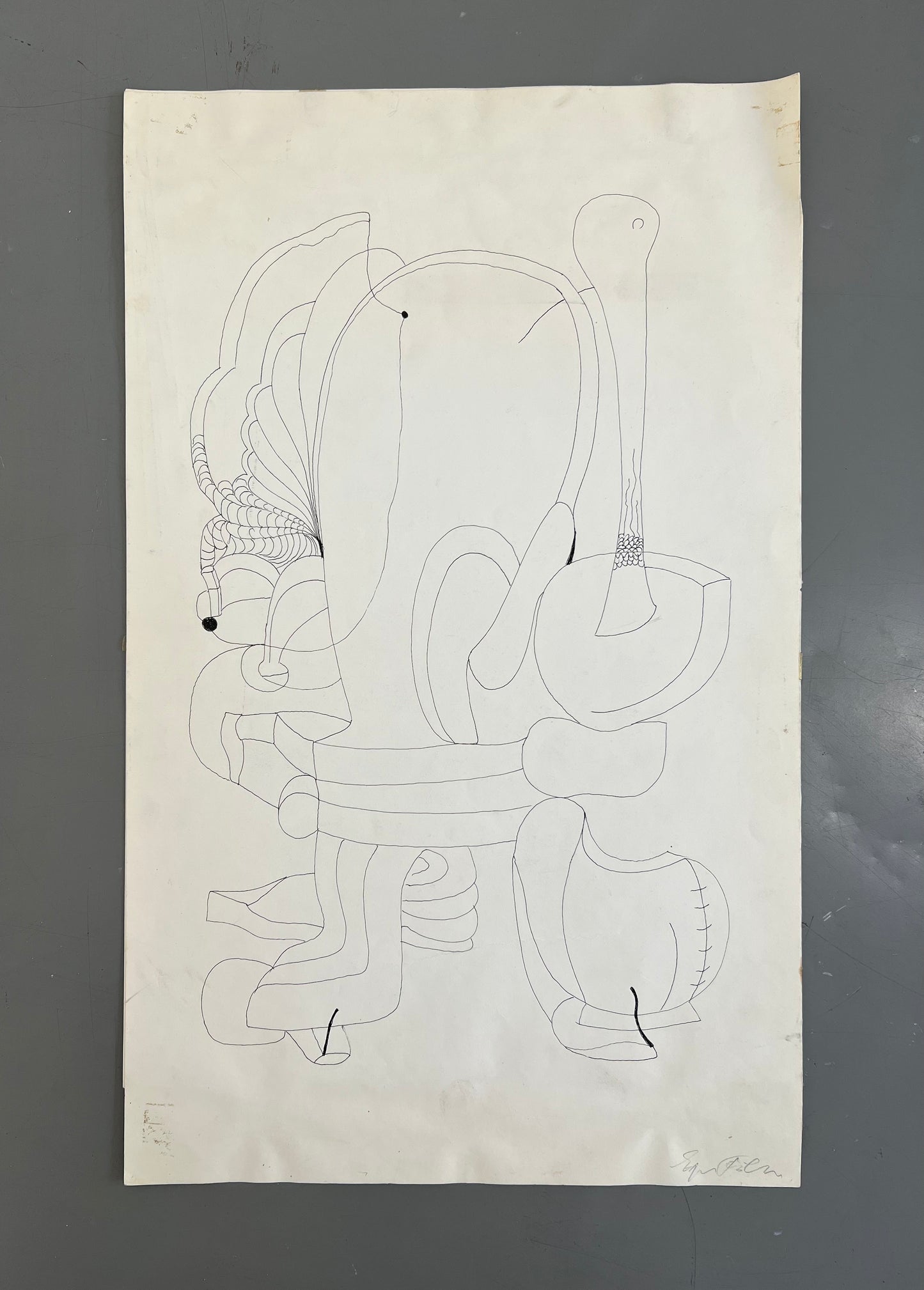 Egon Fischer (1935-2016). Composition, pen on paper, signed. 59 x 36 cm. Unframed.