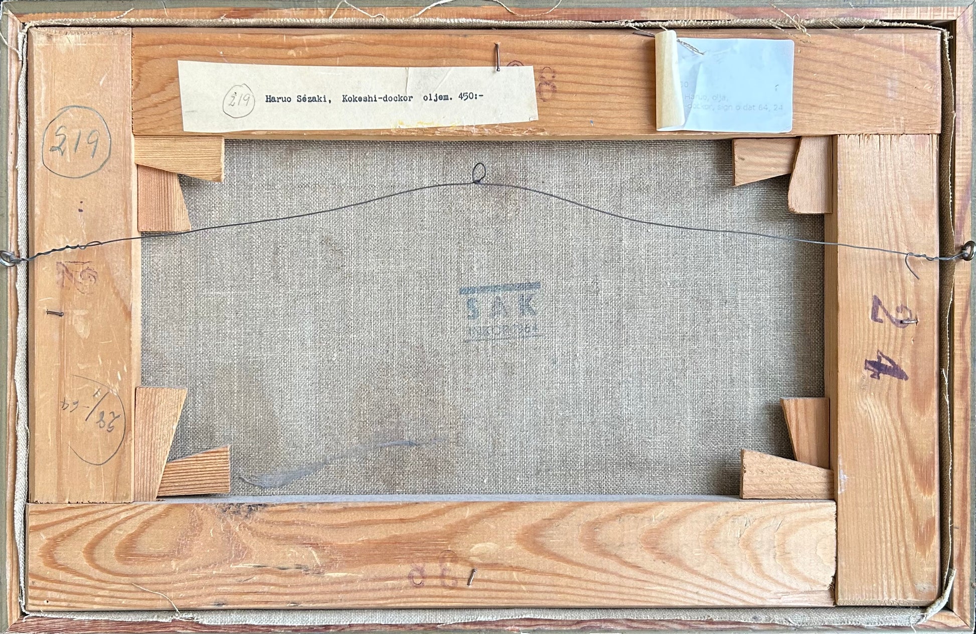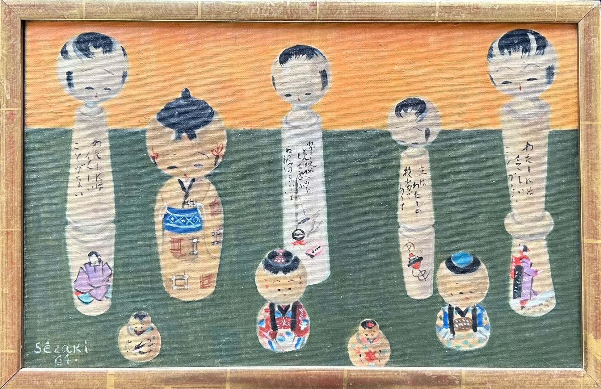 Haruo Sézaki (1907-1977). “Kokeshi-dockor”, oil on canvas, signed. 24 x 38 (26 x 40) cm. Framed.