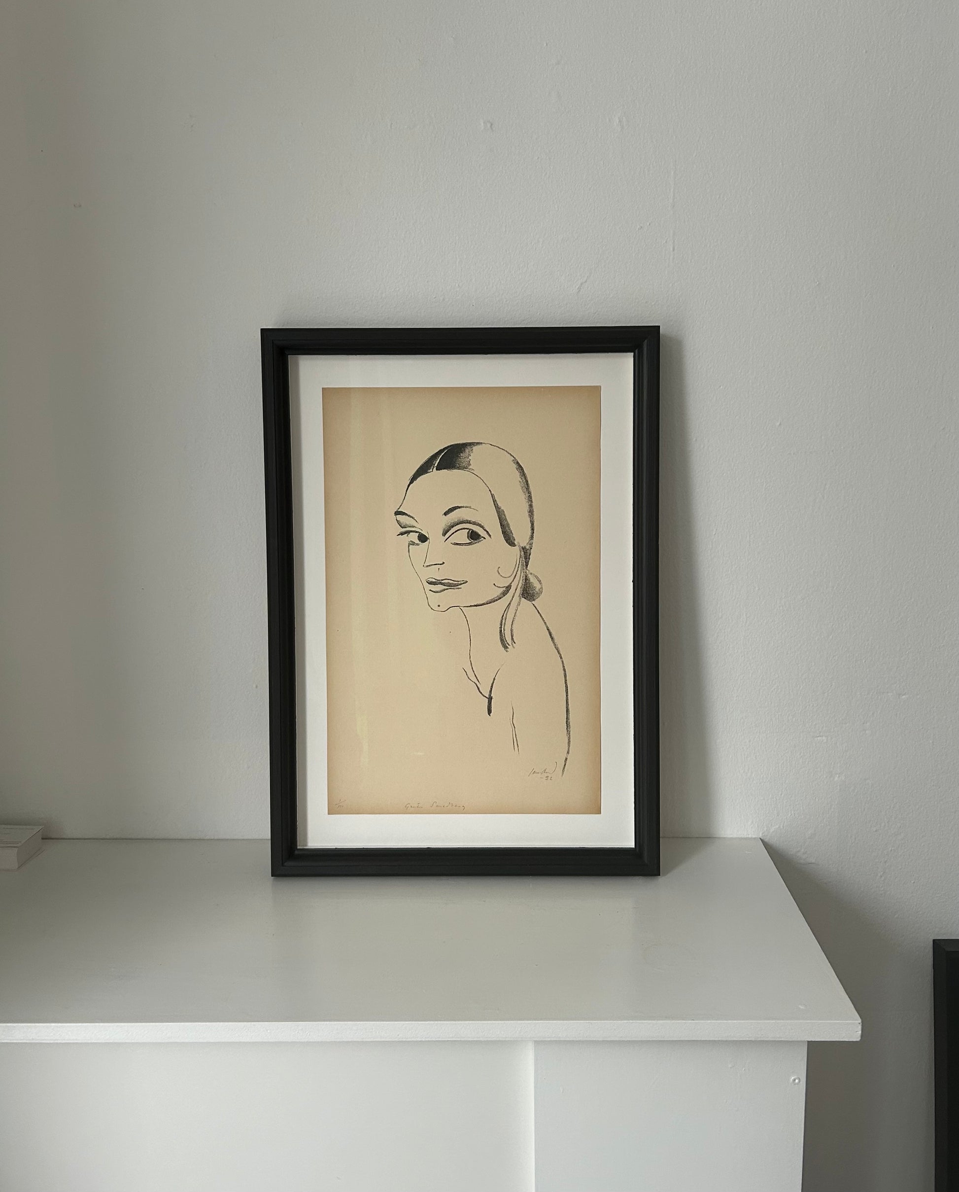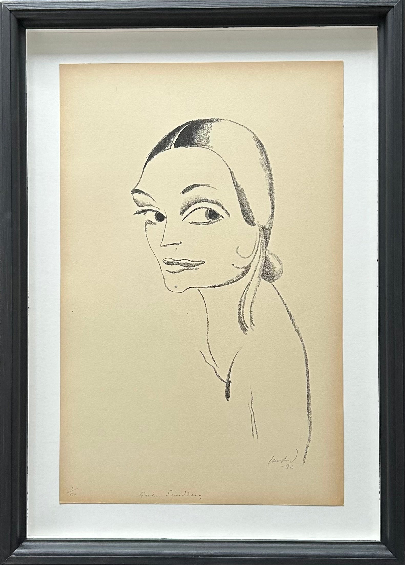 John Jon-And (1889-1941). Portrait of Greta Smedberg, litography, nr.1/150, signed and dated Jon And -22. 48 x 31 (62 x 43,5 x 4,5) cm. New hand-painted wood frame, museum glass.