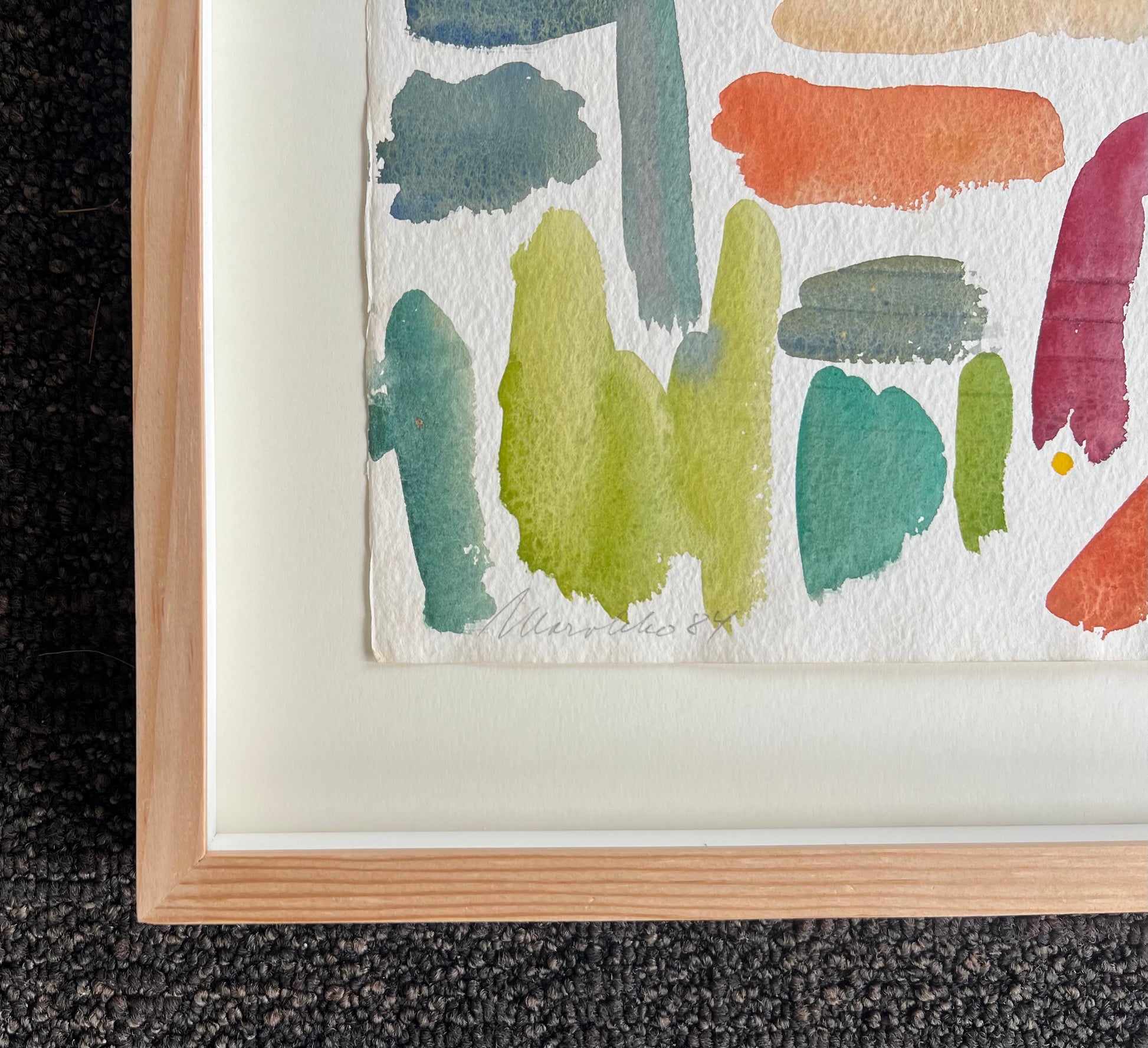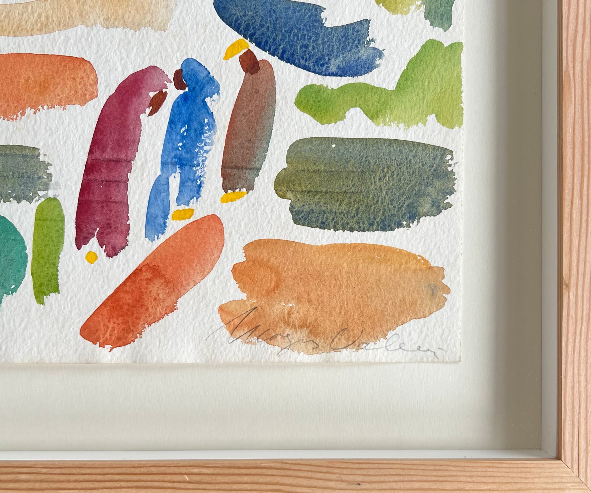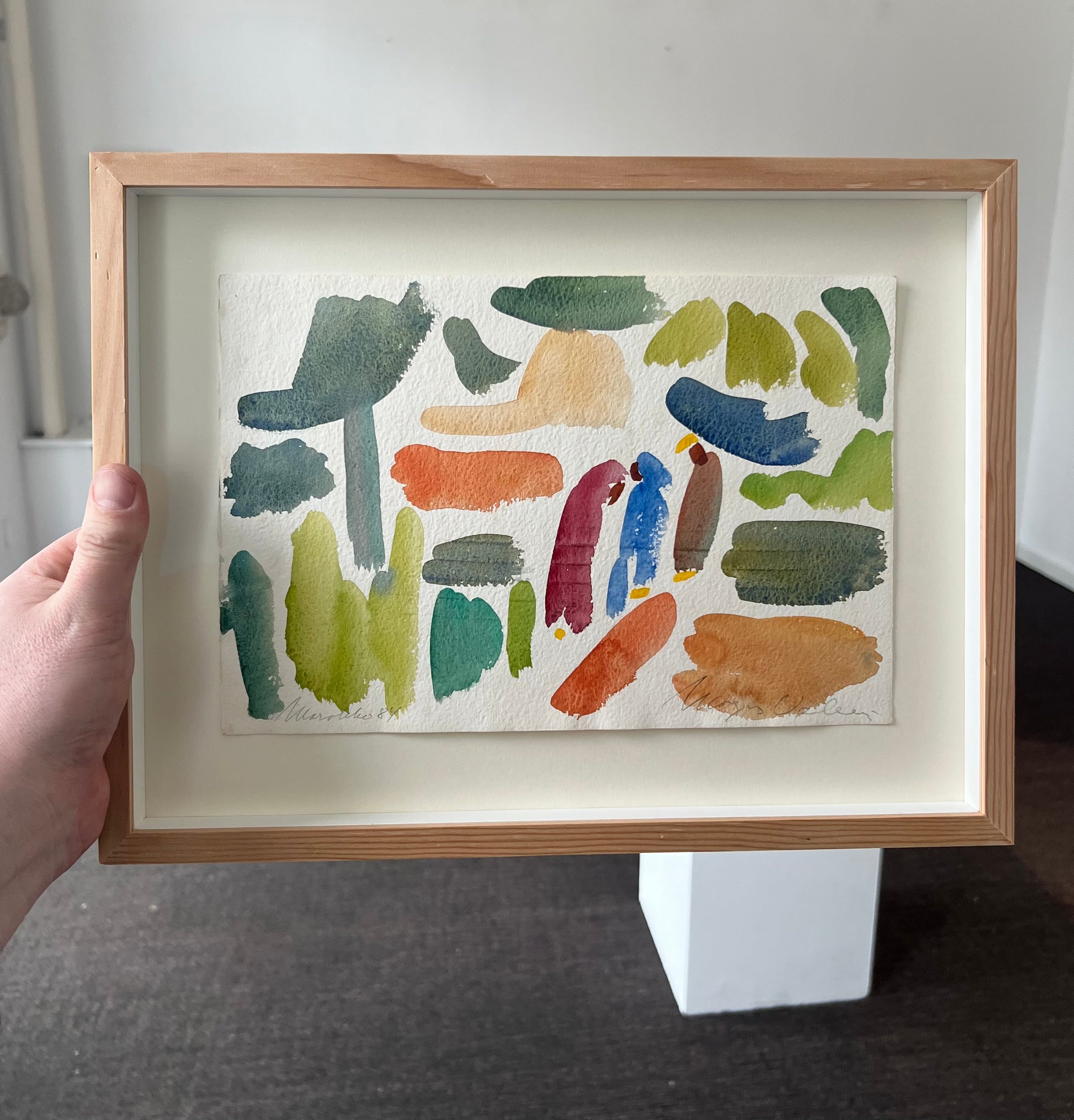 Mogens Valeur (1927-2000). Composition, watercolour on paper, signed and dated Mogens Valeur, Marokko, 1984. 19 x 28 (28 x 37) cm. New Douglas pine frame, museumglass.
