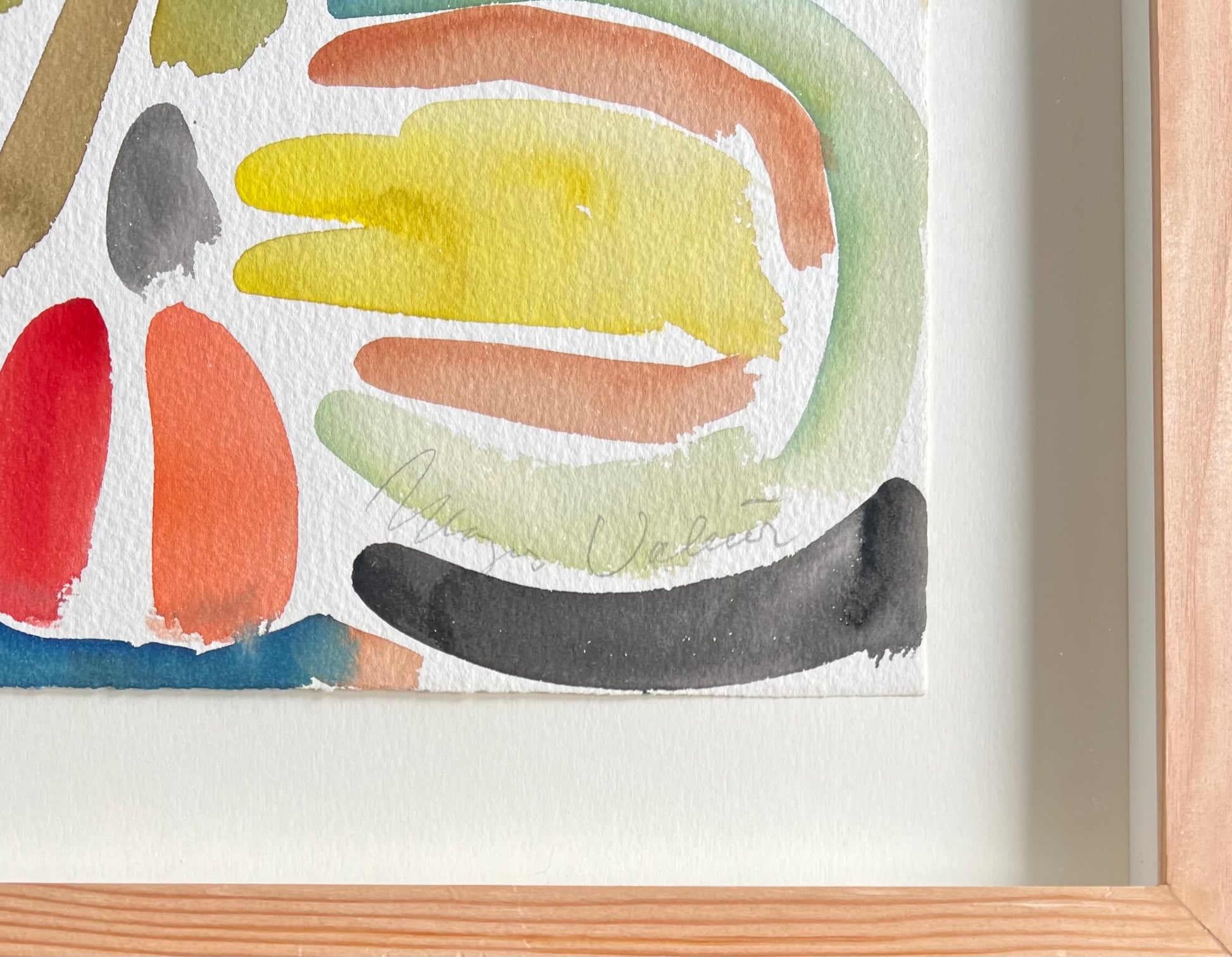 Mogens Valeur (1927-2000). Composition, watercolour on paper, signed and dated Mogens Valeur, India, 1987. 19 x 28 (28 x 37) cm. New Douglas pine frame, museumglass.