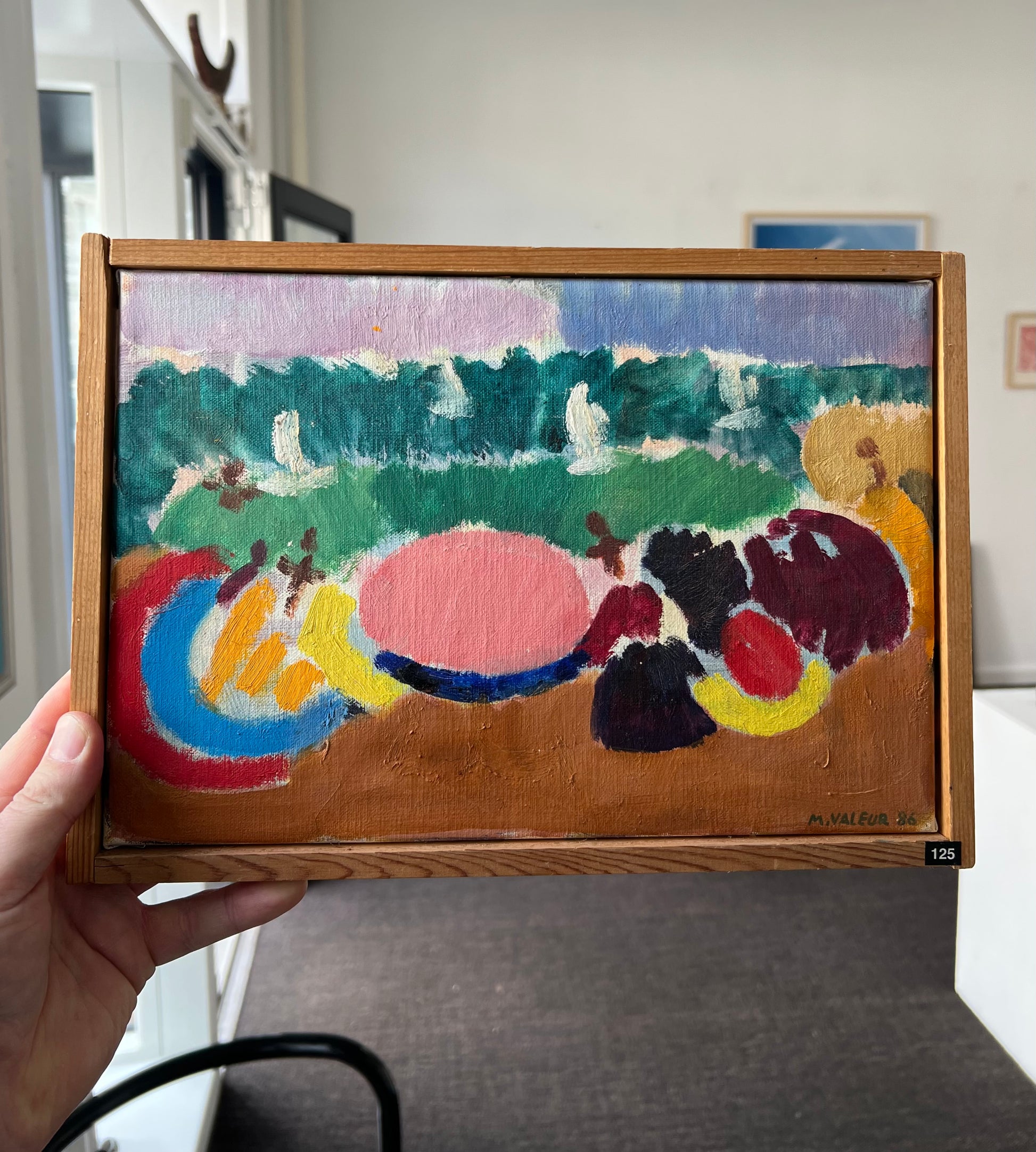 Mogens Valeur (1927-2000). Composition, oil on canvas, signed. 21 x 29 (22 x 30) cm. Pineframe.