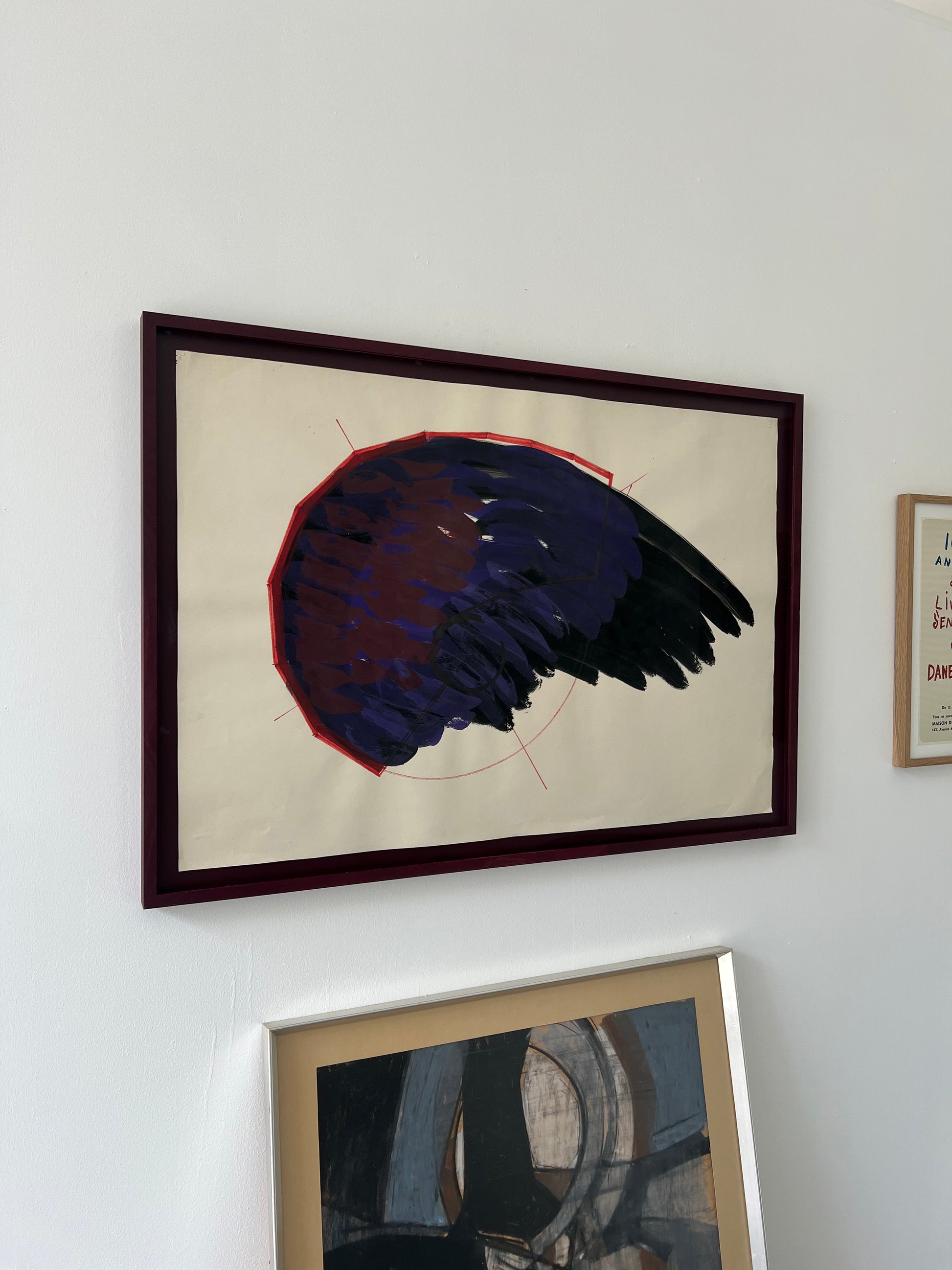 Niels Guttormsen (1932-2020). Sketch for “Vingehuset”, gouache on paper, unsigned. 62 x 90 (70 x 99) cm. New frame, acid free mounting, museumglass.