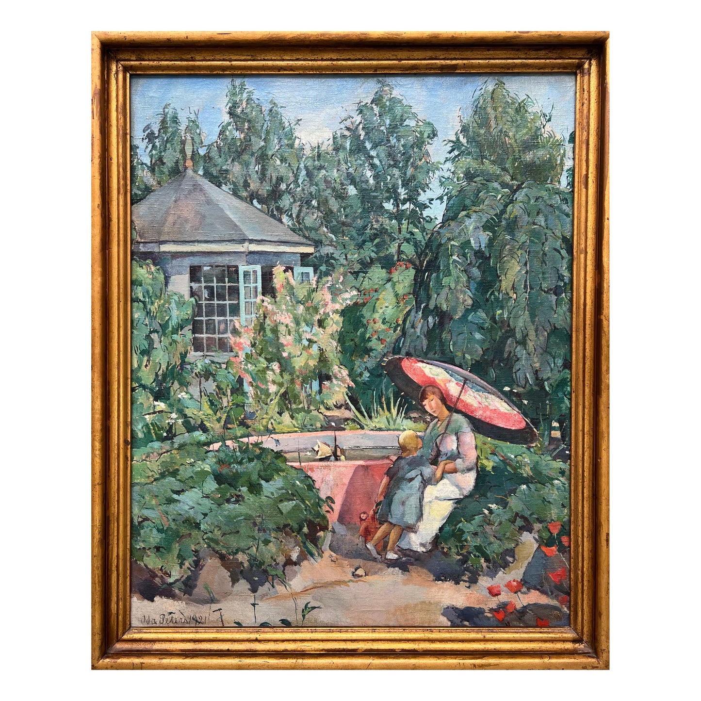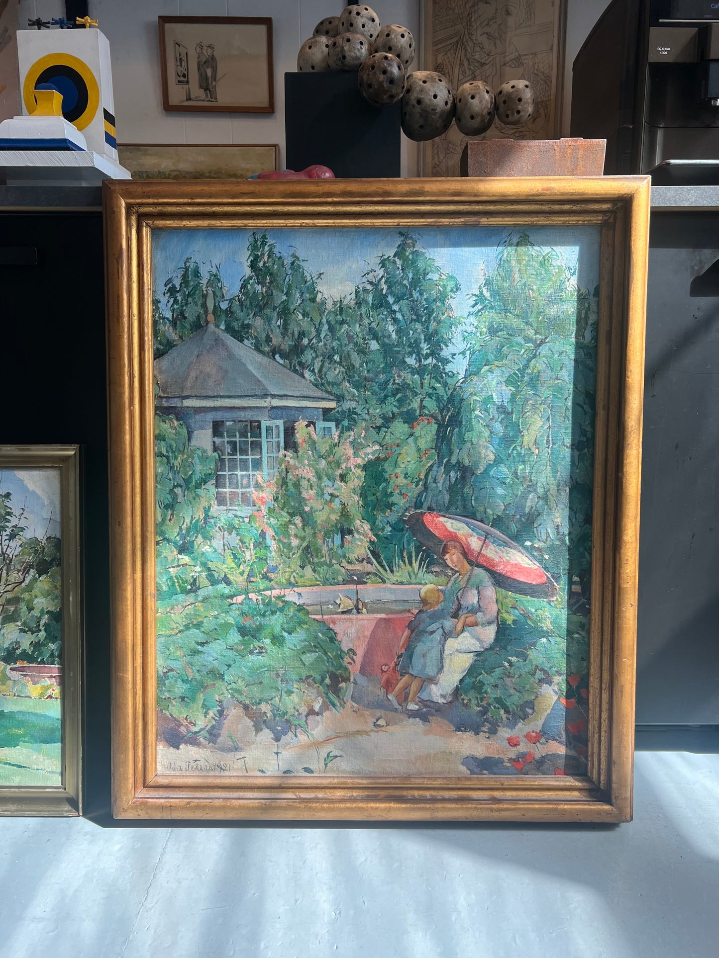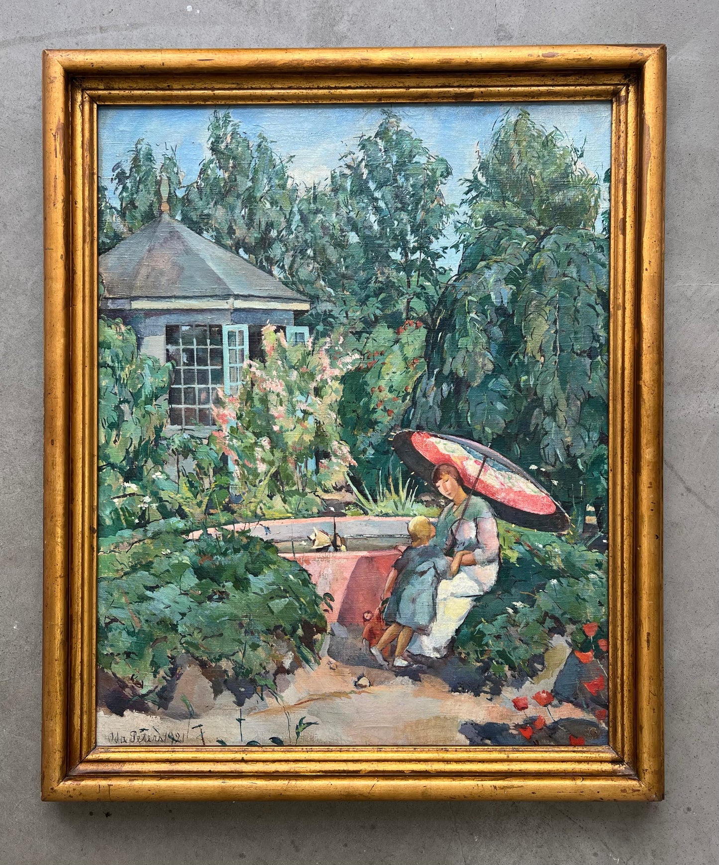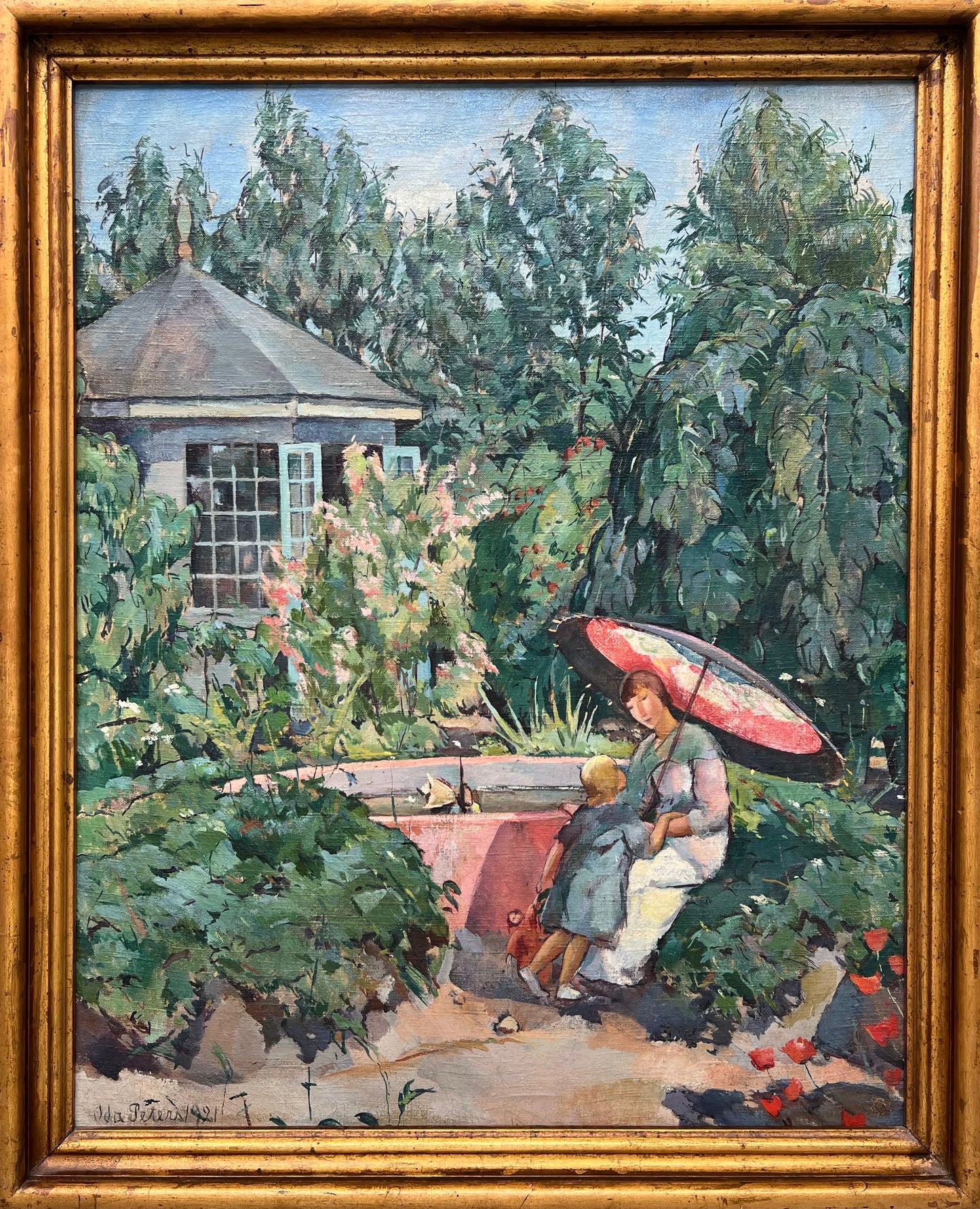 Oda Peters (1894-1987). Lady with a parasol, oil on canvas, signed and dated 1921. 82 x 65 (92 x 76) cm.