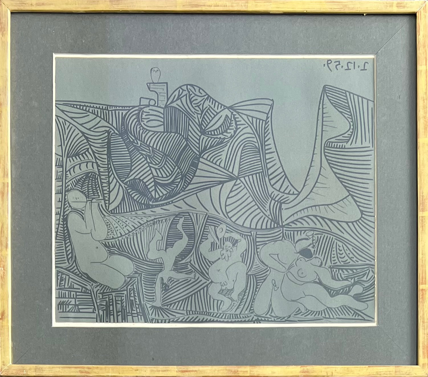 Pablo Picasso, after. Bacchanale au Hibo, linocut, unsigned. 27 x 34 (38 x 44) cm. Framed.
