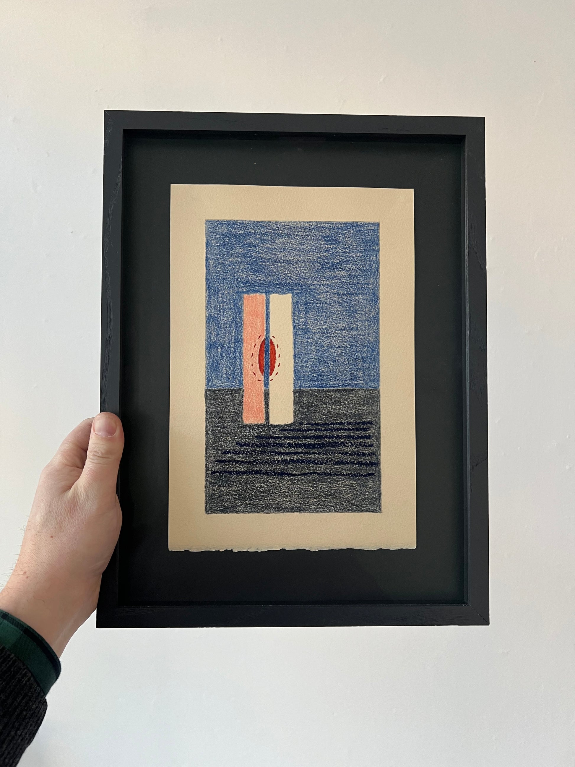 Patricia Perales Garcia (b. 1991). Motherhood (Joy), oil pastel, oil crayon and colour pencil on arches paper, signed on the back. 28 x 19 (39 x 29) cm. New wood frame, museumglass.