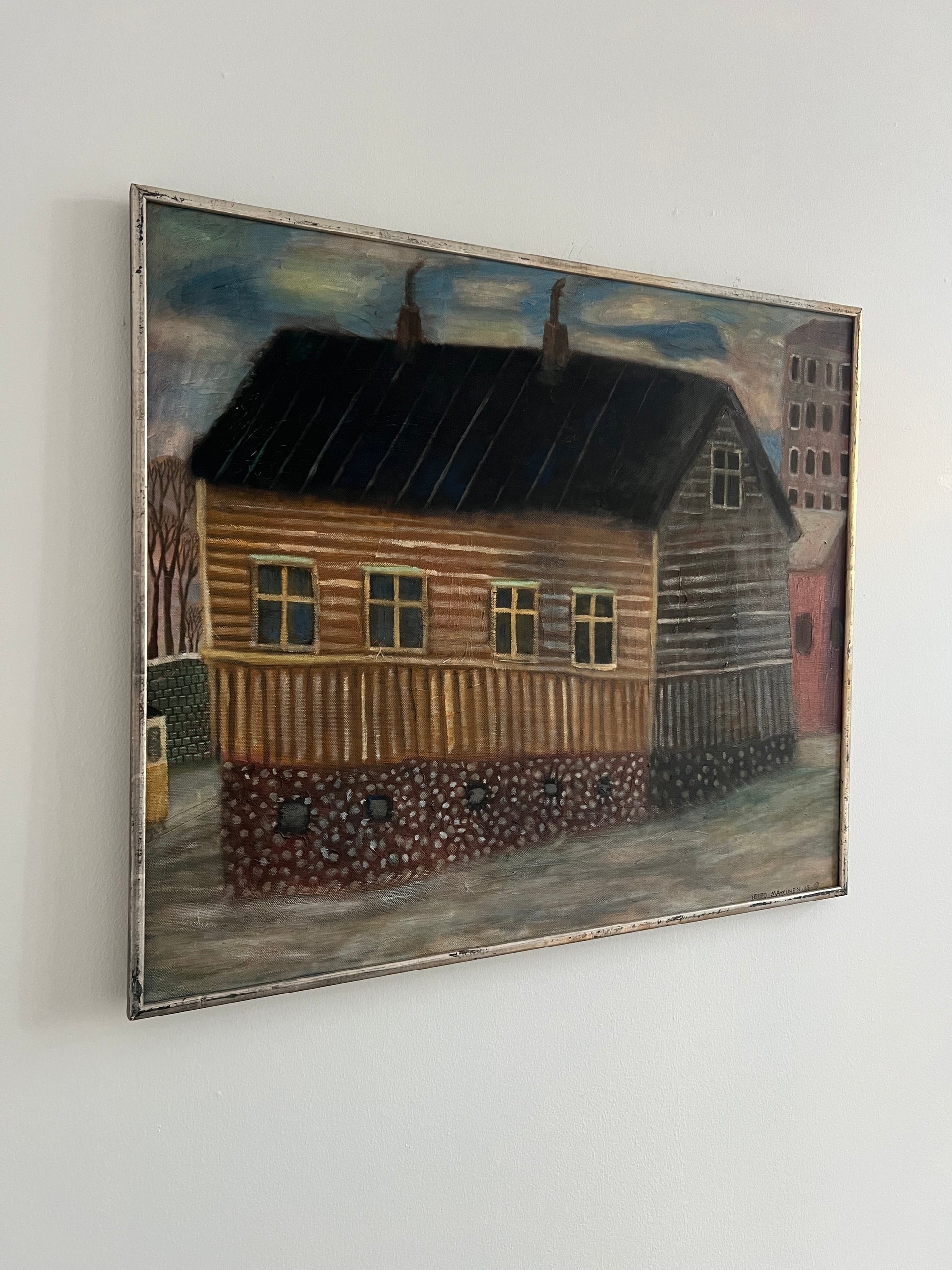 Seppo Mattinen (1930-2022). “Gult hus”, oil on canvas, signed and dated 1968. 72 x 84 (74 x 86) cm. Some wear. Framed.