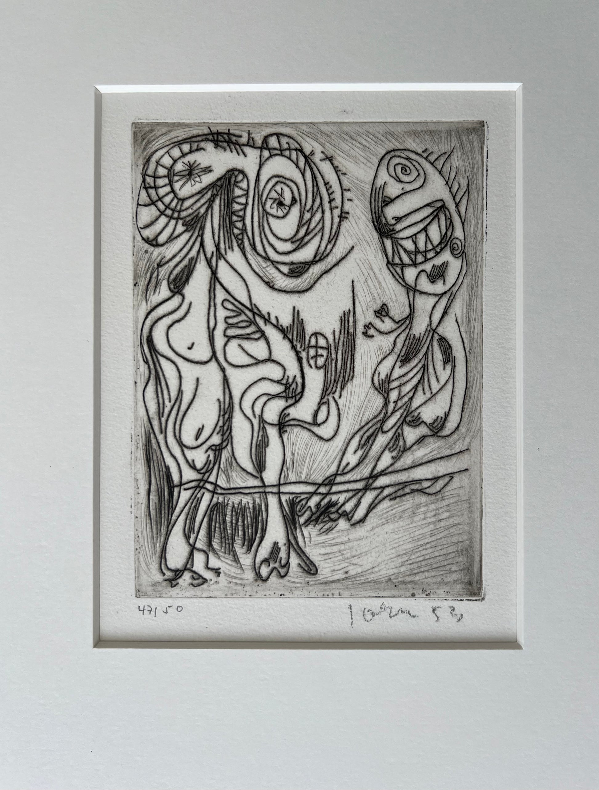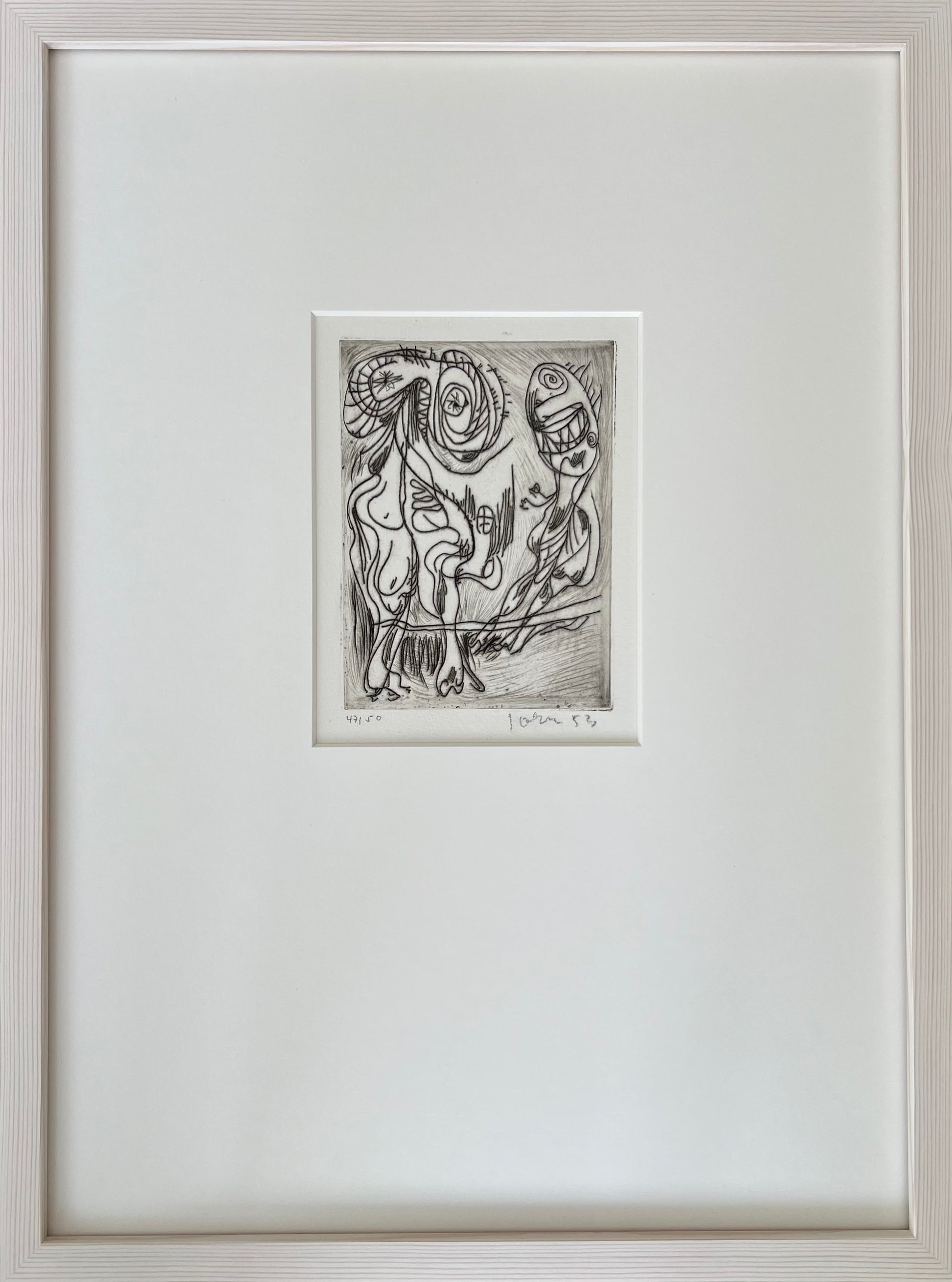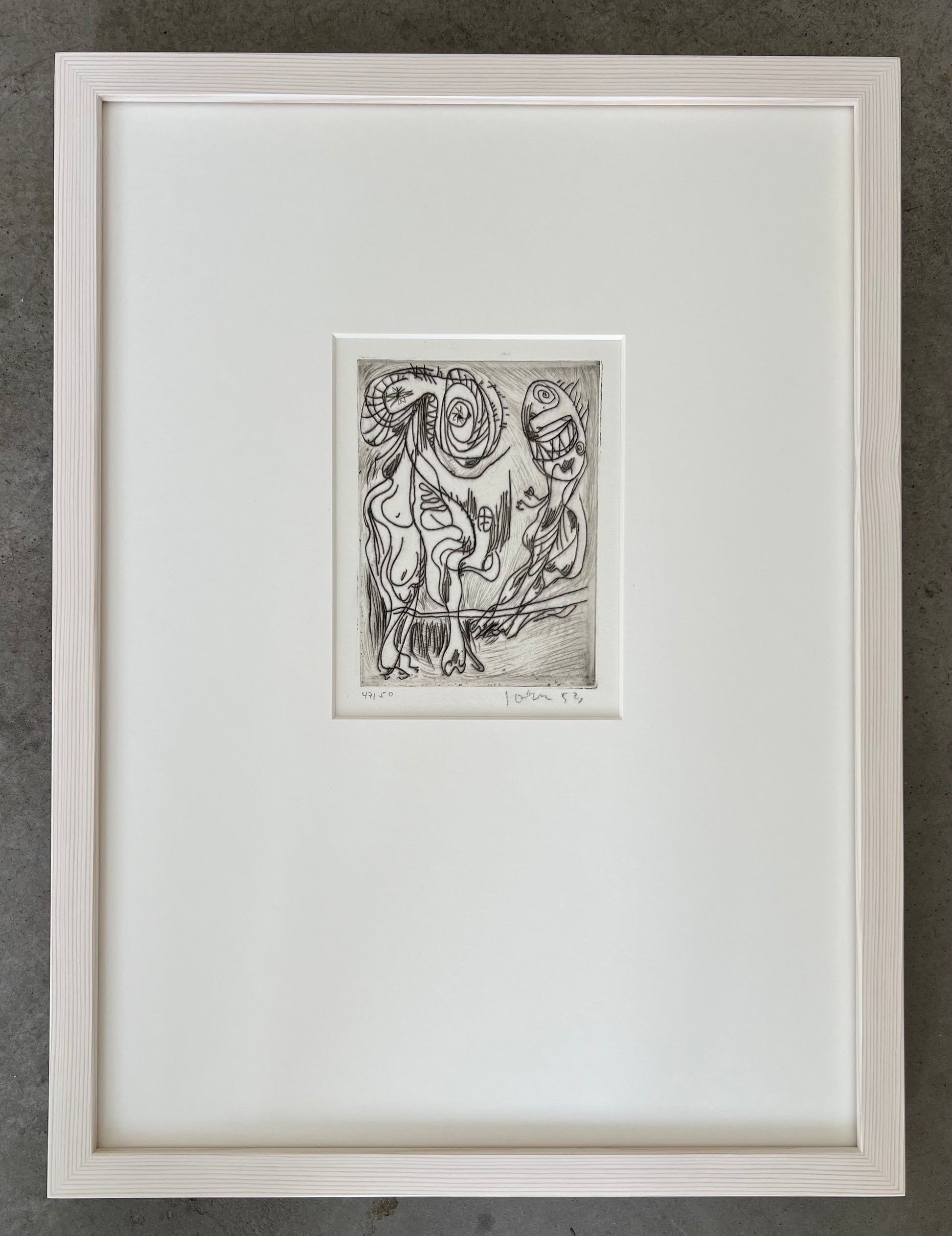 Asger Jorn (1914-1973). Composition, etching, 47/50, signed and dated Jorn 53. 11 x 17 (50 x 38) cm. New woodframe, museumglass.