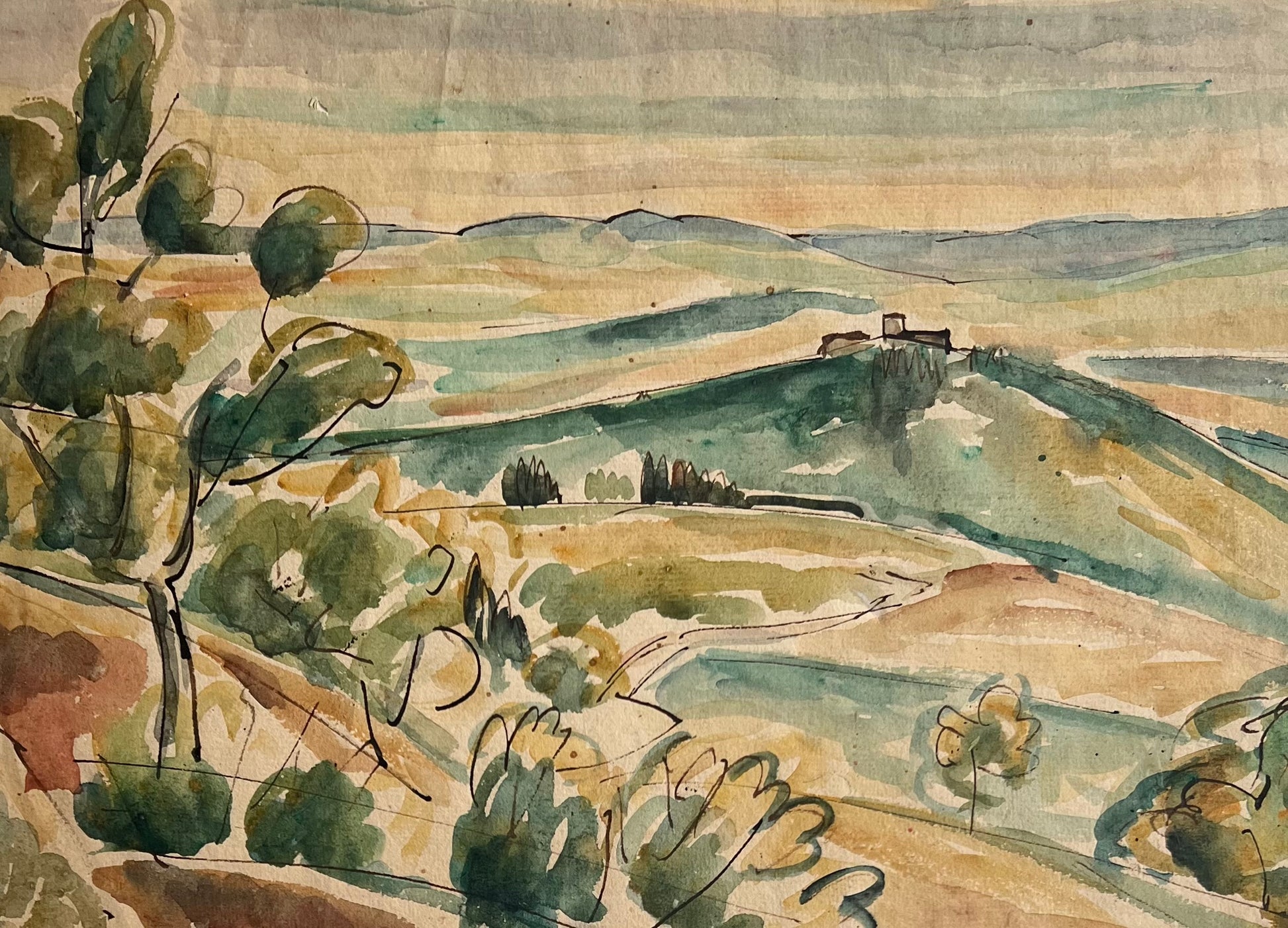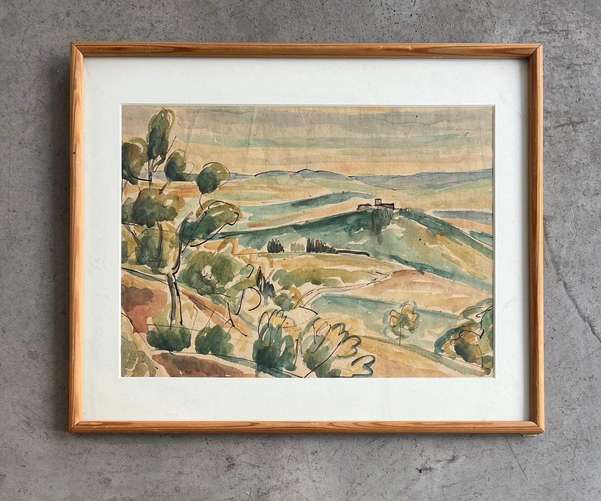 Astrid Holm (1876-1937). Italian landscape, watercolour and pen on paper, unsigned. 25 x 34 (35 x 43) cm.
