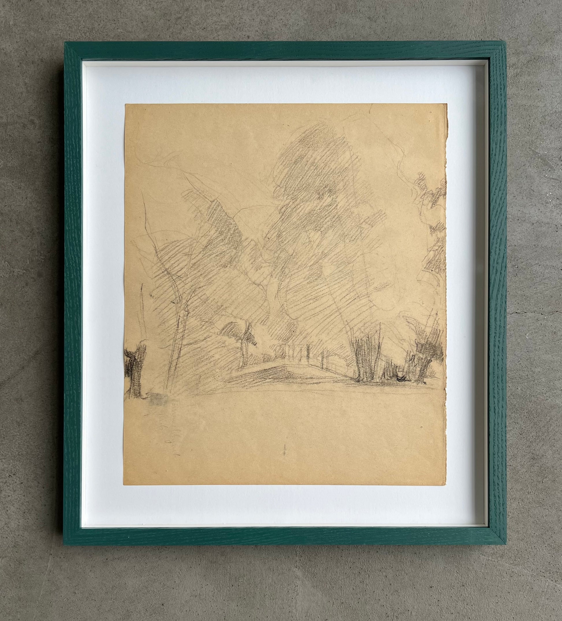 Bizzie Høyer (1888-1971). Sketch from Frederiksberg Have, unsigned, with inscription see photo. 31 x 27 each (42 x 37) cm. New handpainted wood frame, museum glass.