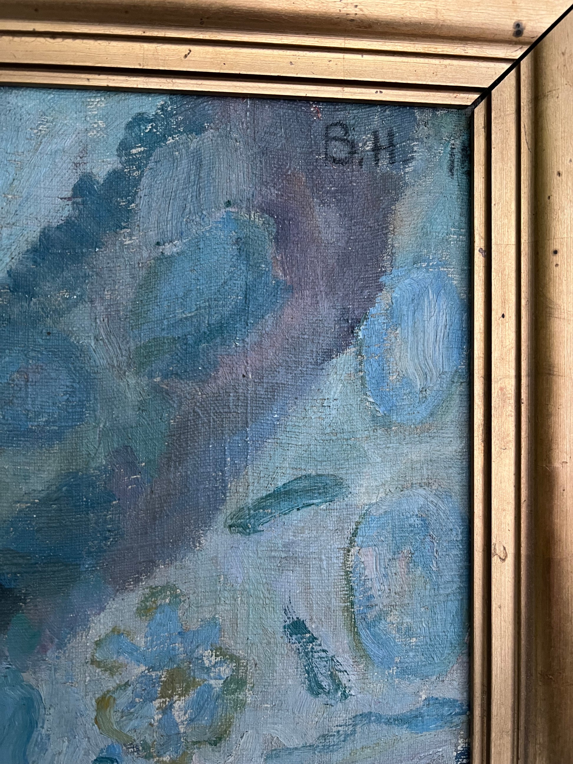 Bizzie Høyer (1888-1971). Nature morte with flowers and apples, oil on canvas, signed and dated 15. 61 x 73 (81 x 70) cm.