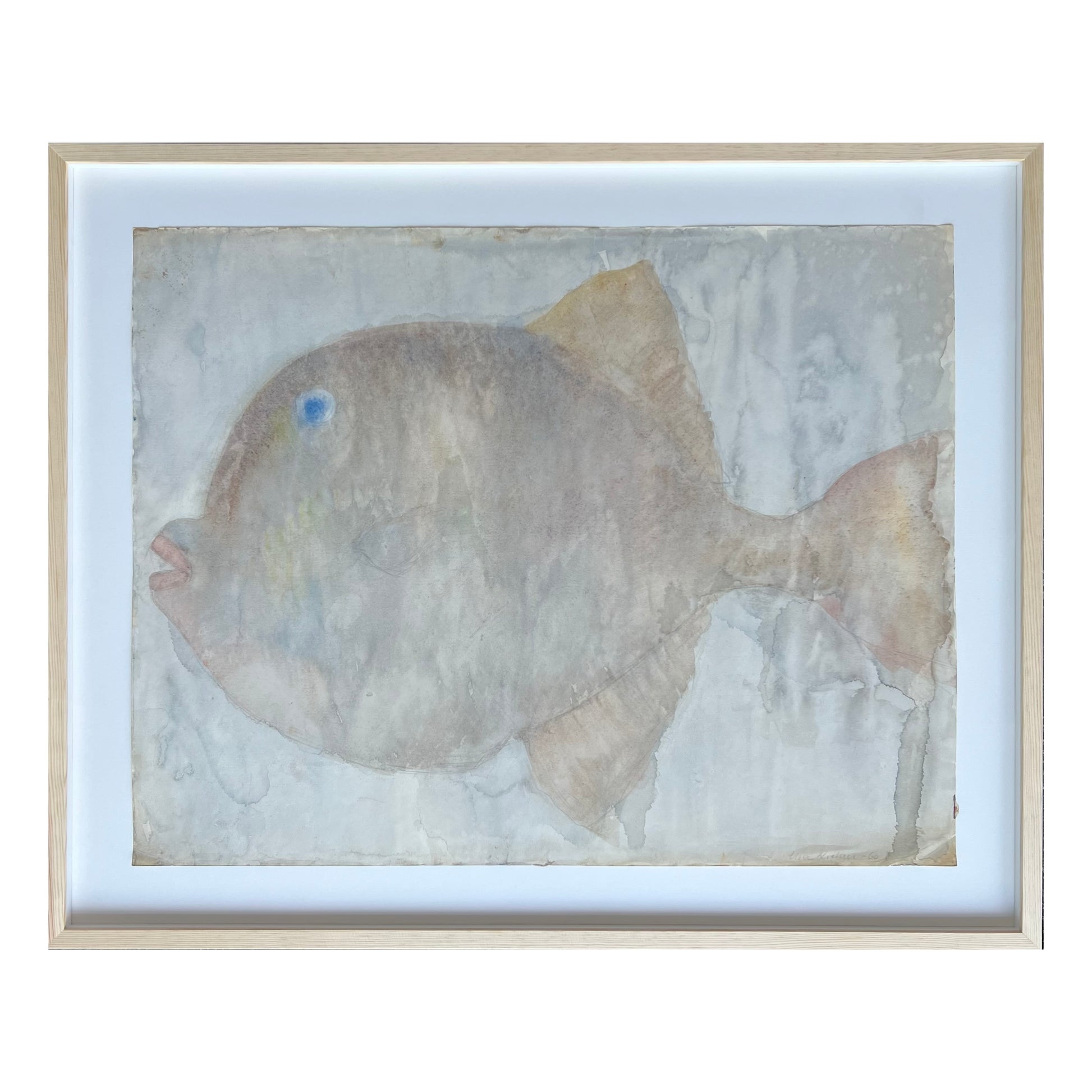 Elsa Nielsen (1923-2011). Study of a fish, watercolour on paper, signed and dated. 50 x 64 (63 x 76) cm. New pine frame, museumglass.