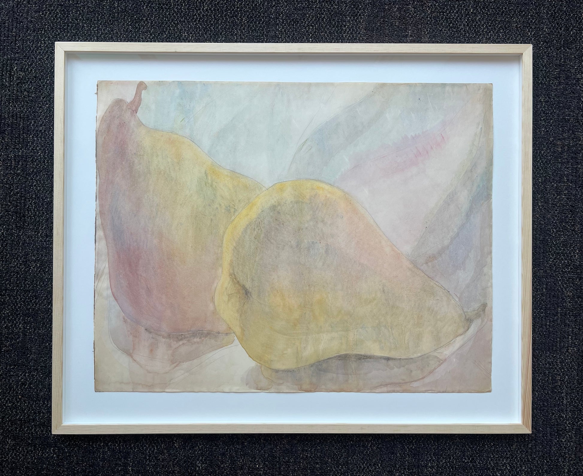 Elsa Nielsen (1923-2011). Two pears, watercolour on paper, unsigned. 51 x 63 (53 x 76) cm. New pine frame, museumglass.