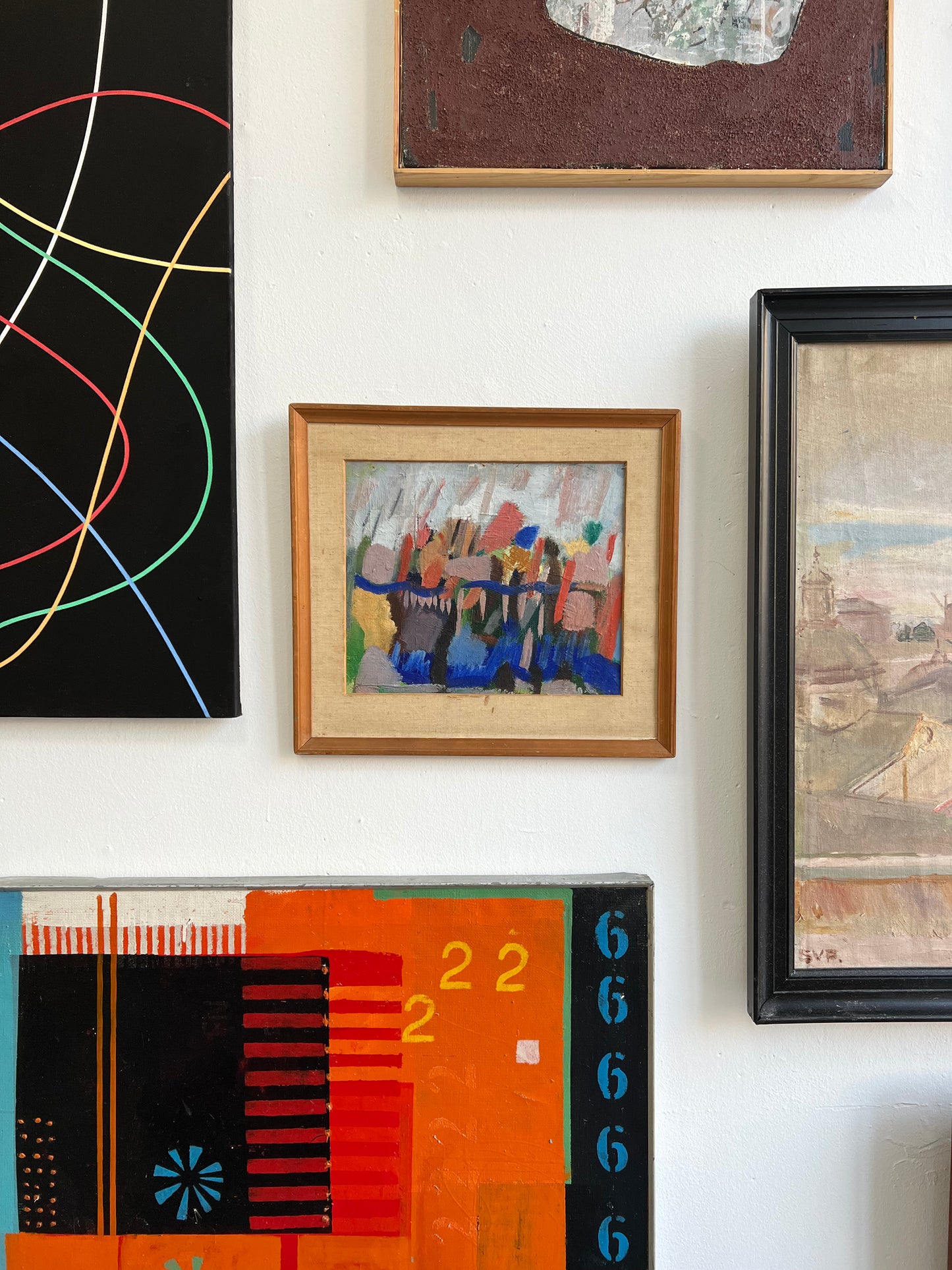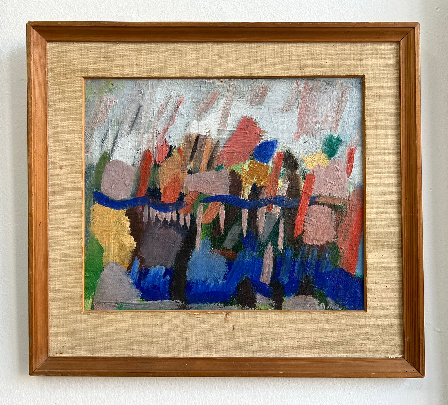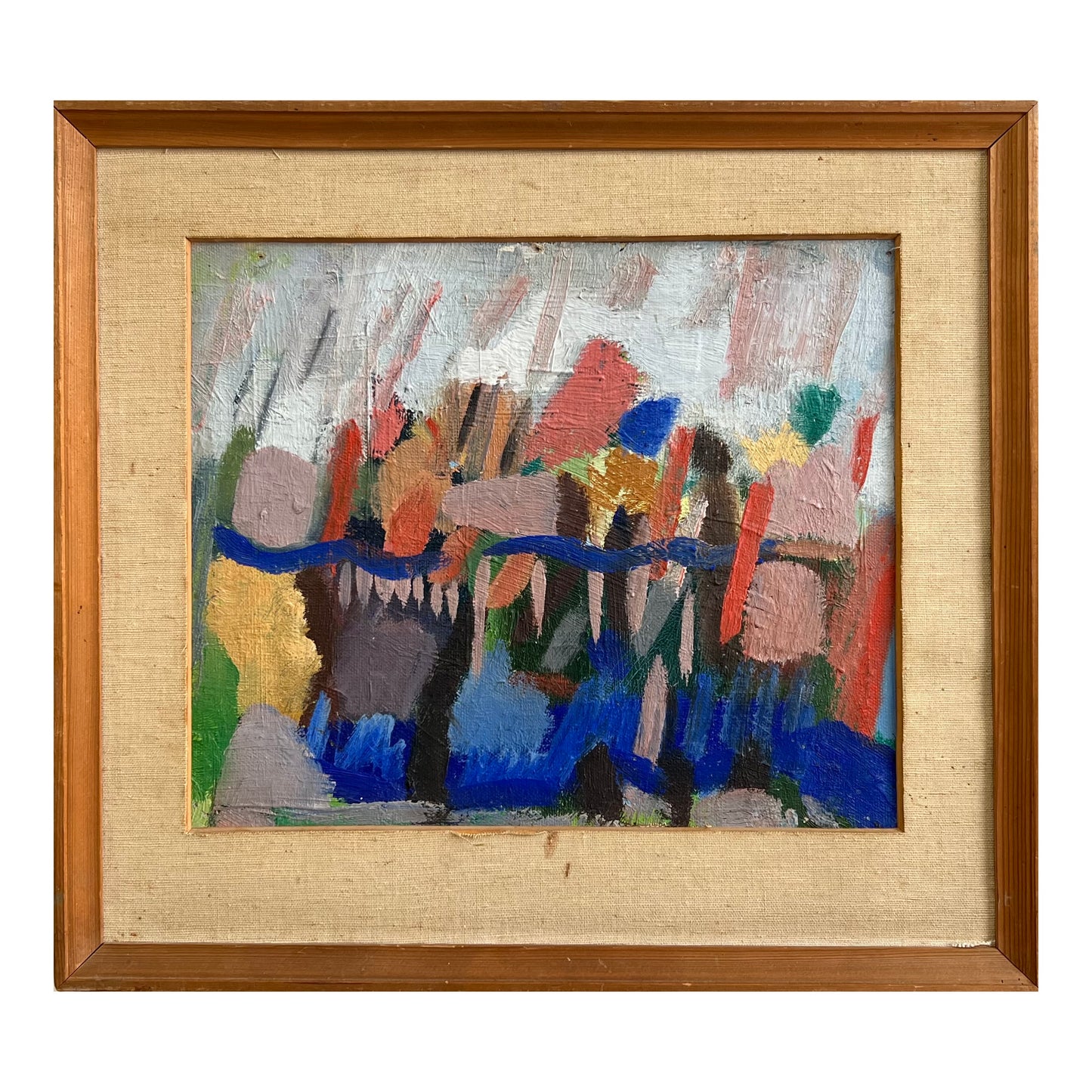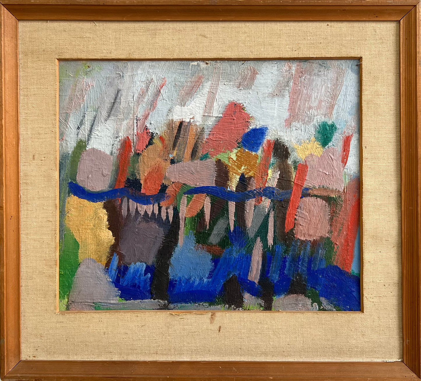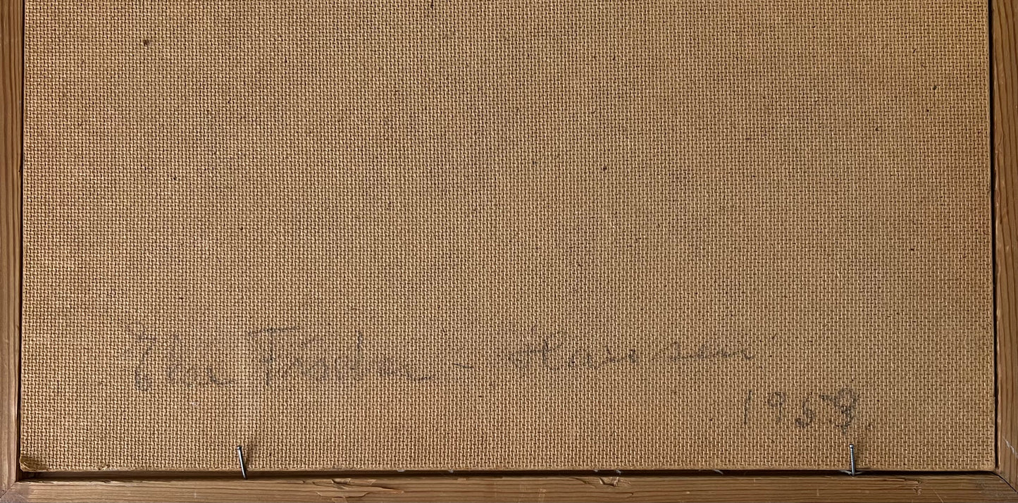 Else Fischer-Hansen (1905-1996). Composition, Oil on canvas mounted on board, signed verso and dated 1953. 25 x 30 (37 x 40) cm. Small peelings of paint and pinholes in corners.