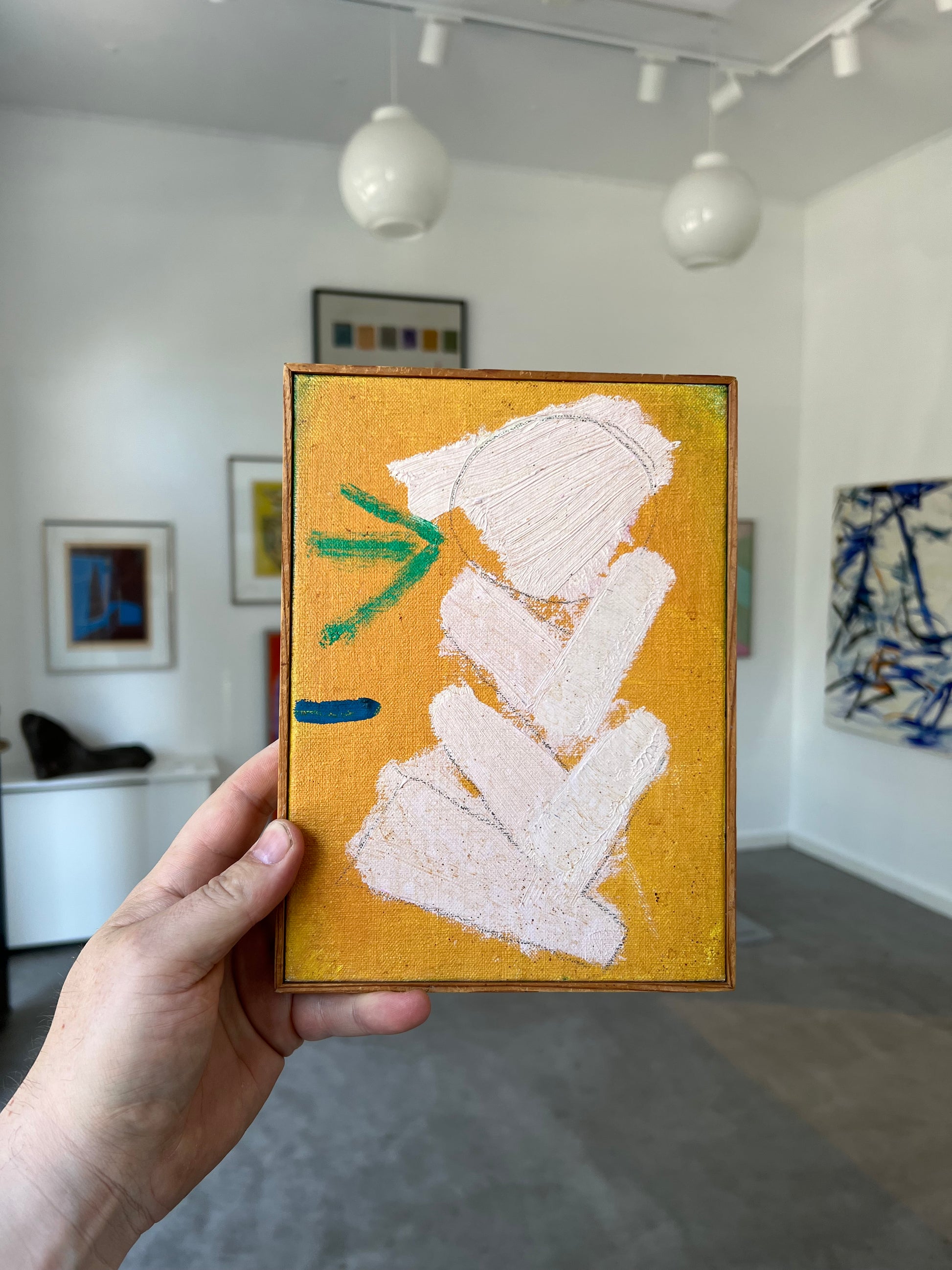Else Fischer-Hansen (1905-1996). Composition, oil on canvas mounted on board, signed and dated 1972. 22 x 16 cm. Pine frame.