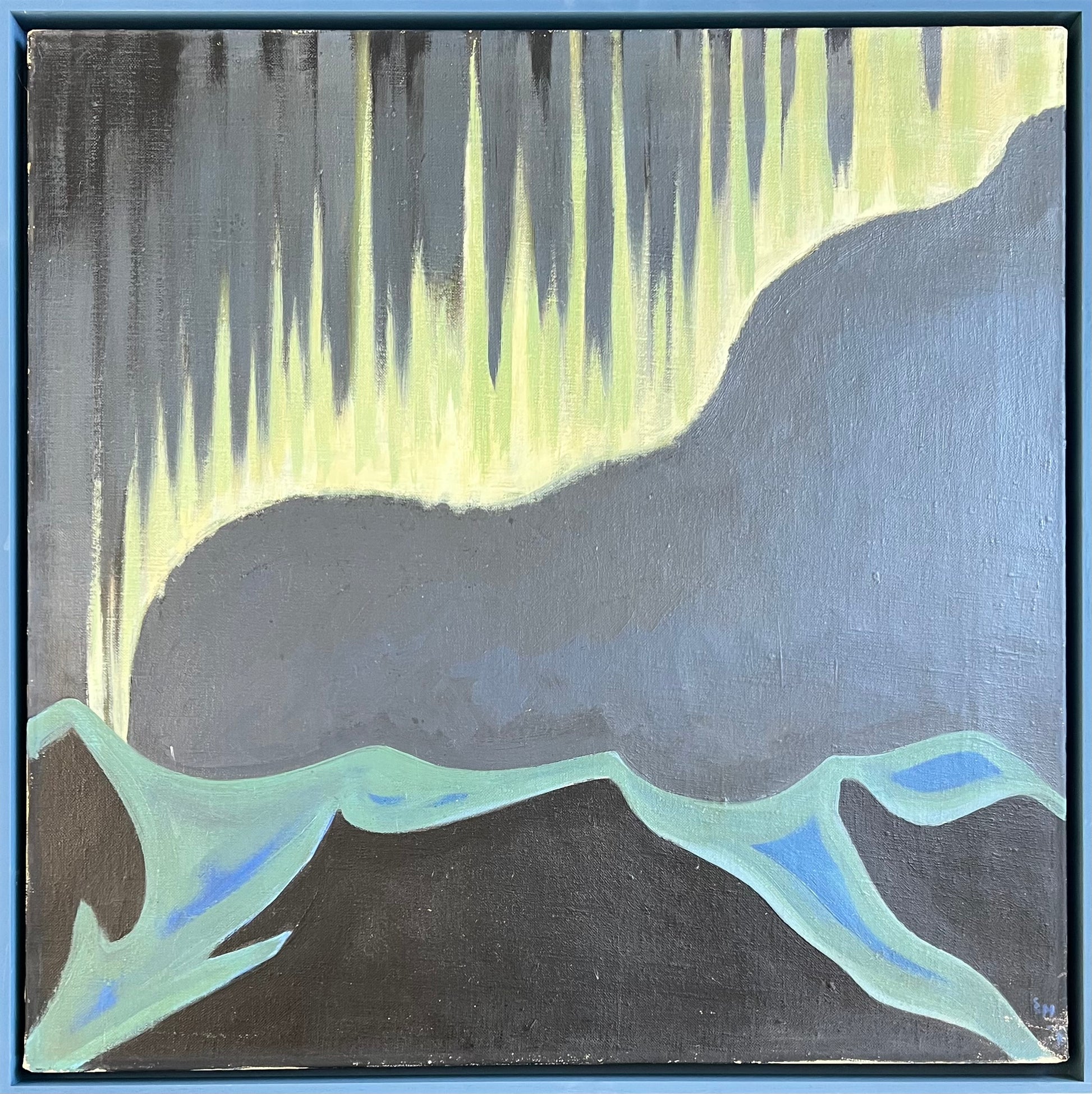 Ernst Hansen (1892-1968). Northern lights over Greenland, oil on canvas, signed and dated 1935. 63 x 63 (68 x 68) cm. New handpainted frame.