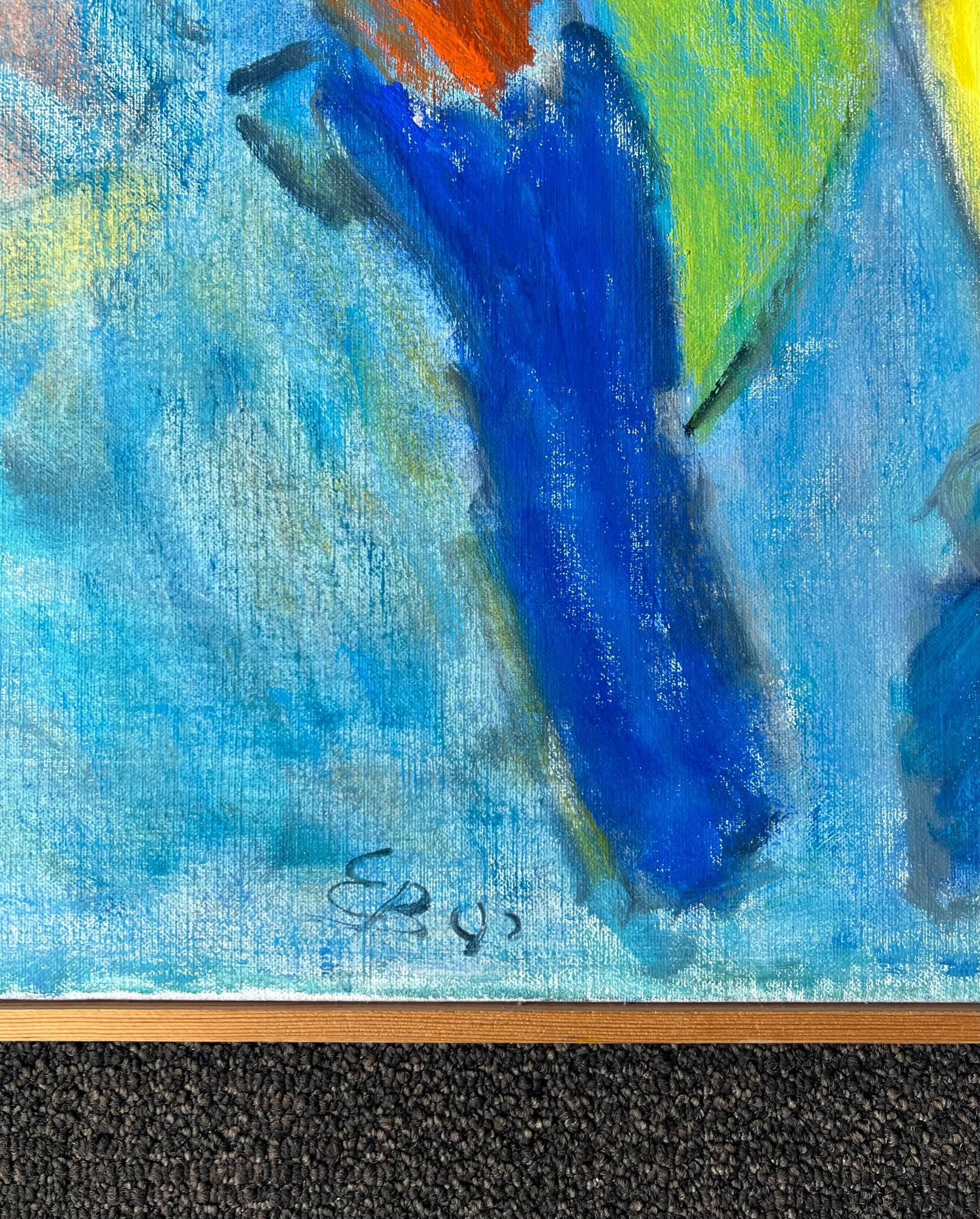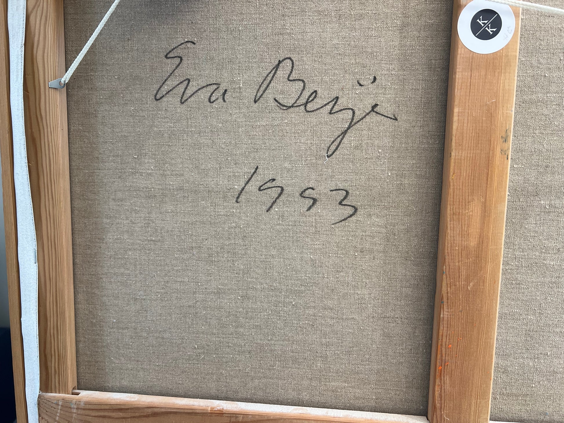 Eva Beyer (1921-2004). Composition, oil on canvas, signed and dated 1993. 92 x 73 (93 x 74) cm. Pineframe.