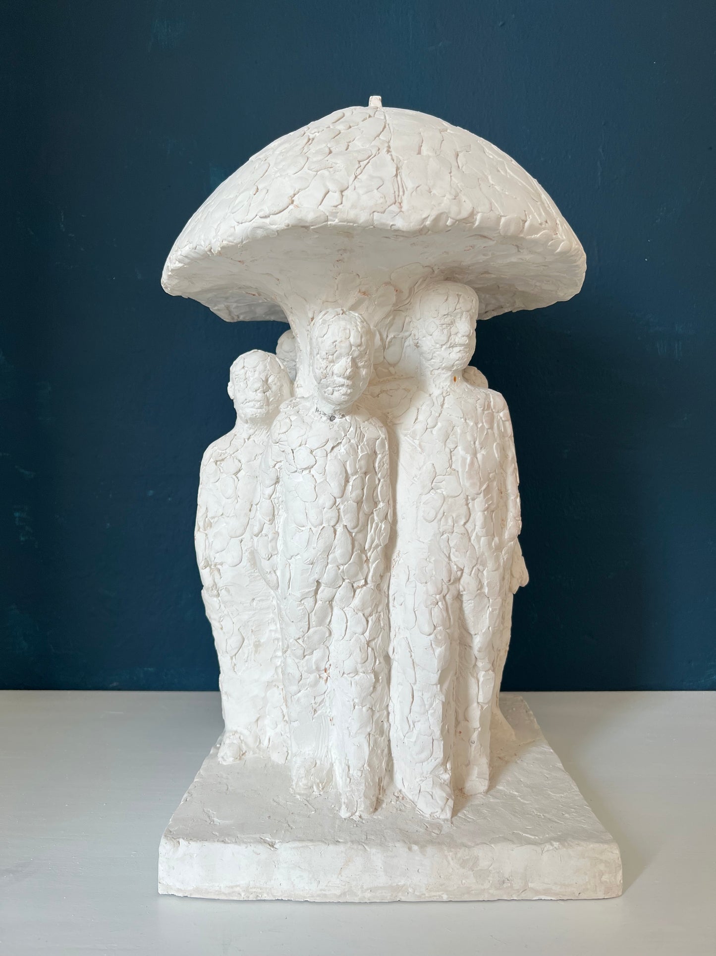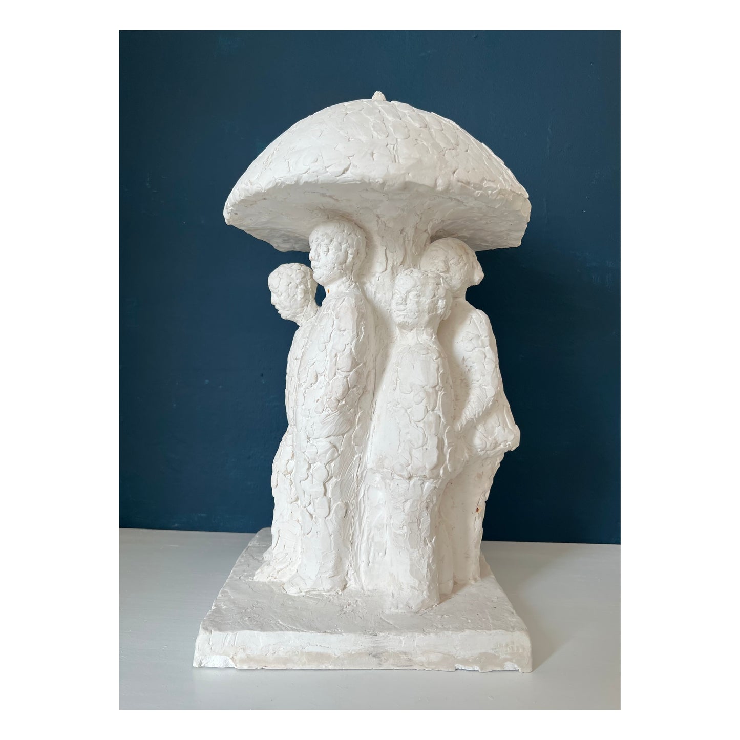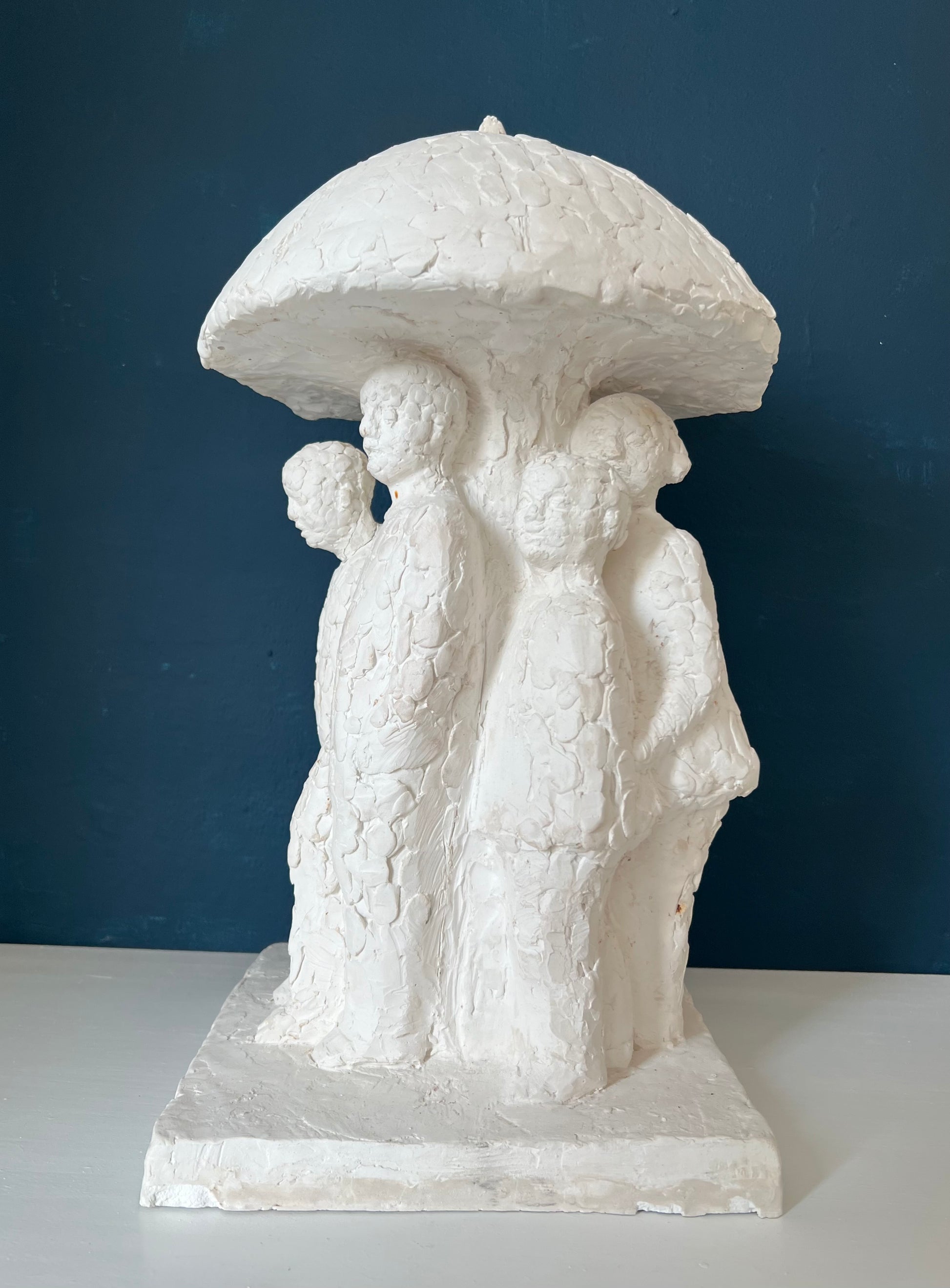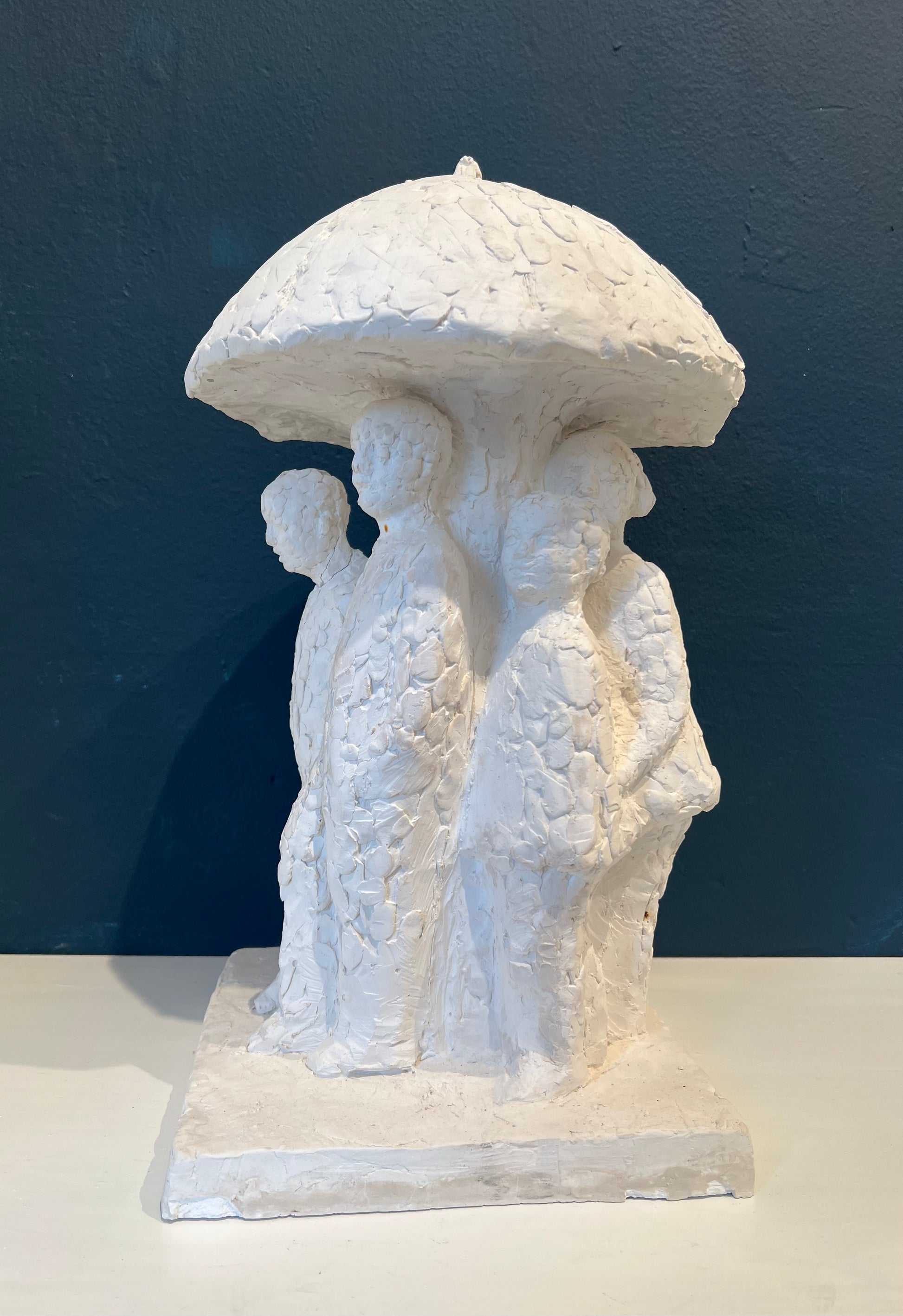 Hanne Varming (1939-2022). Under the umbrella, sculpture of plaster. Unsigned. H. 46 cm.