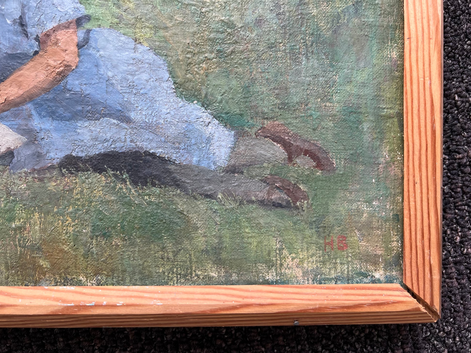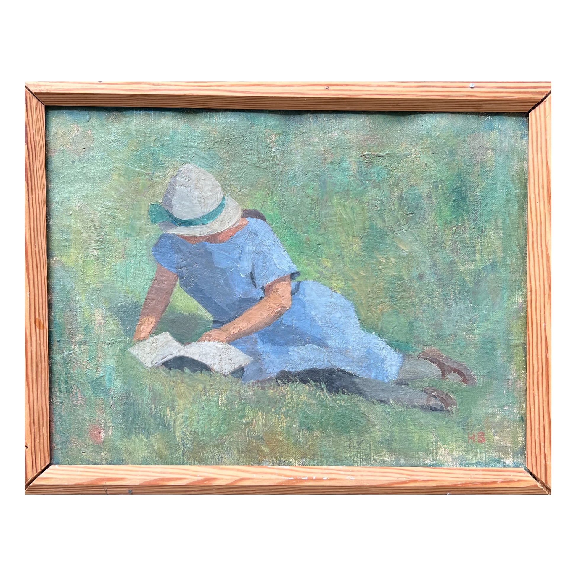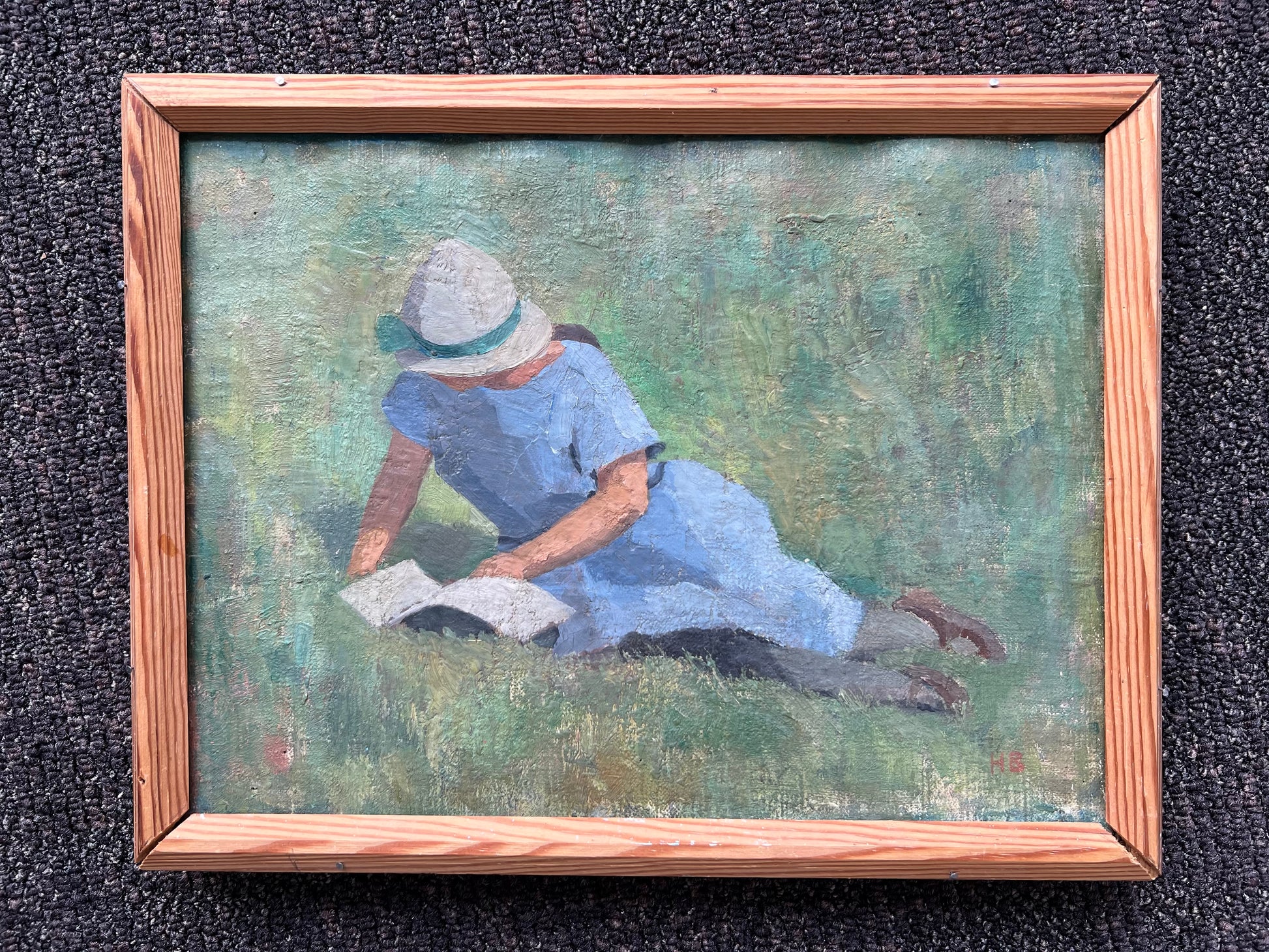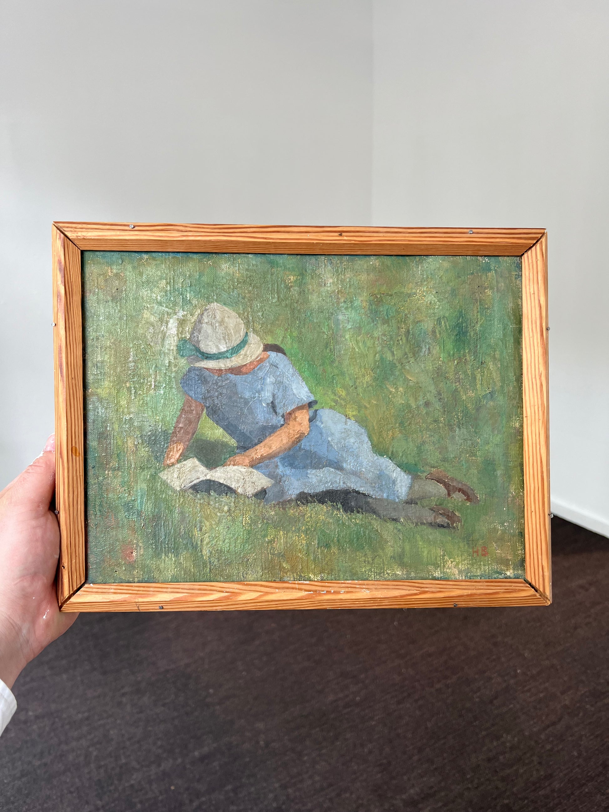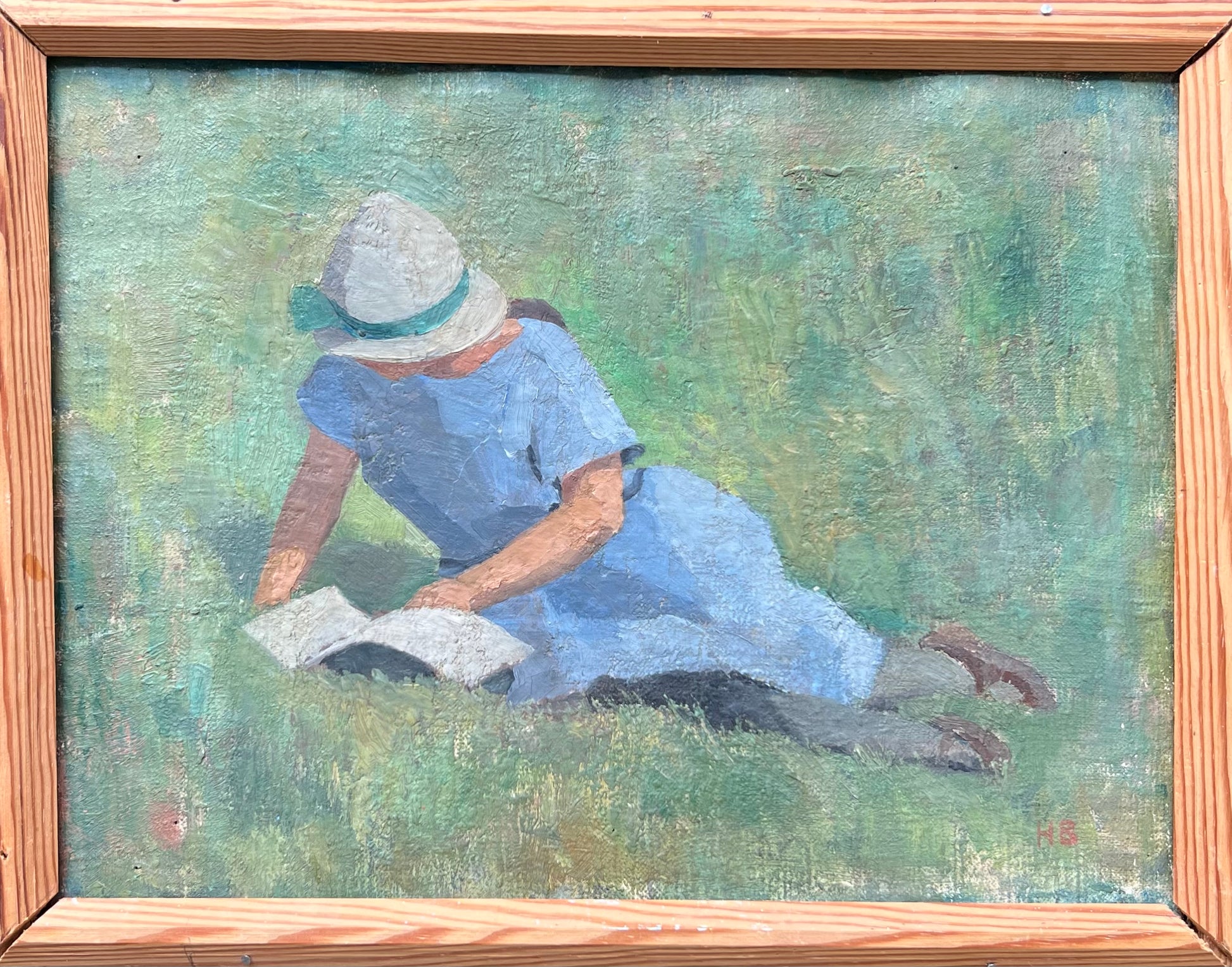 Hedvig Brandt (1881-1946). “Lille pige på plænen”, Oil on canvas, signed HB. 24,5 x 31,5 (26 x 33) cm.