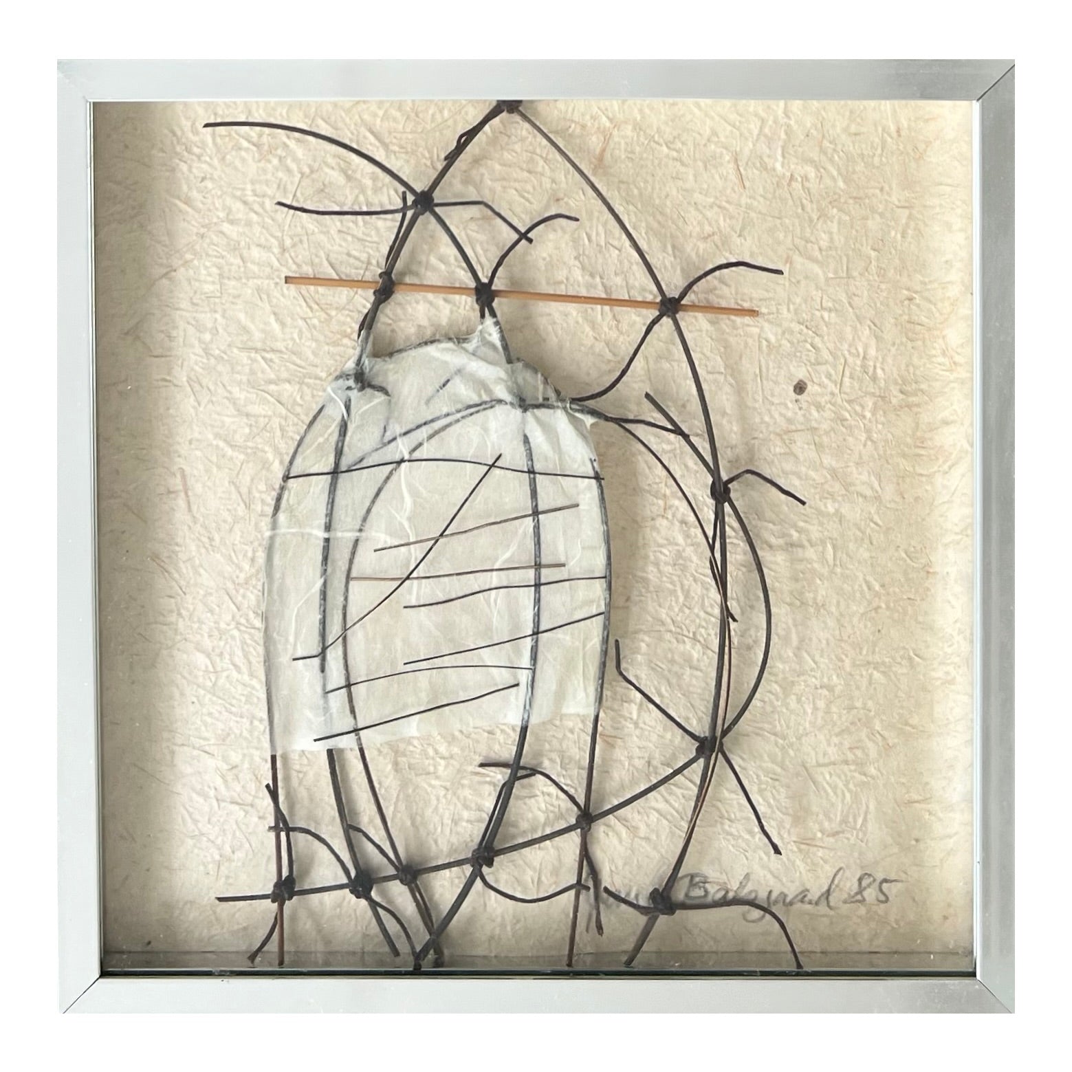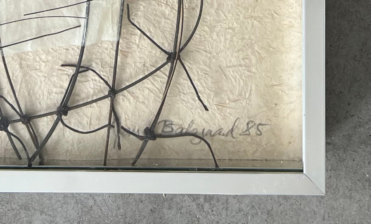 Jane Balsgaard (b. 1939). Composition, mixed media, signed and dated 85. 20 x 20 x 3,5 cm. Aluminium frame.