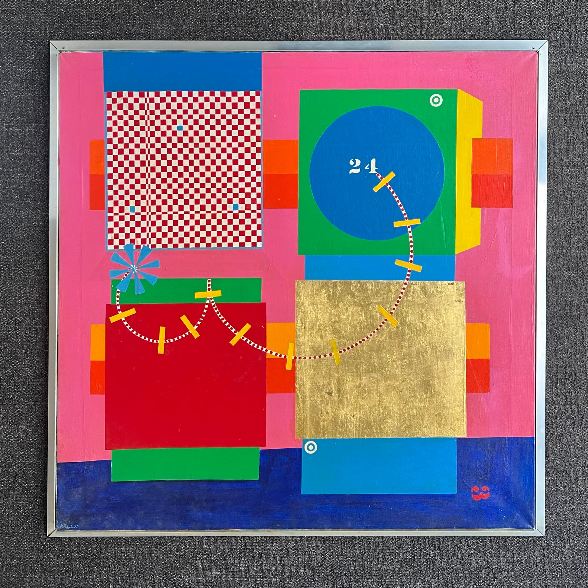 Karl Åge Riget (1933-2001). Composition, oil on canvas, signed and dated. 100 x 100 (106 x 106) cm. Aluminium frame. Wear, craquelures and peelings.