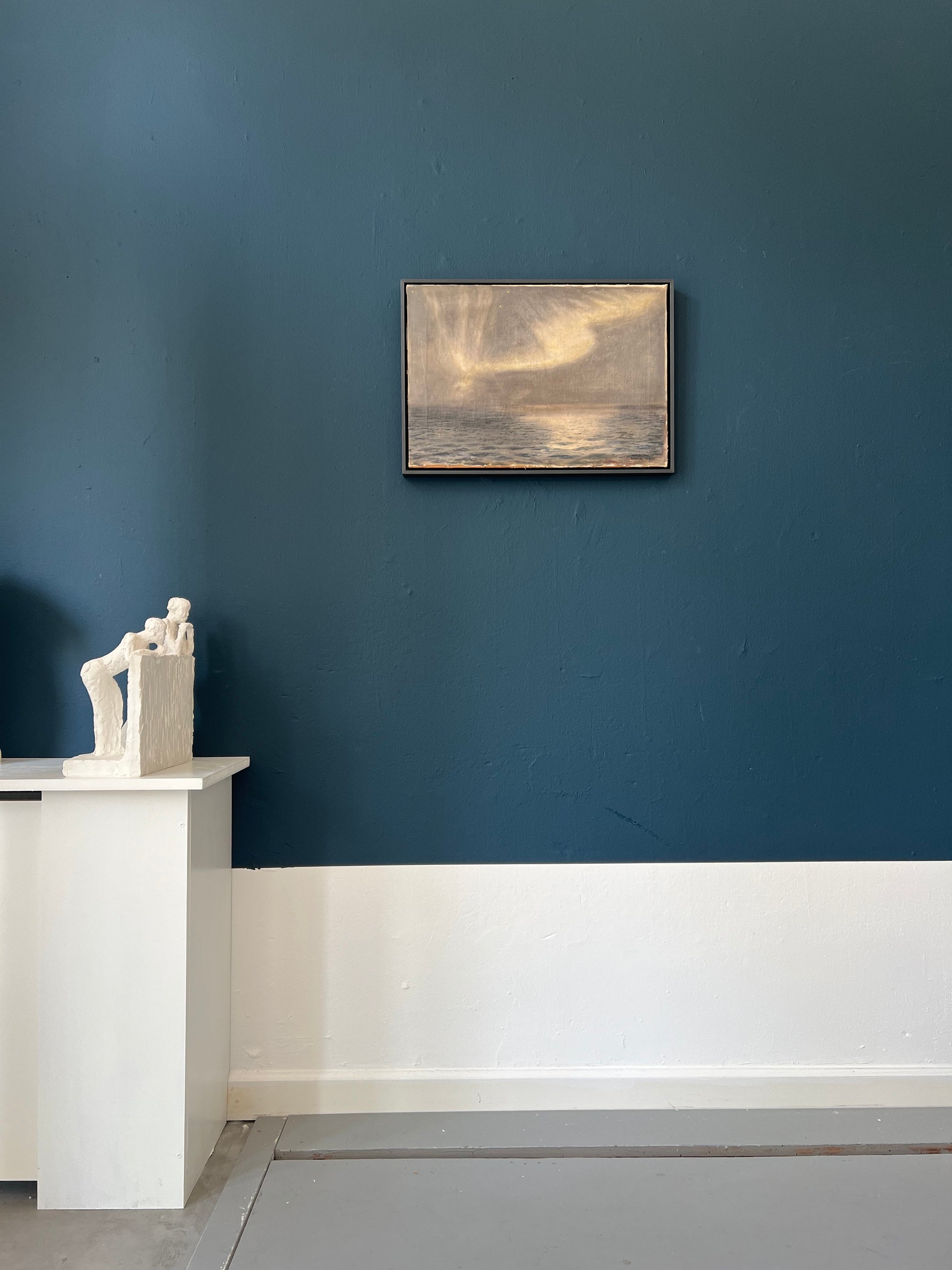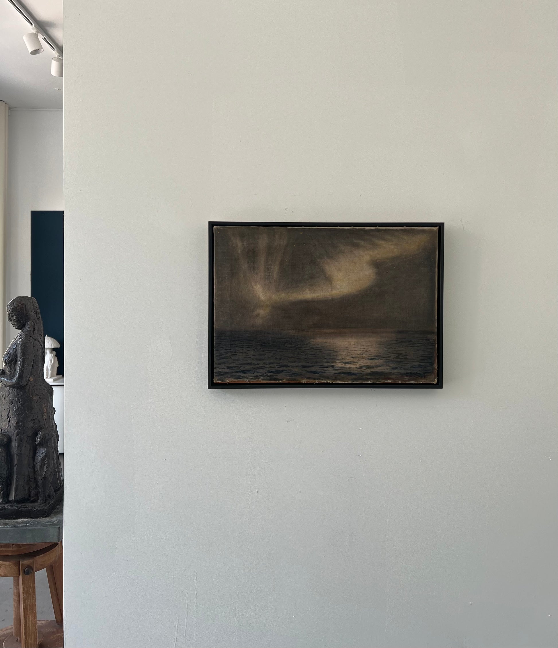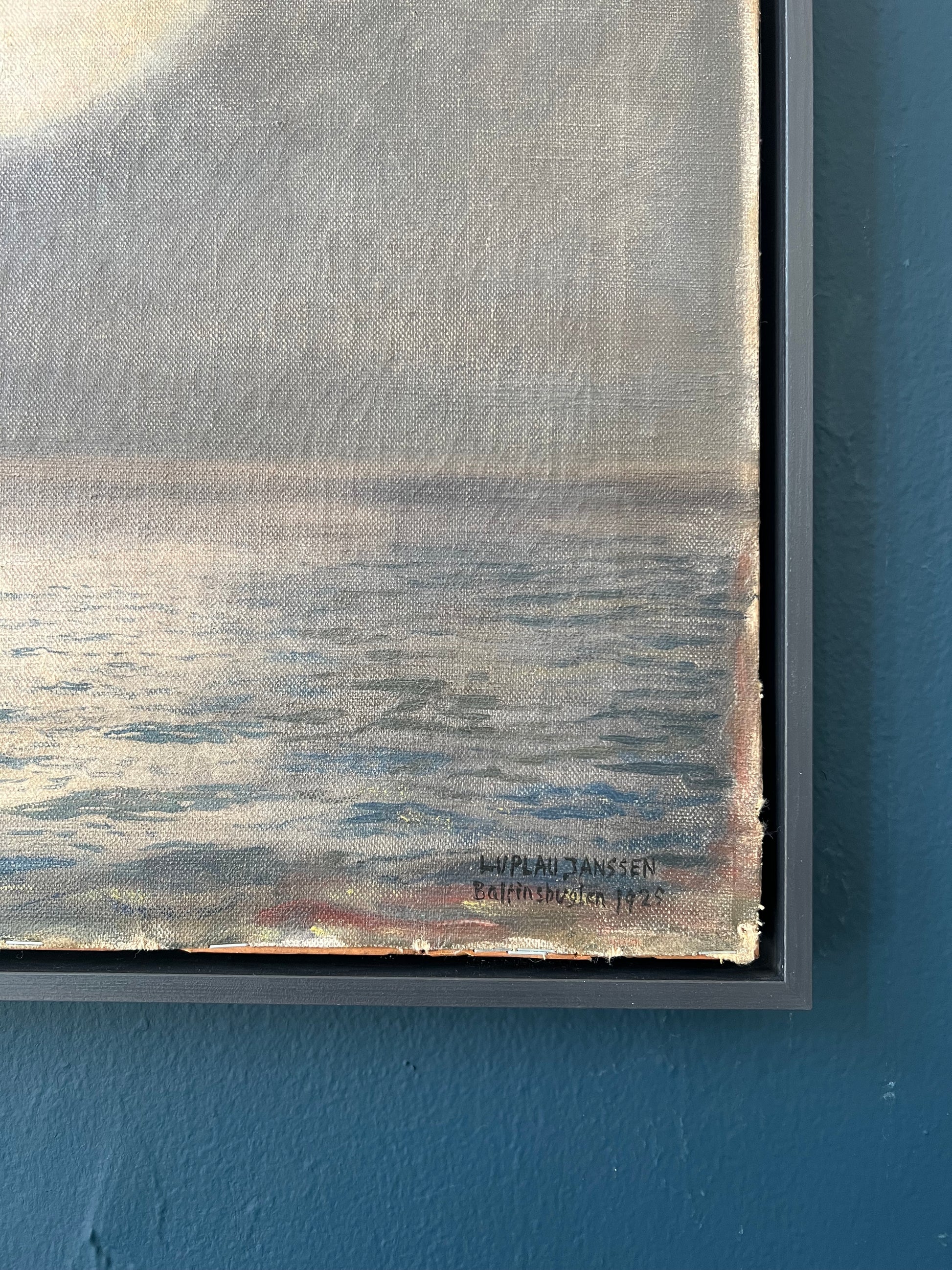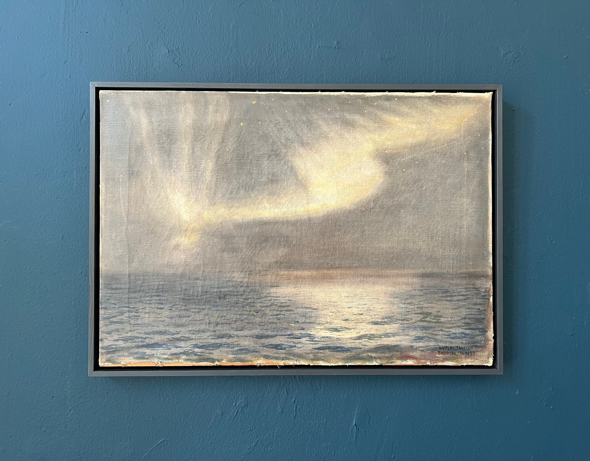 Luplau Janssen (1869-1927). Northern lights over Baffin Bay, oil on canvas, signed and dated Luplau Janssen, Baffinsbugten 1925. 37 x 53,5 (40 x 57) cm. Some wear. New handpainted wood frame.