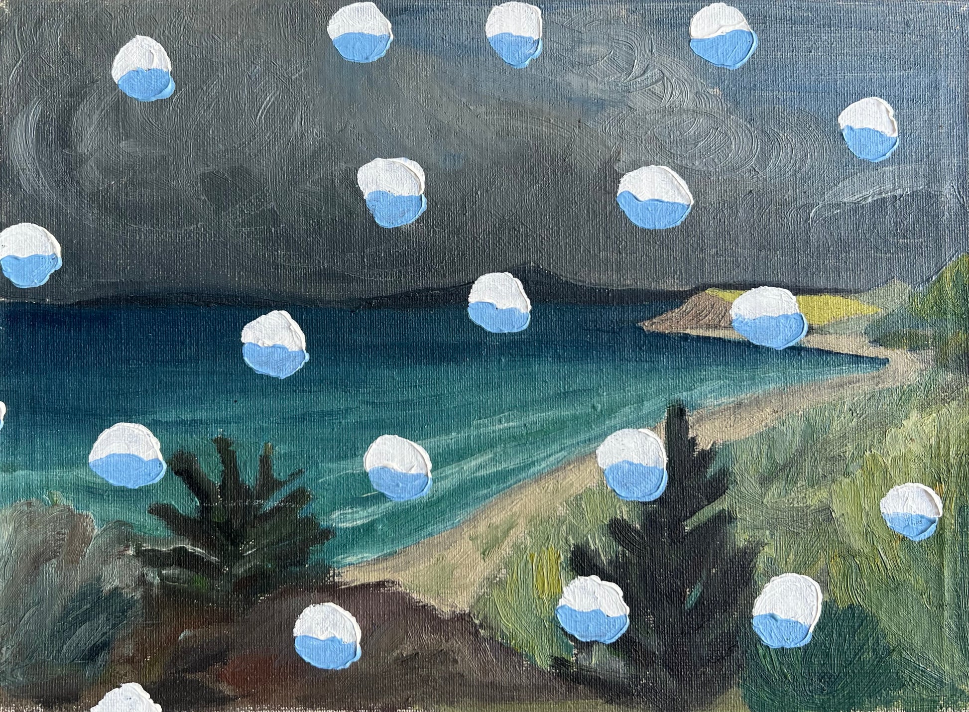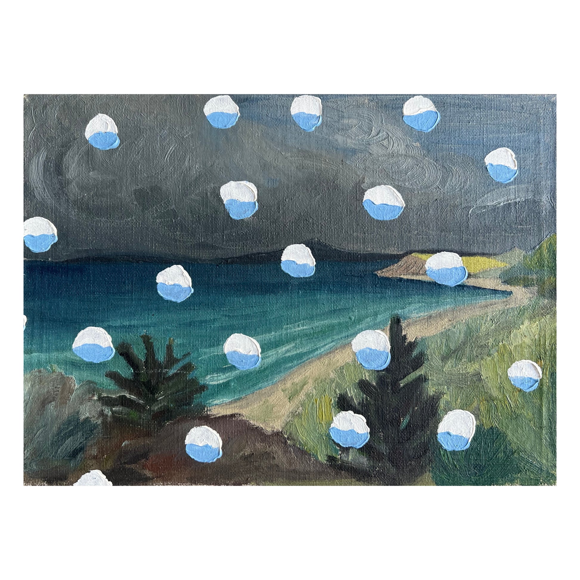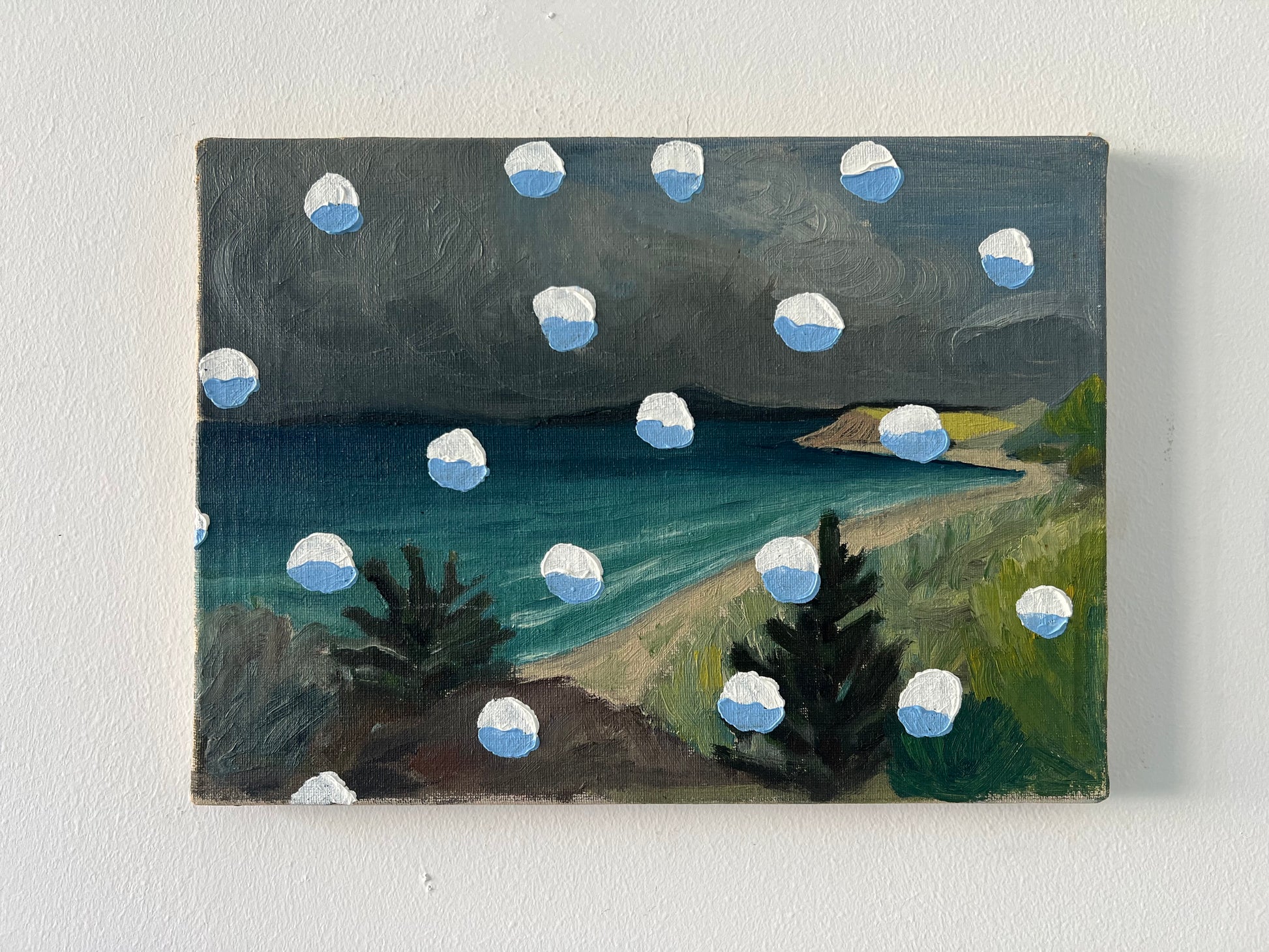 Mads Lindberg (b. 1984). Untitled, (Snowpainting), oil on found painting, signed on the back. 22,5 x 30,5 cm.