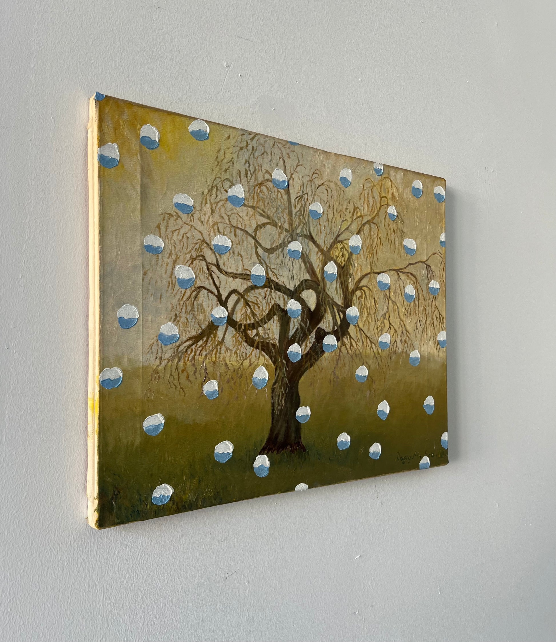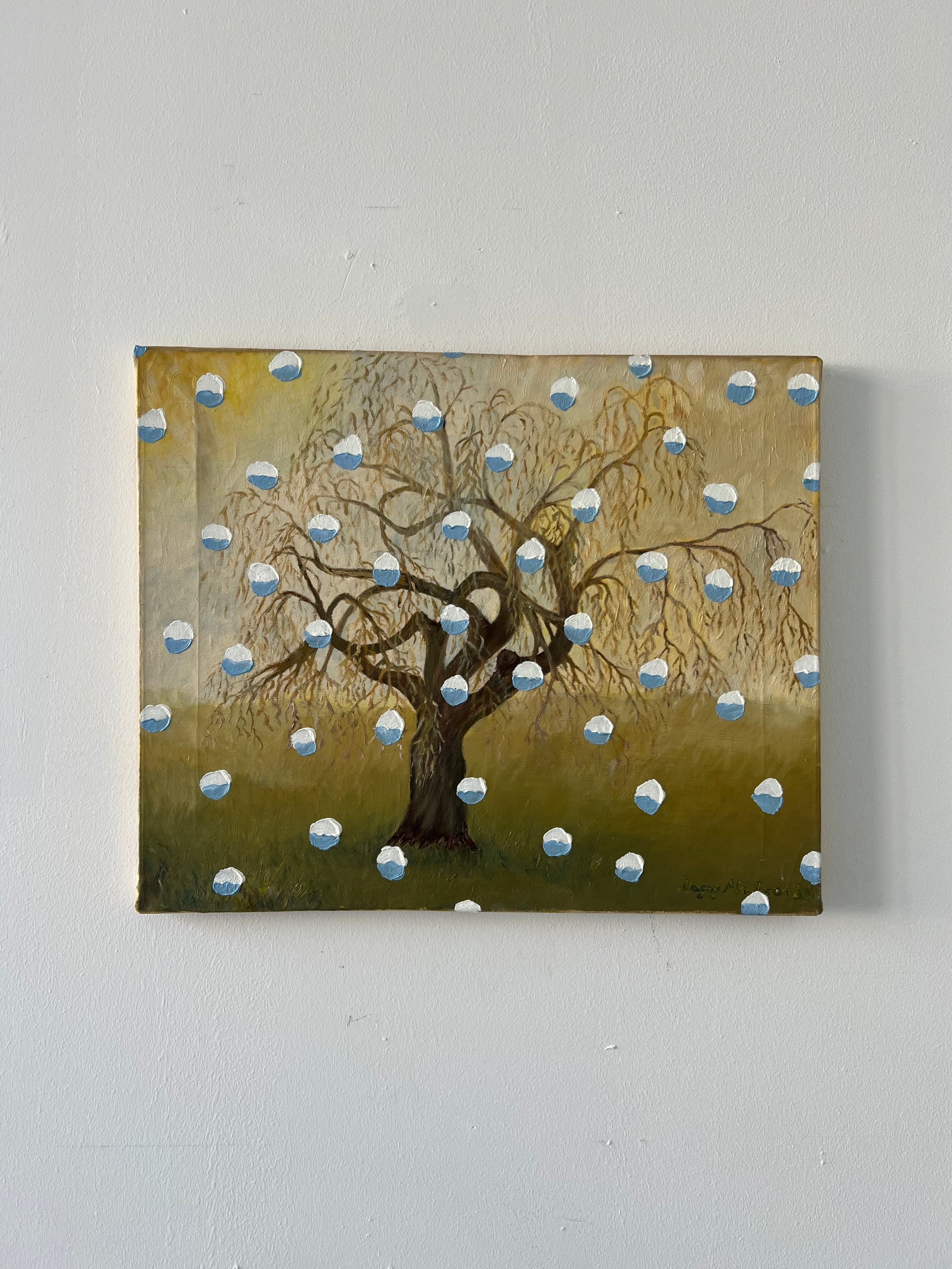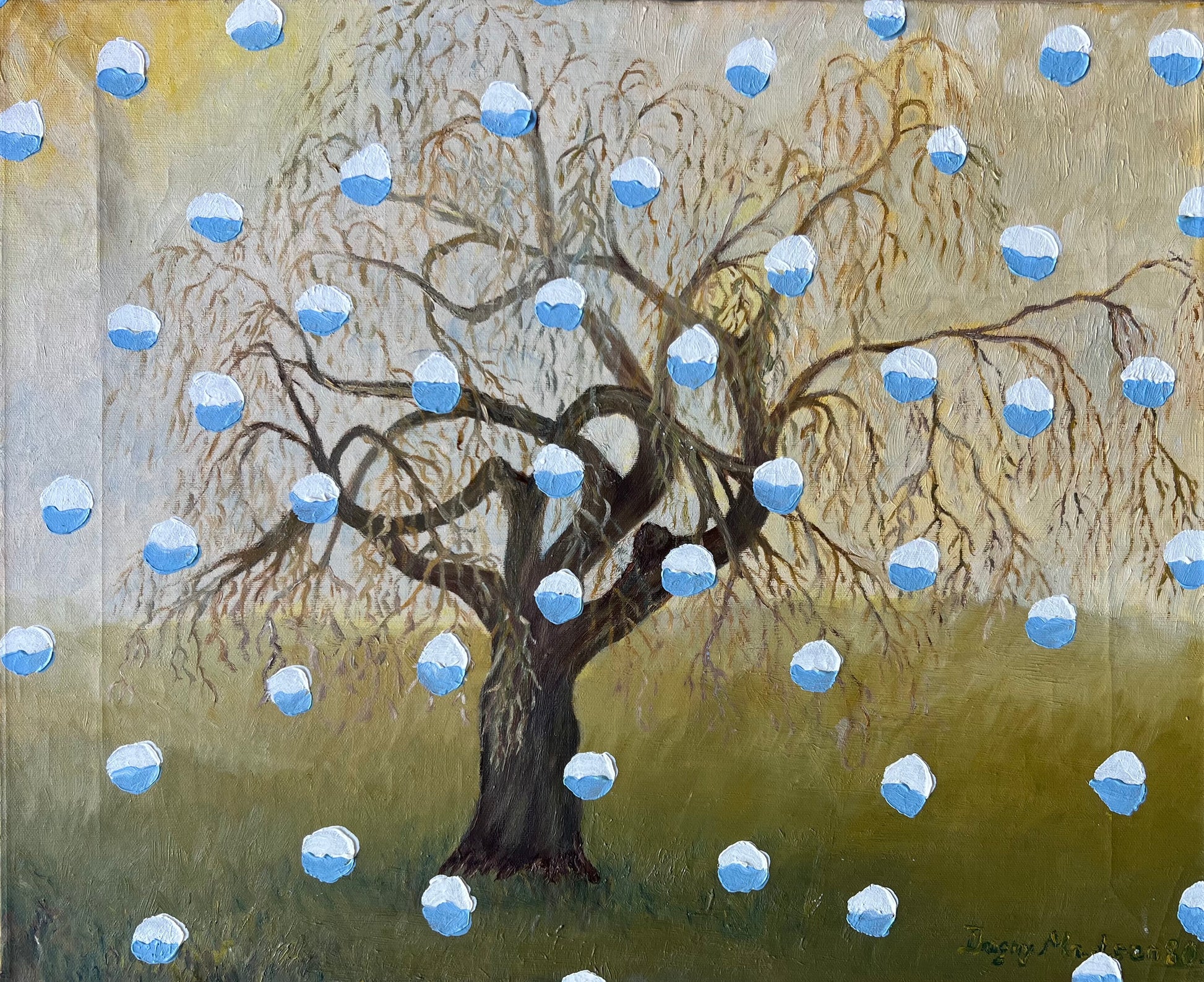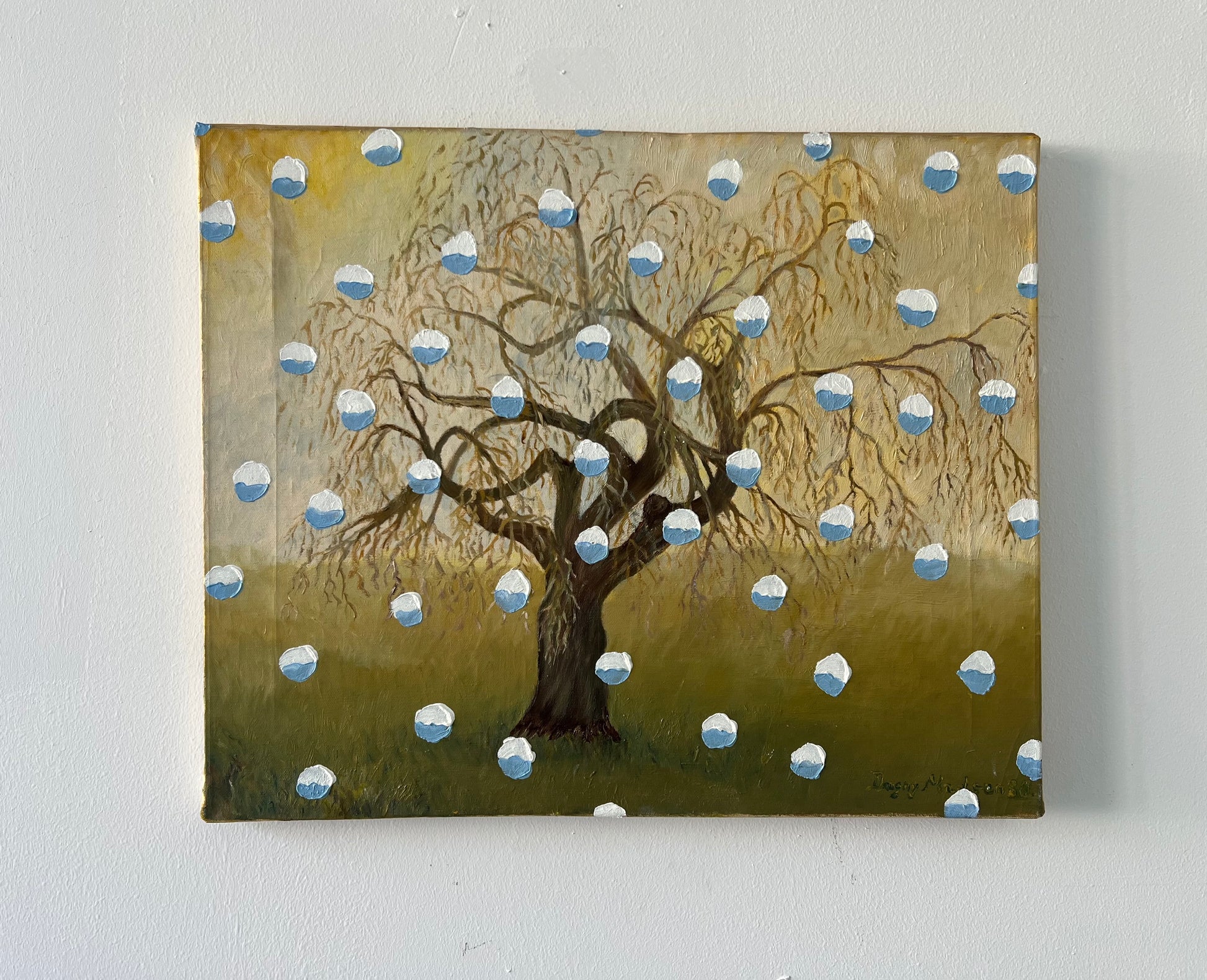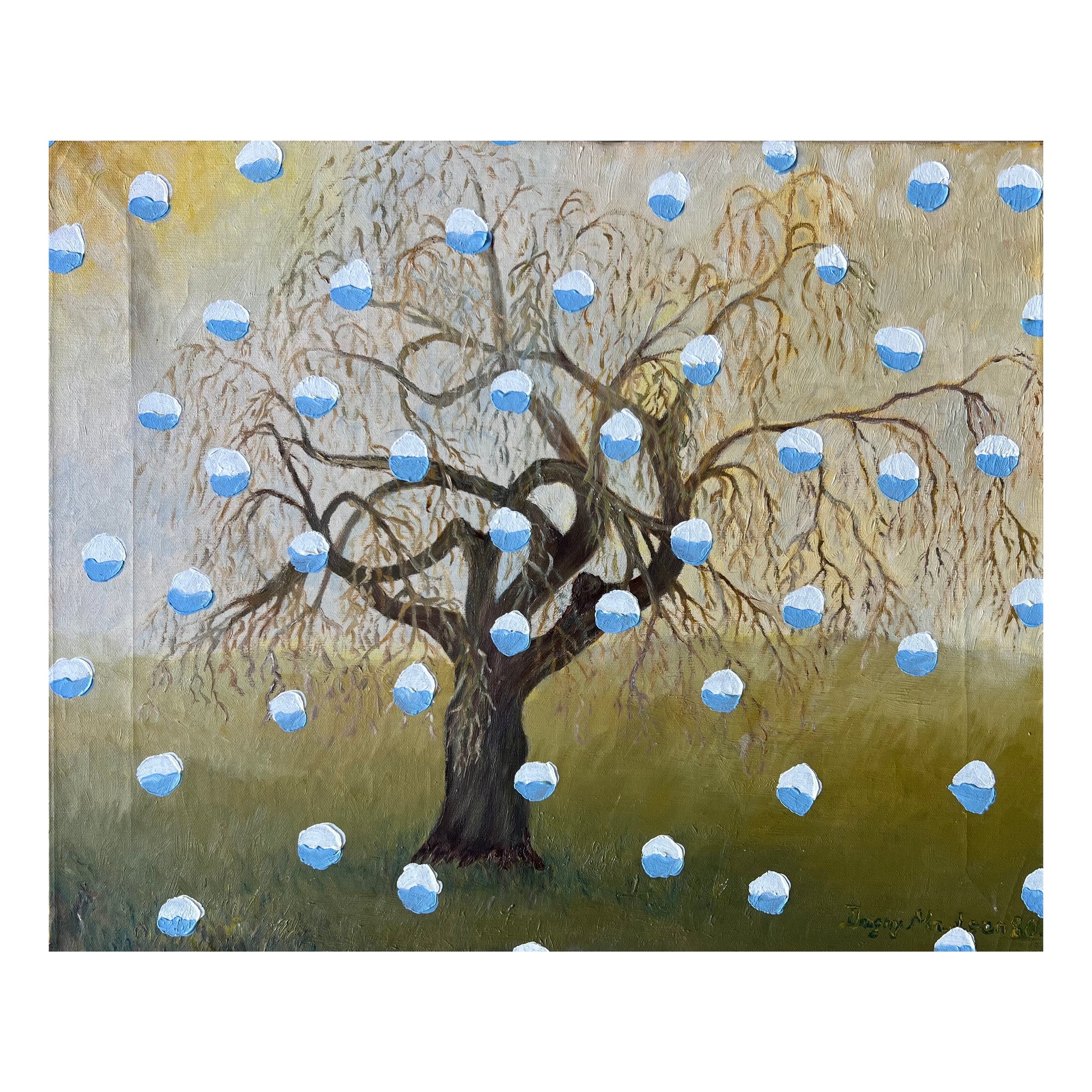 Mads Lindberg (b. 1984). Untitled, (Snowpainting), oil on found painting, signed on the back. 46 x 38 cm.
