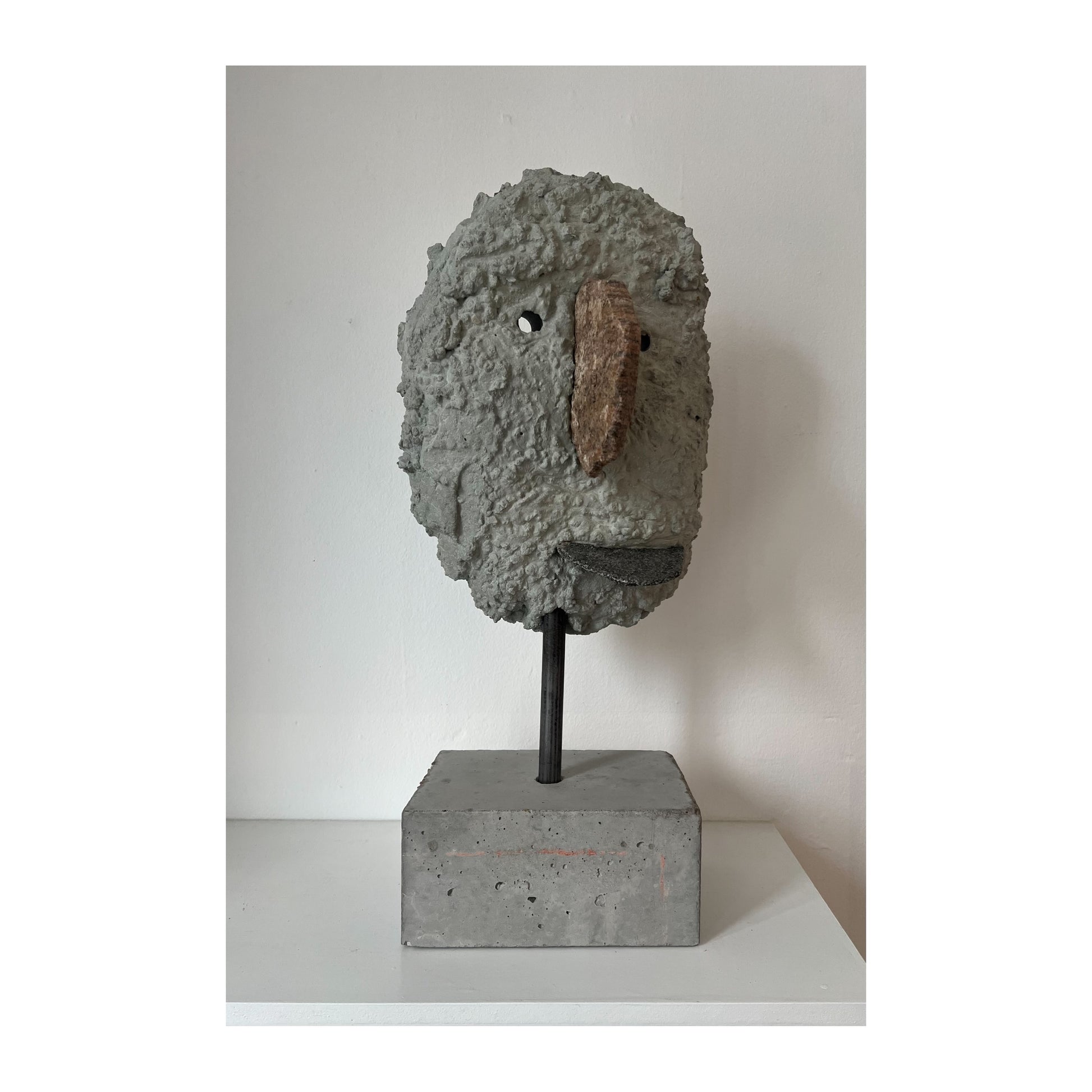 Magnus Pettersen (b. 1983). Sculpture of concrete and stone mounted on steel and concrete base, signed and dated. H. 40/68 cm.