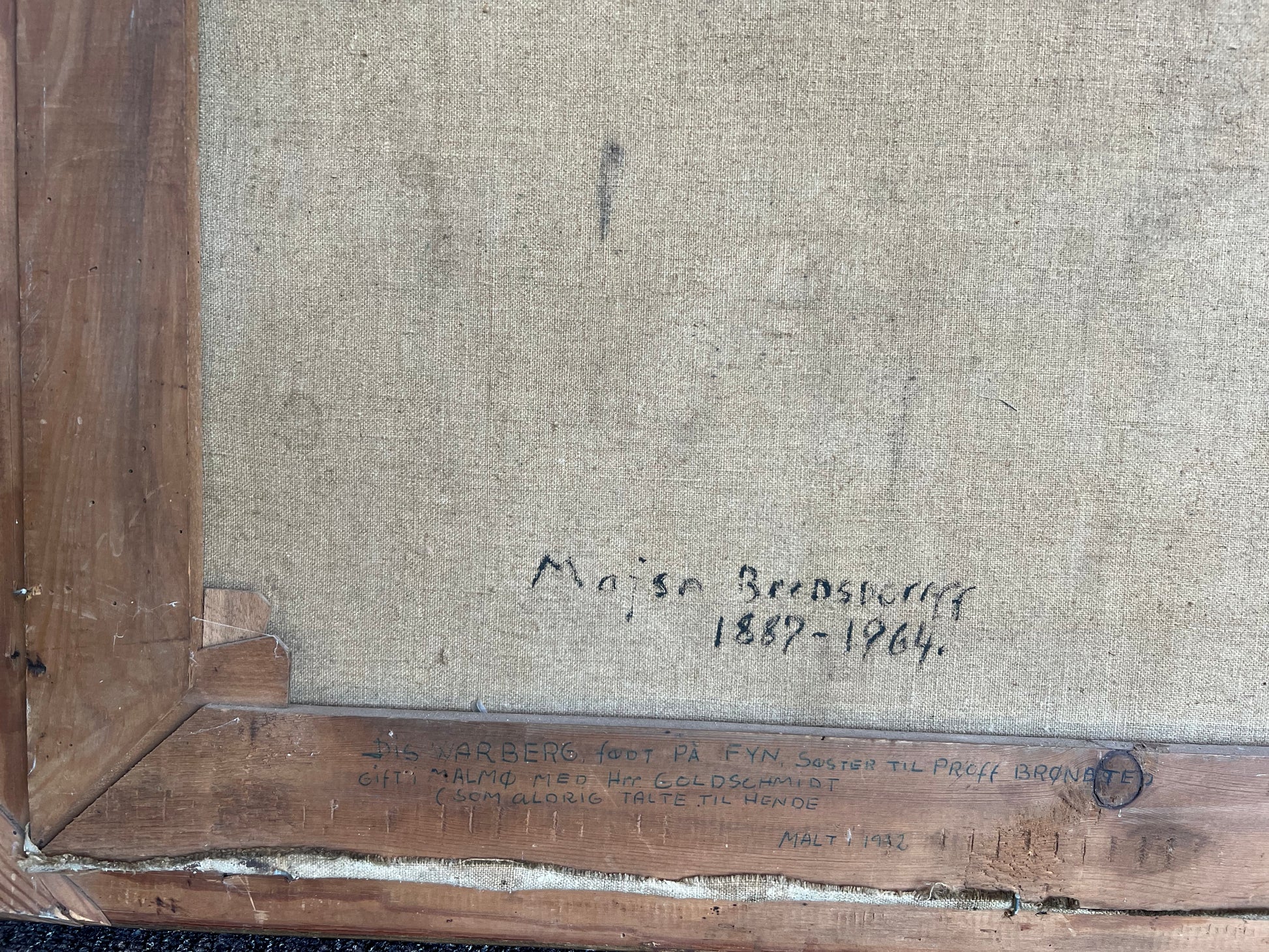 Majsa Bredsdorff (1887-1964). Portrait of Astrid Warberg Goldschmidt, oil on canvas, signed and dated. 64 x 69 (70 x 75) cm. Framed.