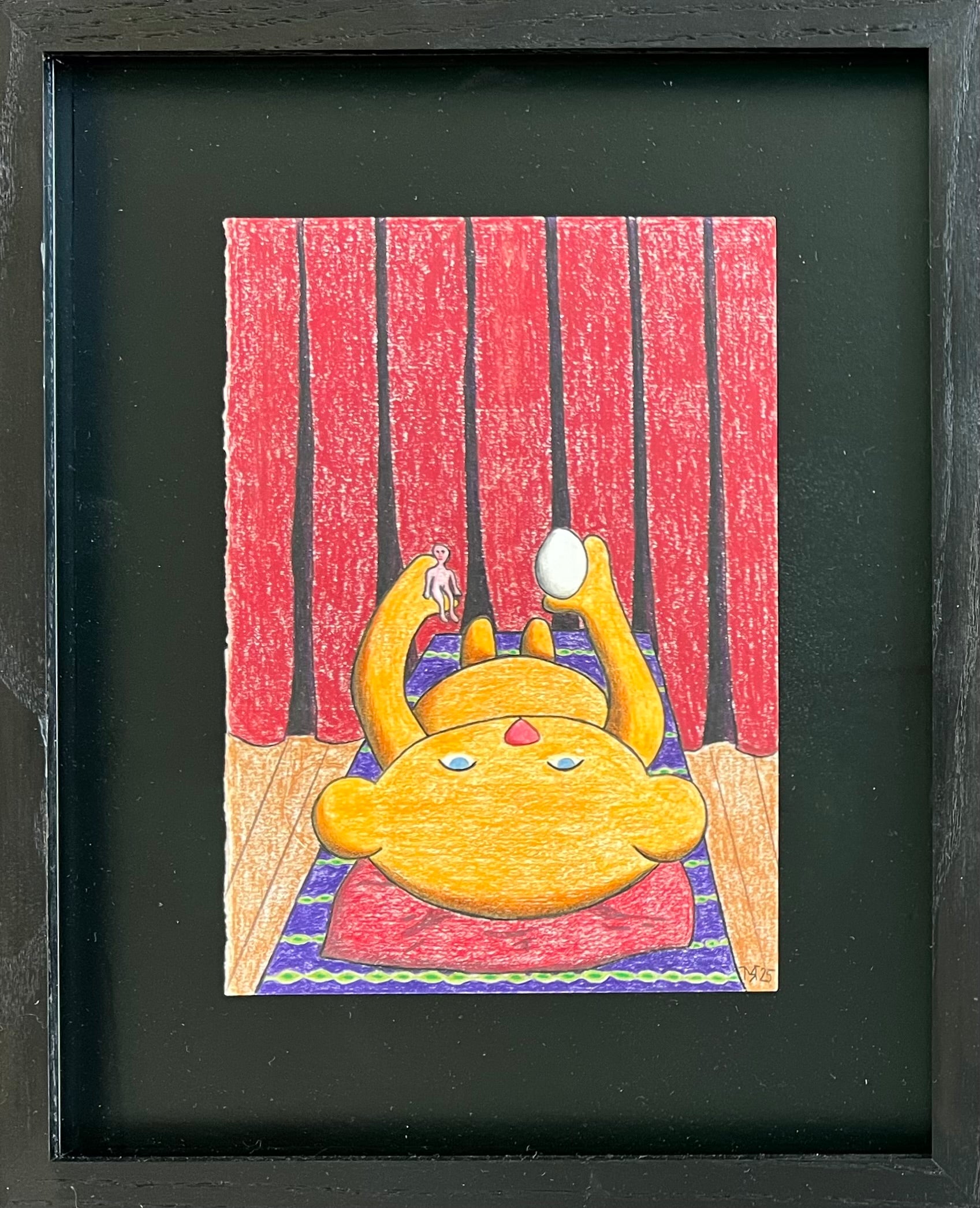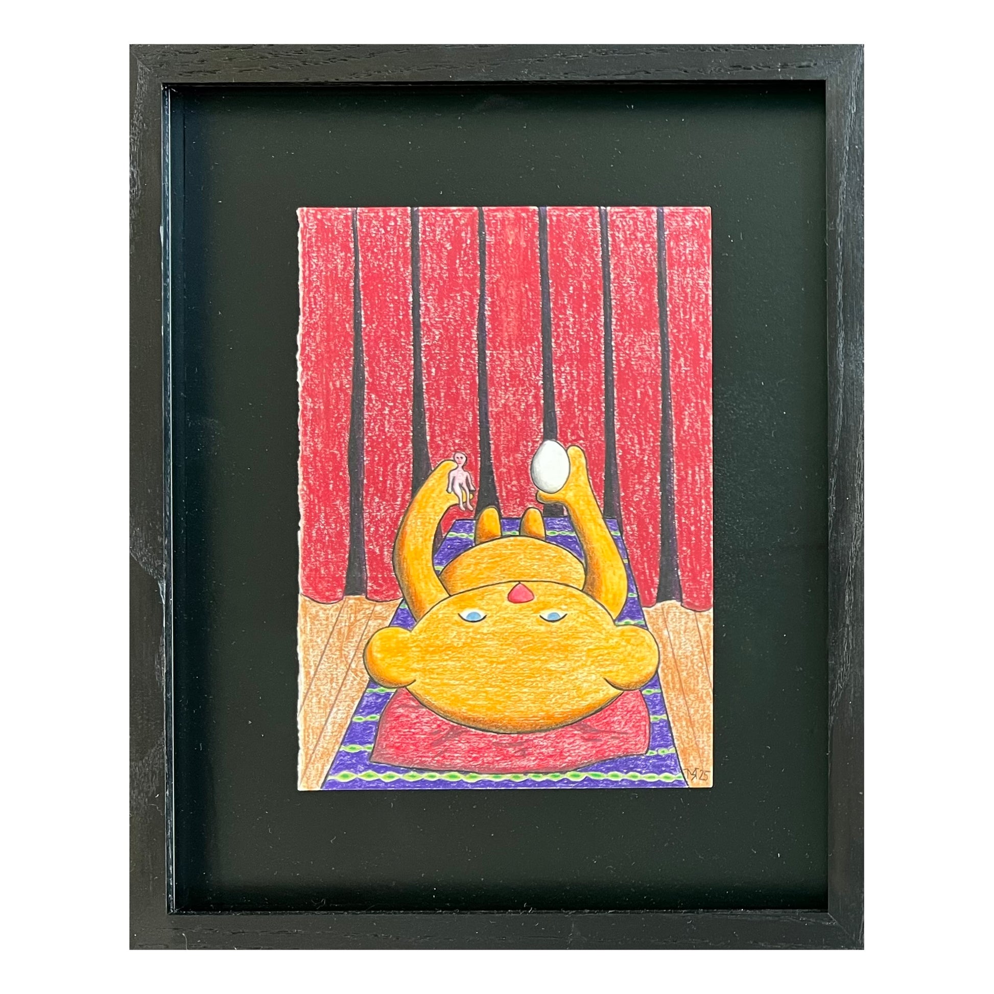 Mette Rasmussen (b. 1993). “Banse Rasmussen i psykoanalyse”, colored pencil on paper, signed and dated 2025. 21 x 15 (32 x 26) cm. New handpainted wood frame, museumglass.