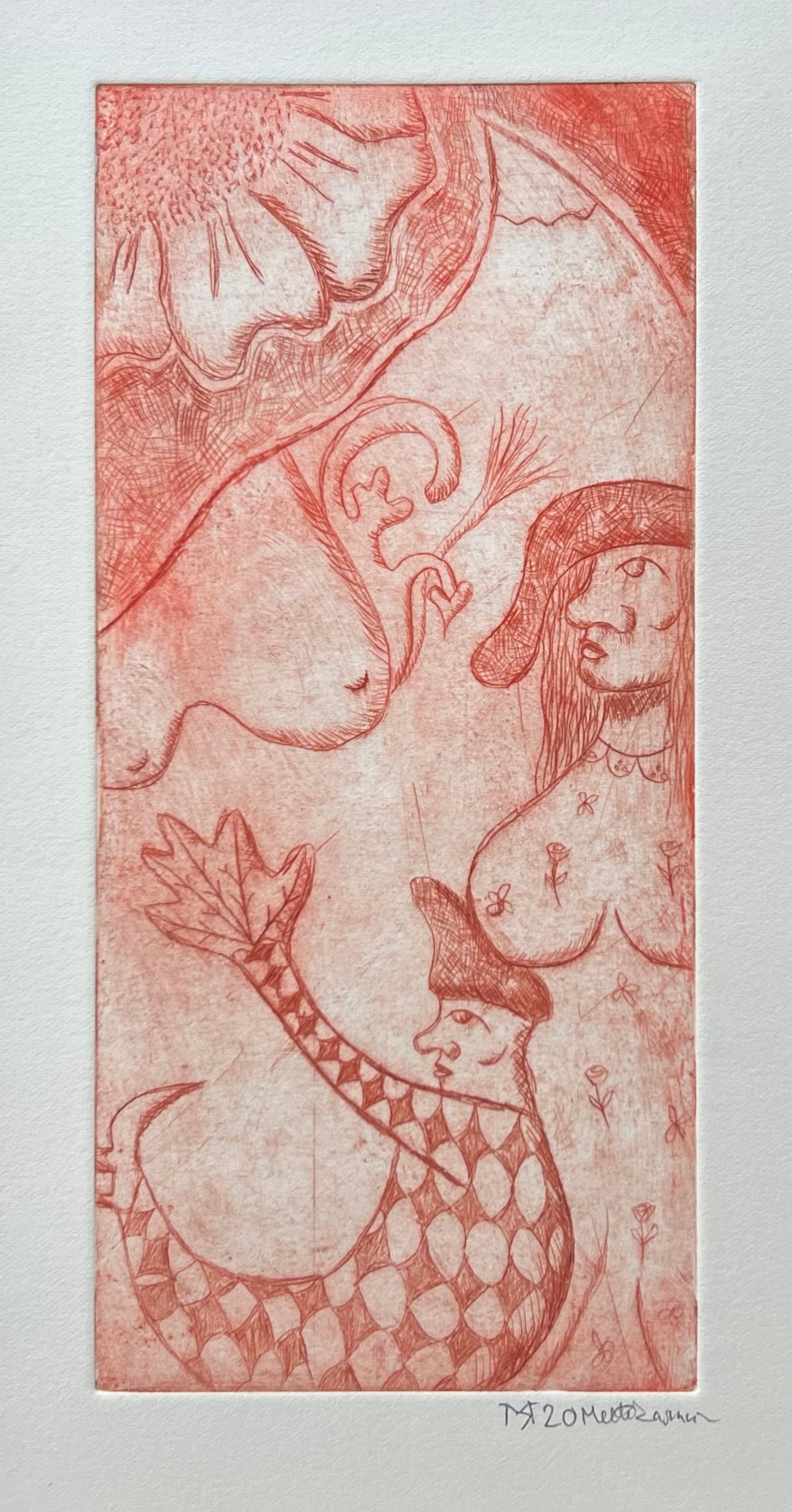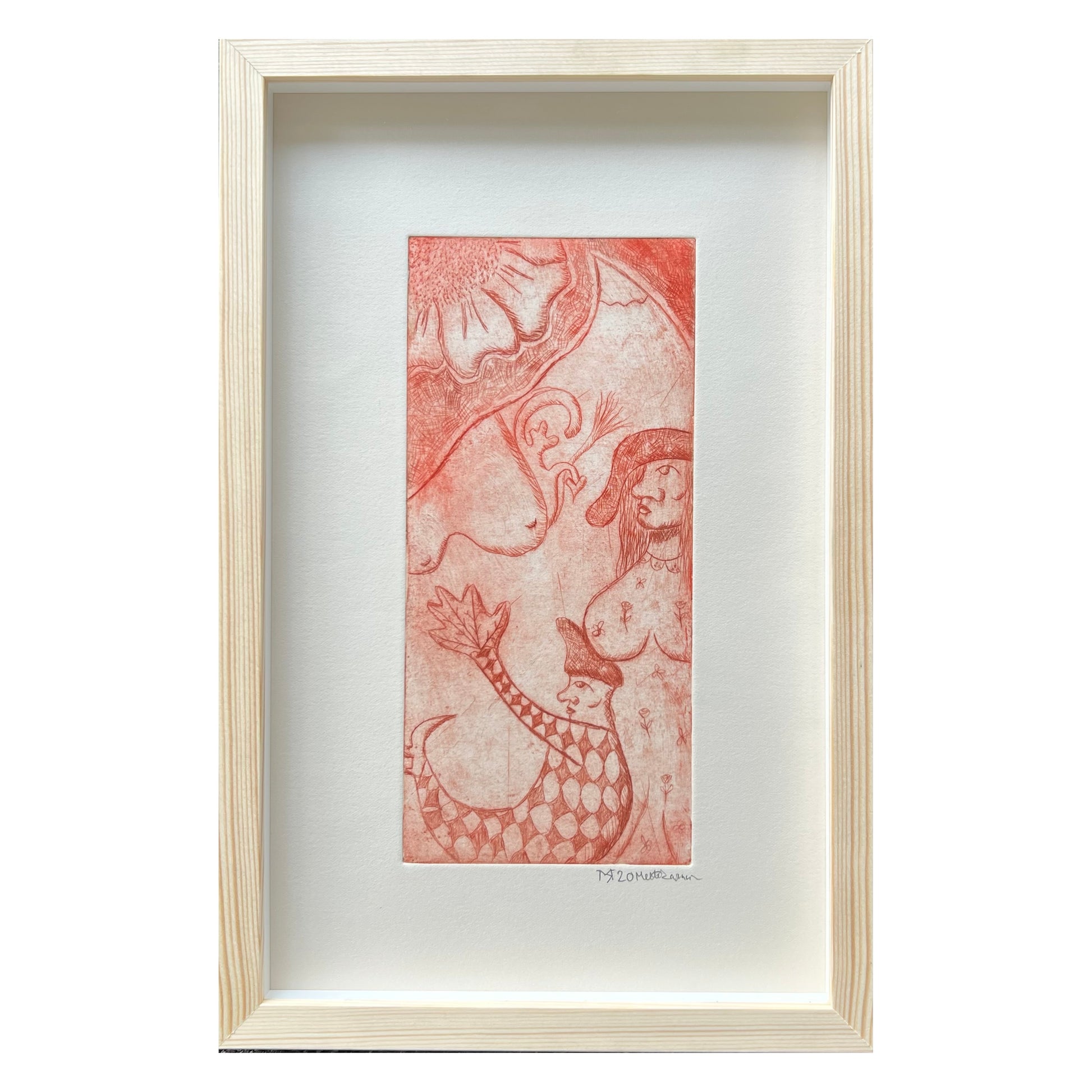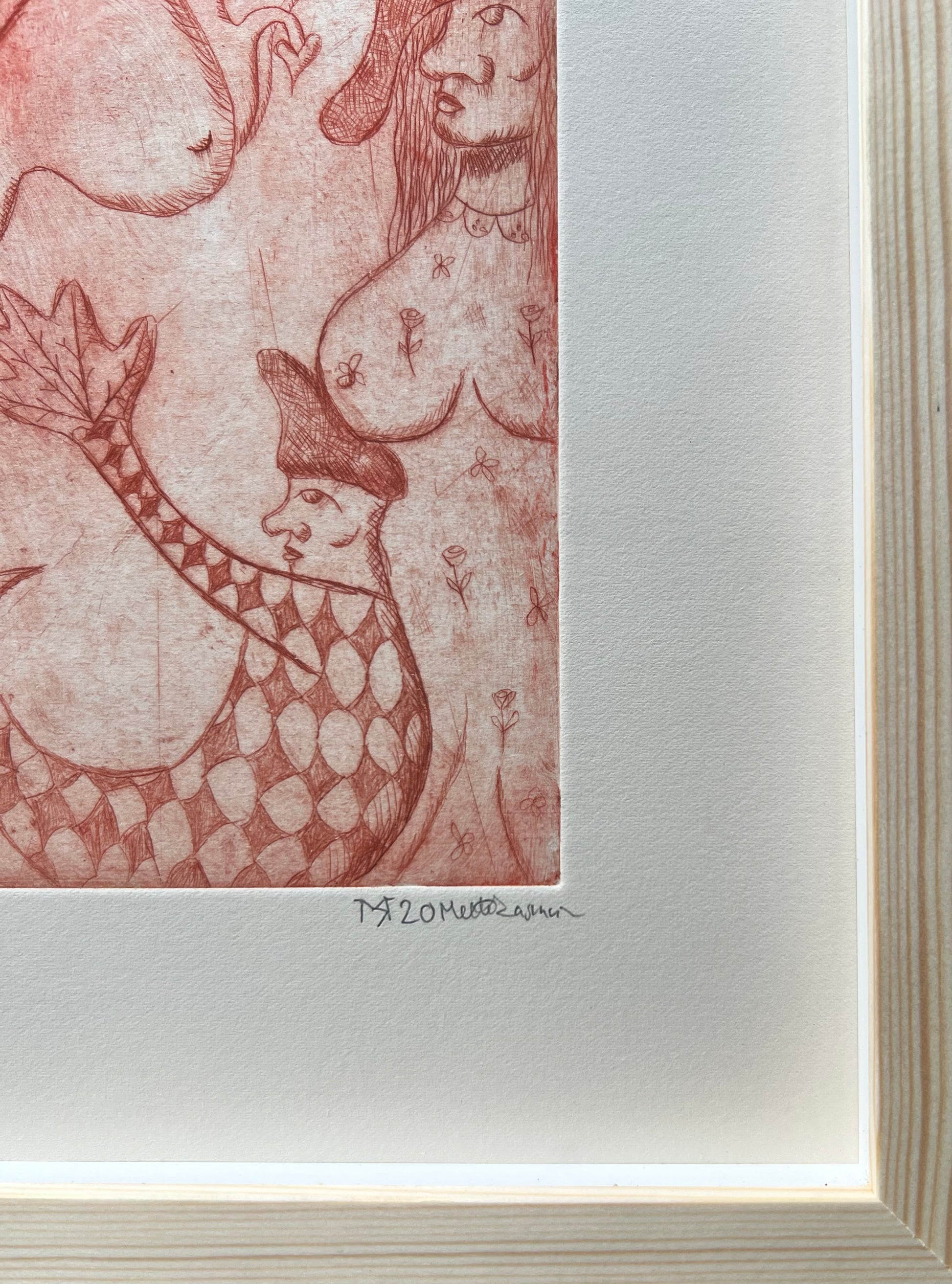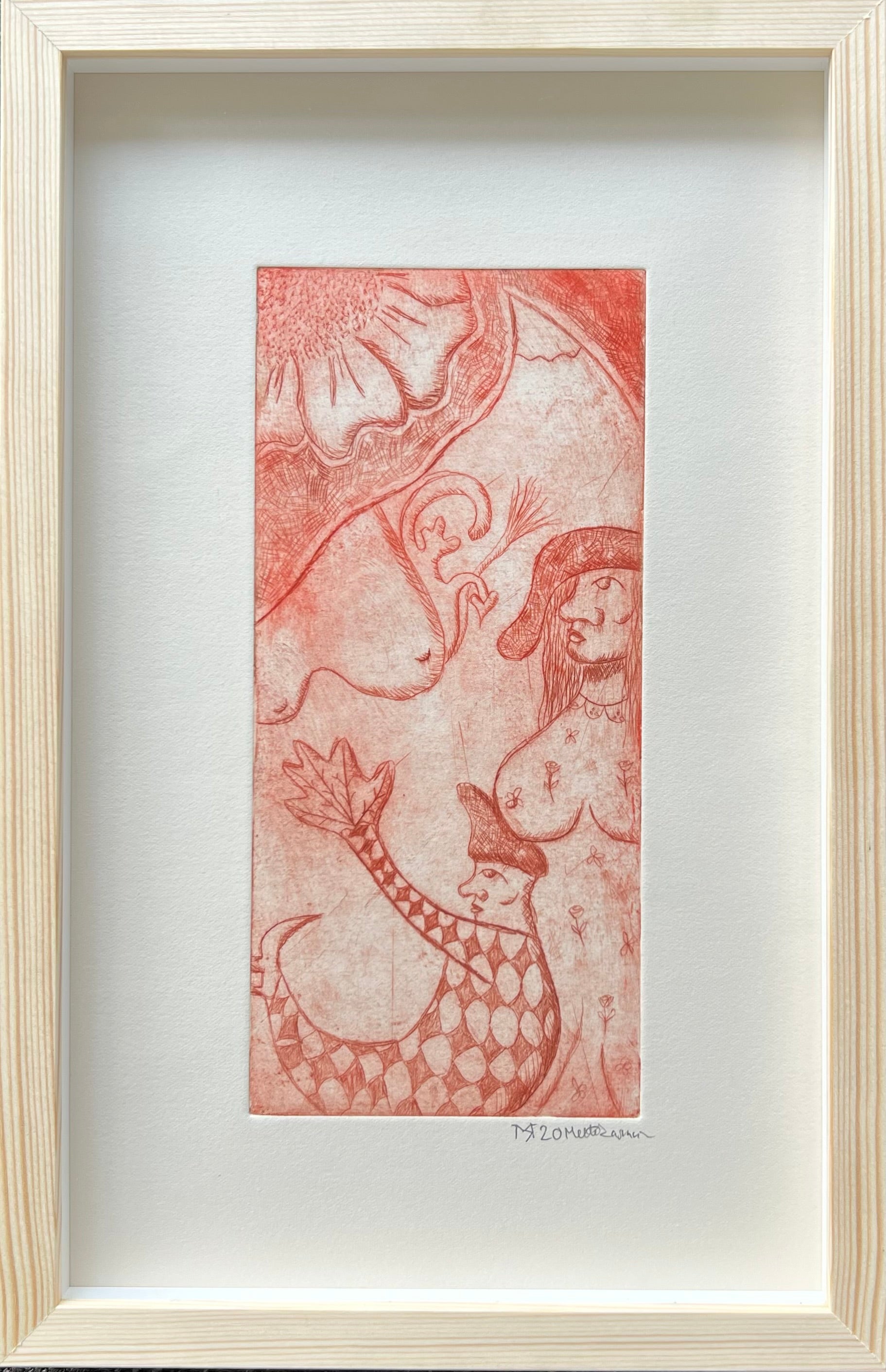 Mette Rasmussen (b. 1993). “Bjerget”, etching, signed and dated 2020. 30 x 19 (33 x 22) cm. New pine wood frame, museumglass.