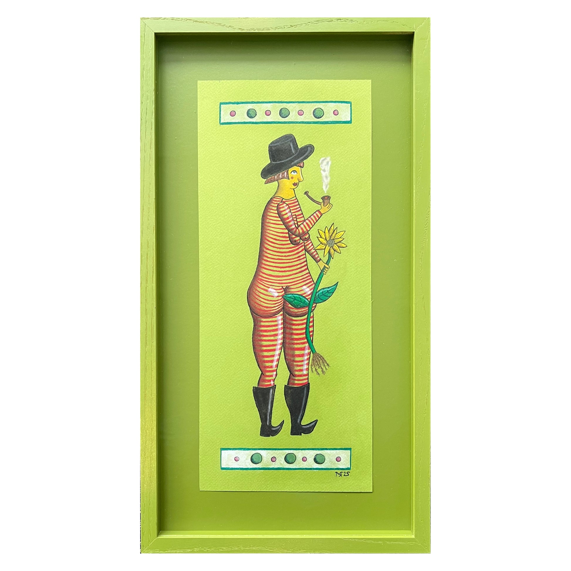 Mette Rasmussen (b. 1993). “Piberygende kvinde I”, dry pastel and colored pencil on paper, signed and dated 2025. 37 x 16 (47 x 26) cm. New handpainted wood frame, museumglass.