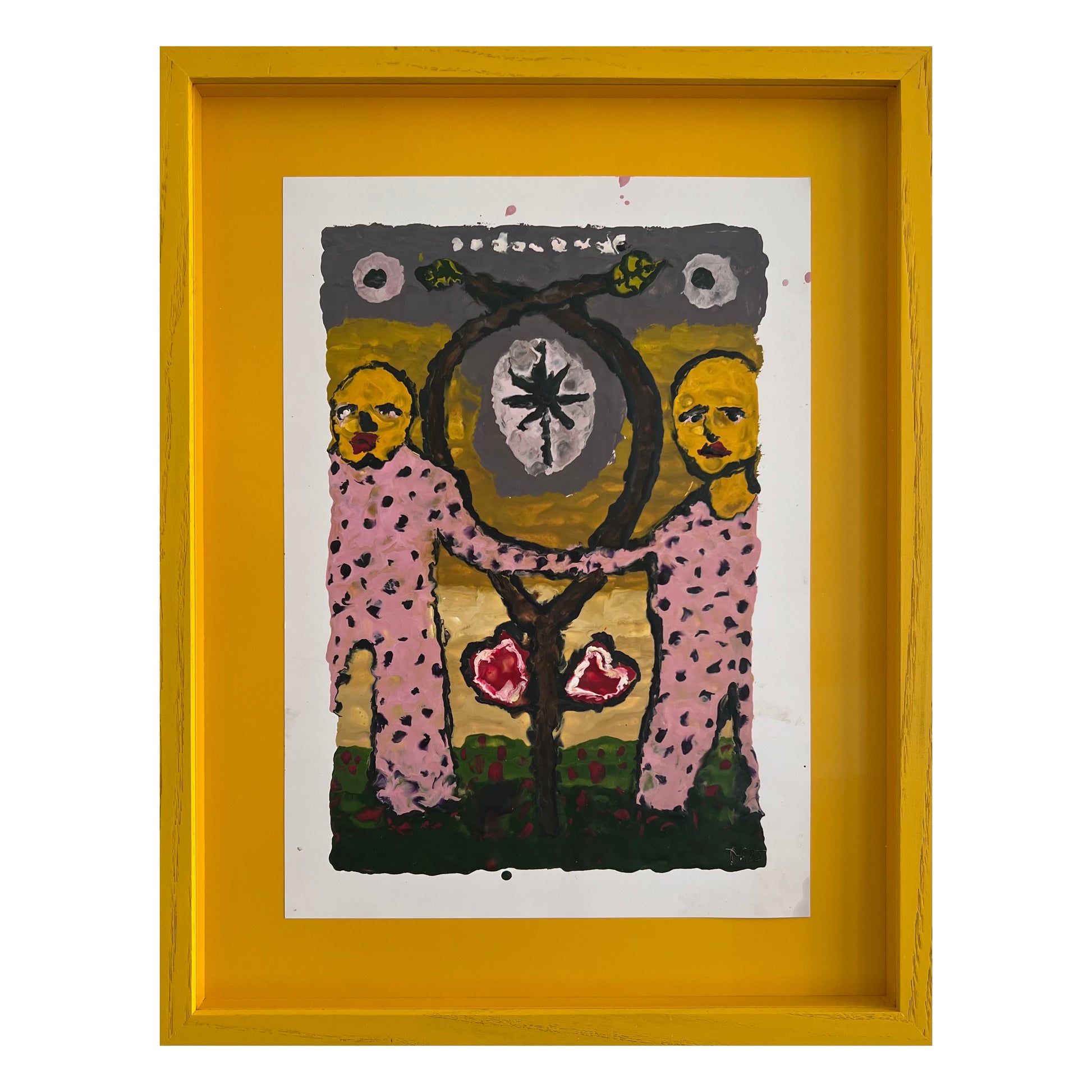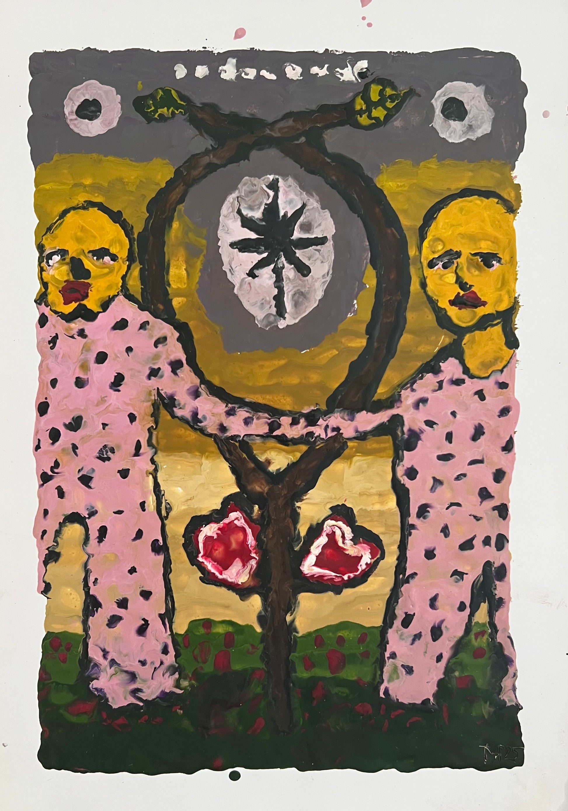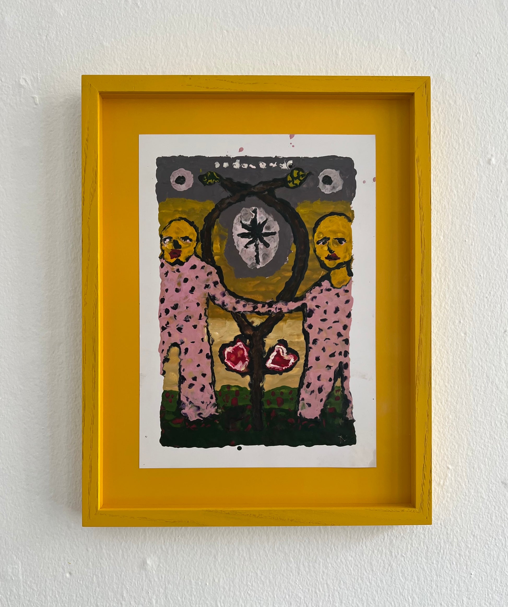 Mette Rasmussen (b. 1993). “Samhørighed”, encaustic painting on paper, signed and dated 2025. 29 x 20 (38 x 29) cm. New handpainted wood frame, museumglass.