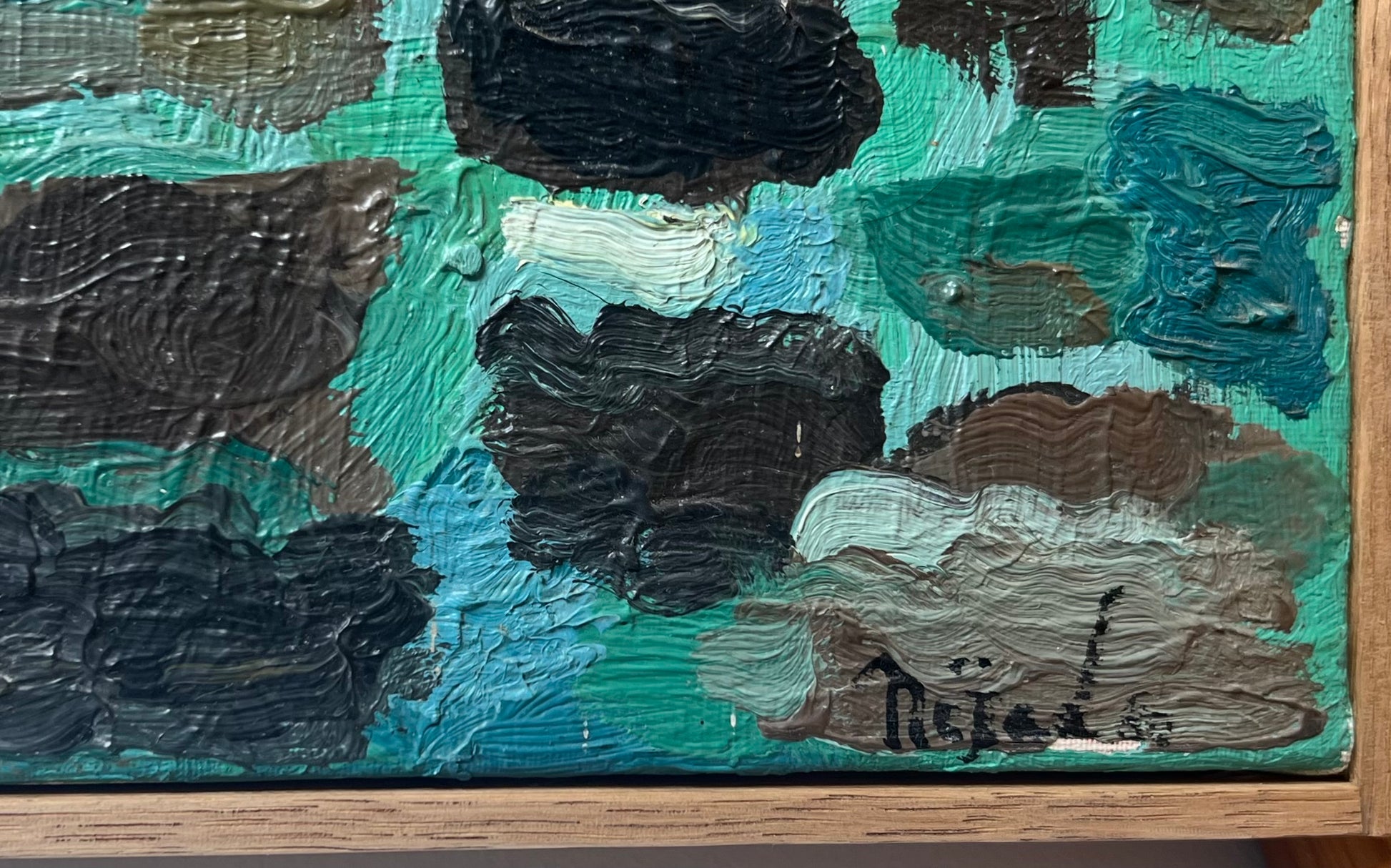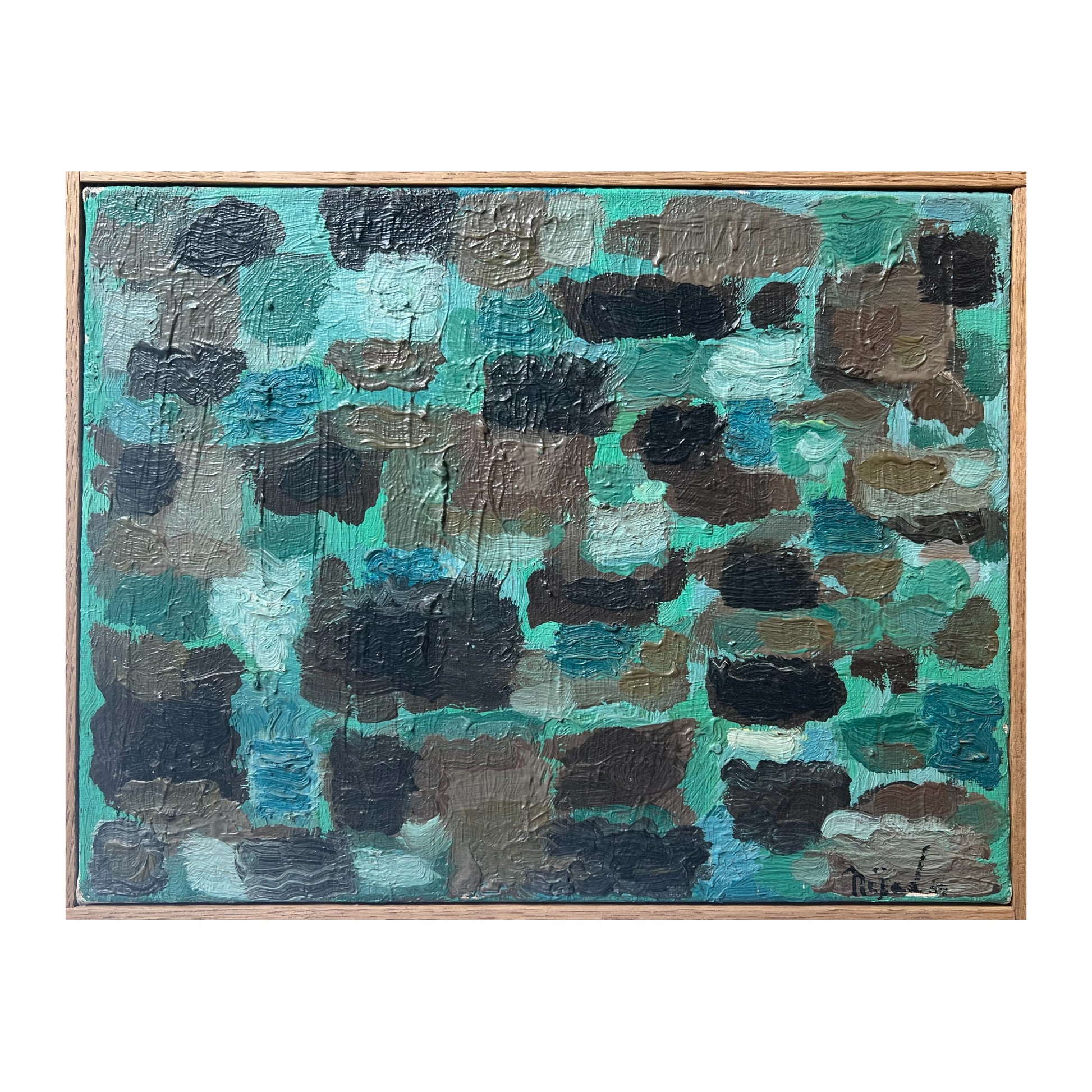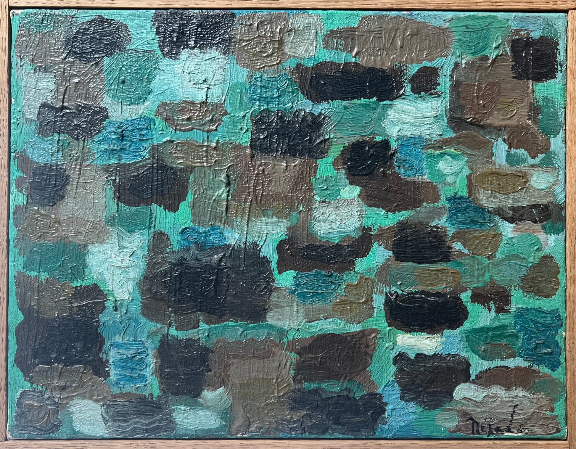 Nejad Melih Devrim (1923-1995). “Composition verte”, Warszawa, 1960. Oil on canvas, signed and dated. 27 x 35 (28 x 36) cm. Oak frame. Two small peelings of paint along edge.