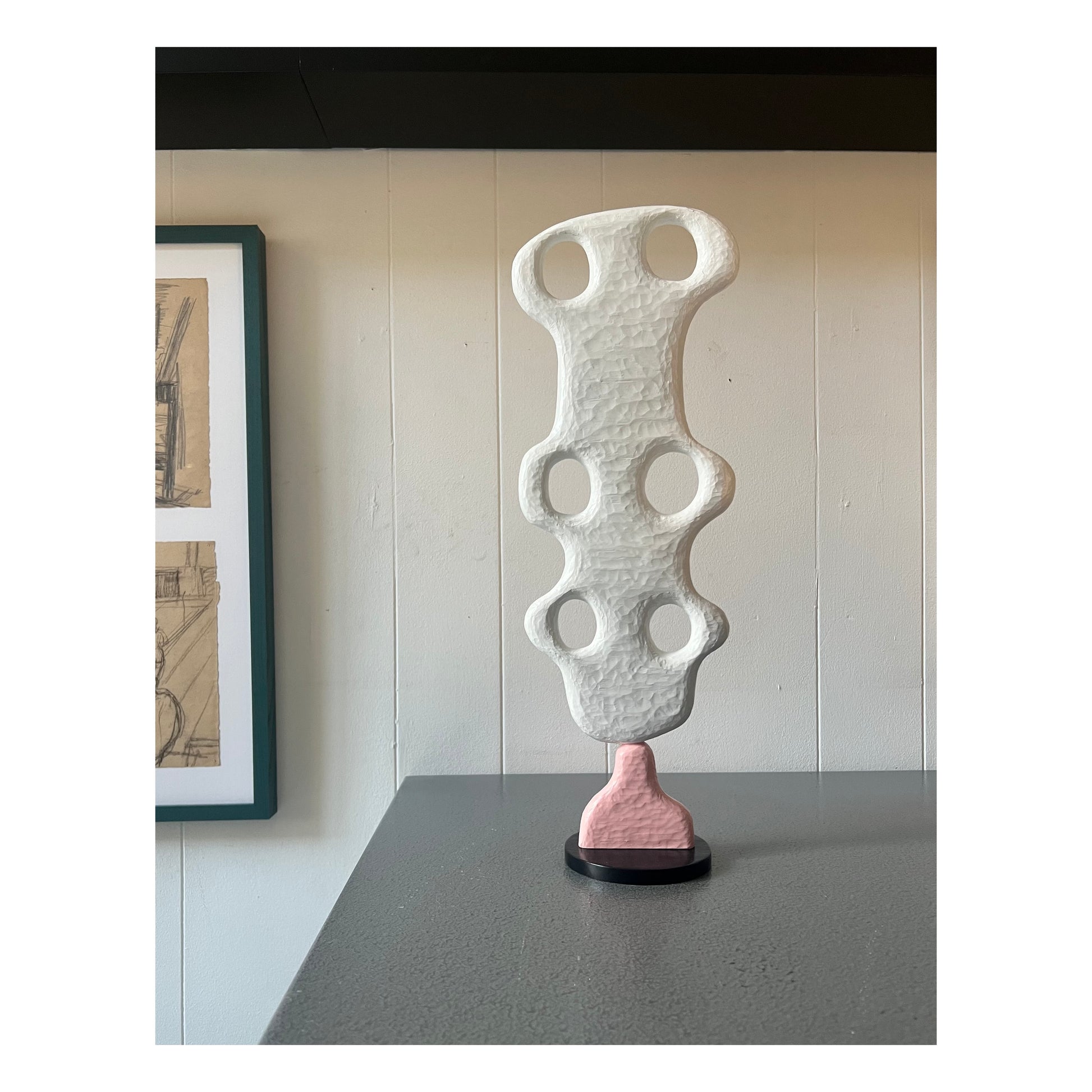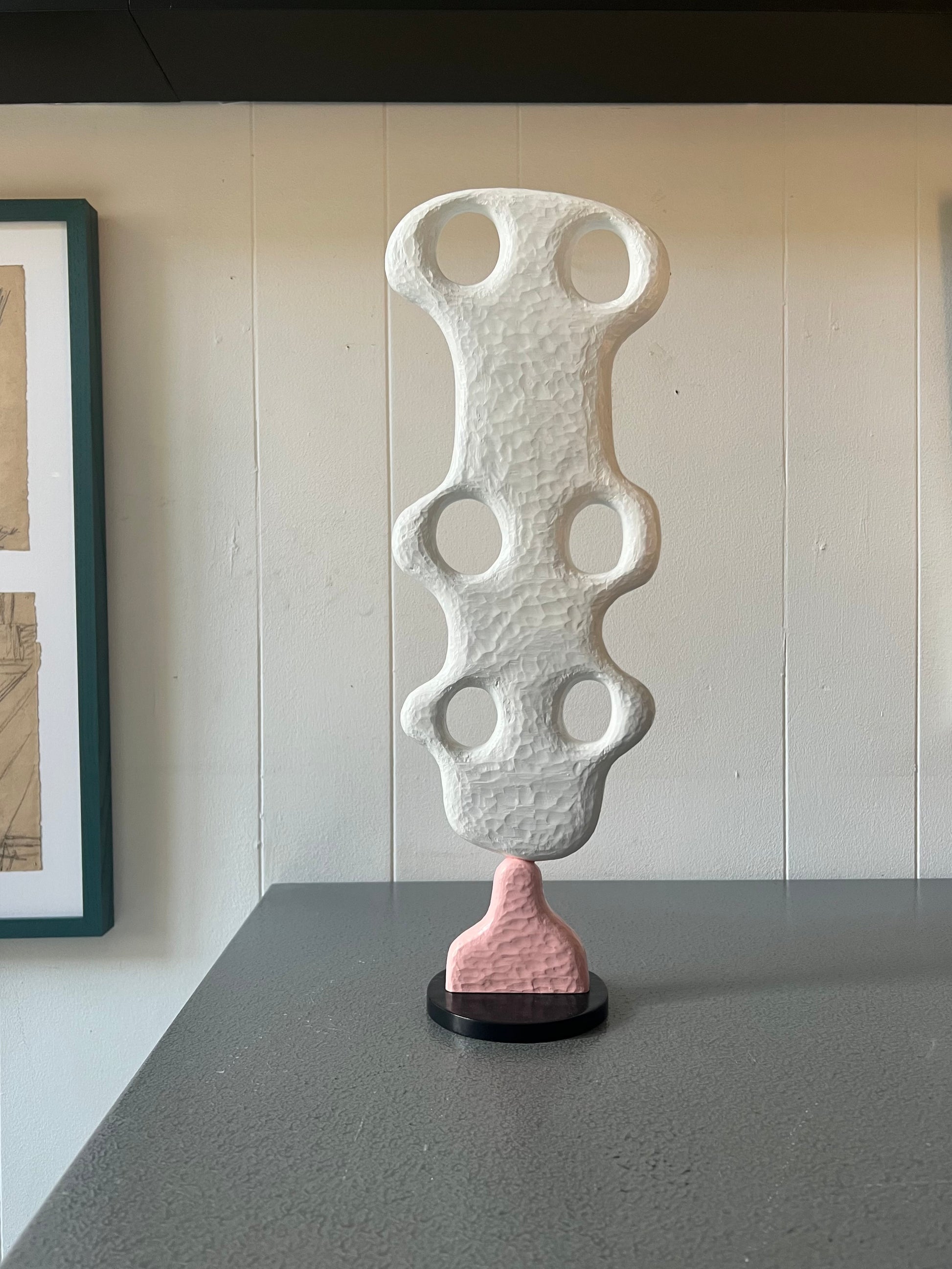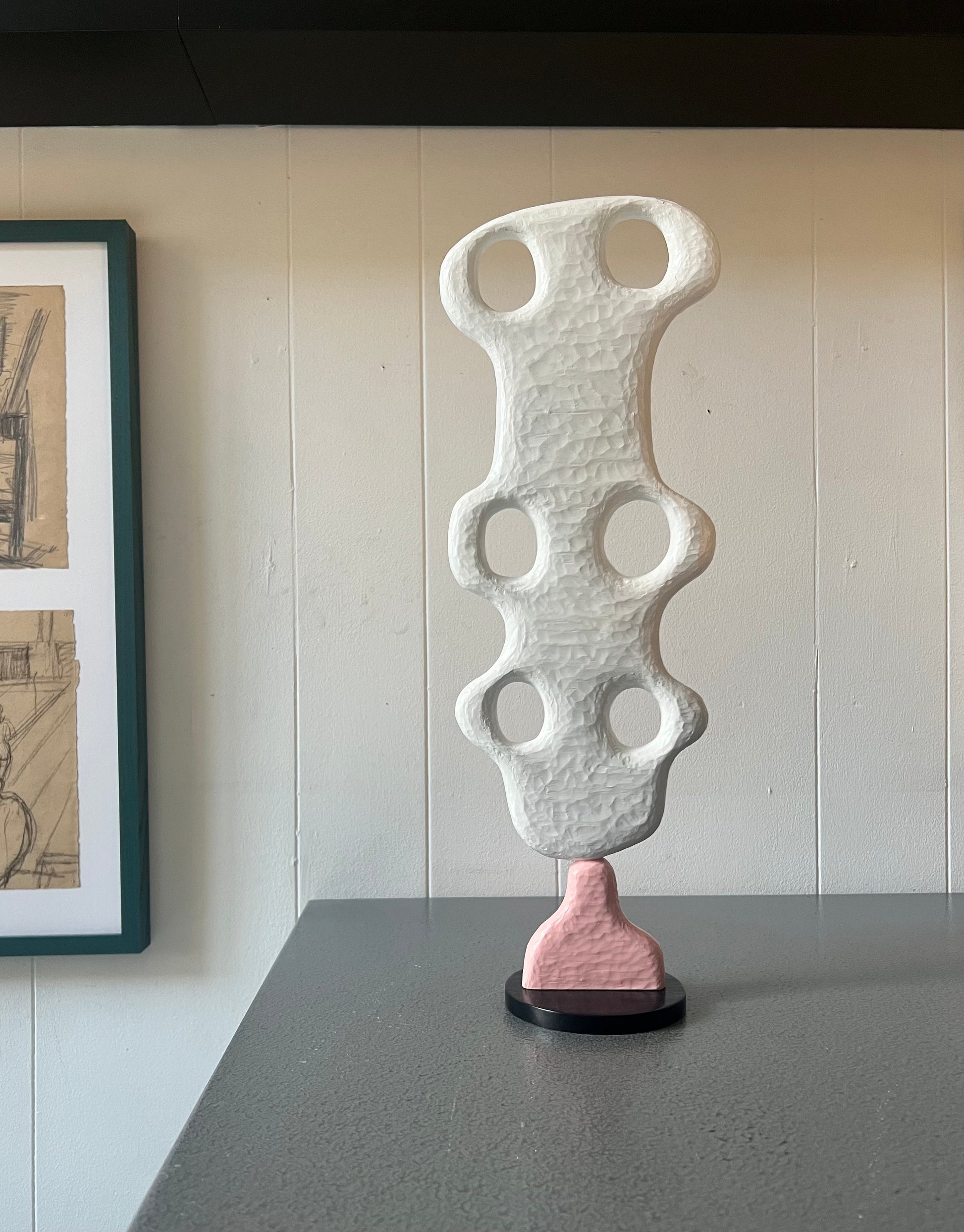 Nicholas Imms (b. 1968). “Bewildered form”, sculpture of plywood, signed. H. 42 cm.