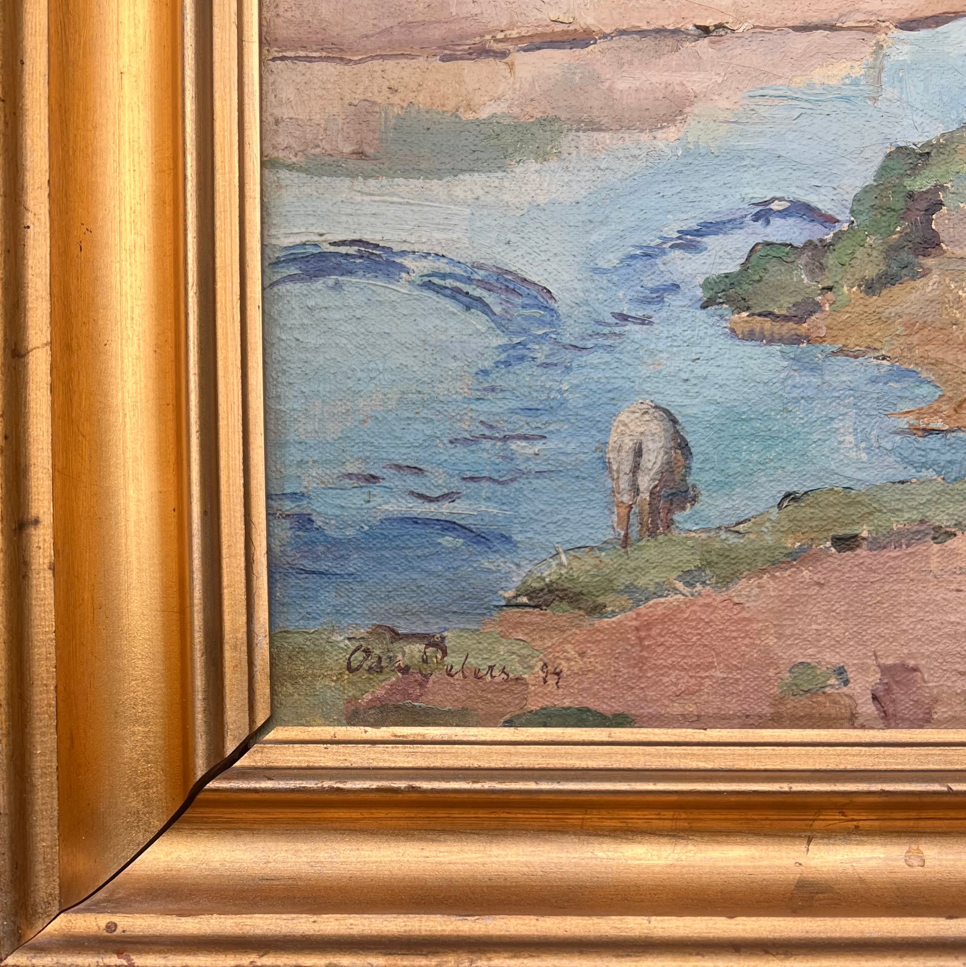Oda Peters (1894-1987). Sheep in landscape, oil on canvas, signed and dated 1924. 38 x 43 (48 x 53) cm. Craquelures.