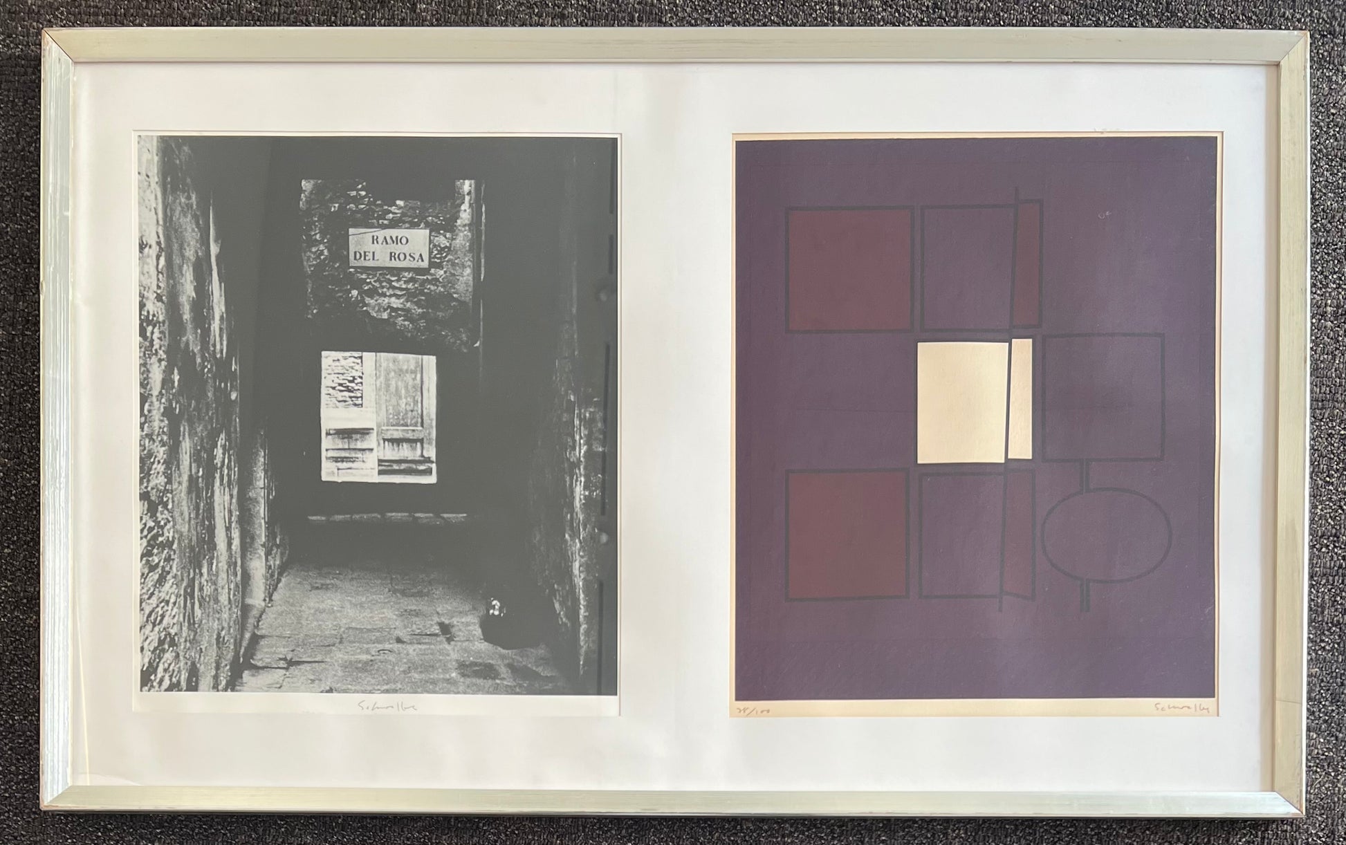 Ole Schwalbe (1929-1990). Compositions from “Romerske Synonymer”, lithograph and offset photo, 78/100, both signed. Each 46 x 38 (58 x 47) cm. Frame 62 x 99 cm.