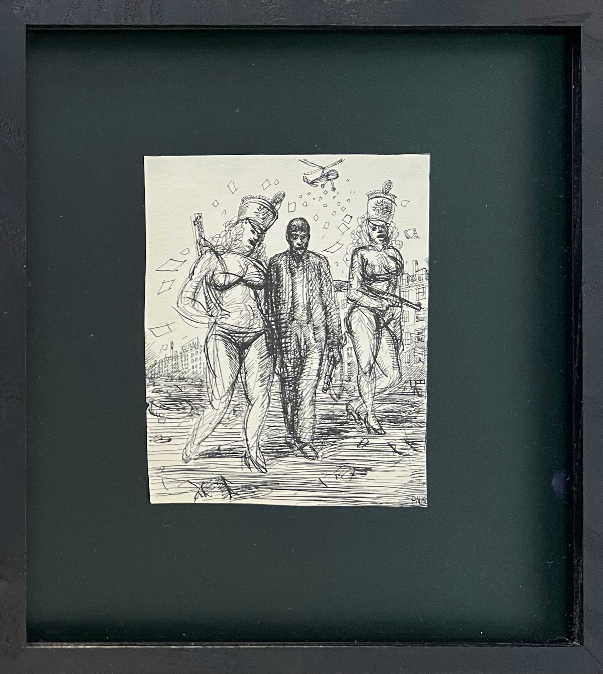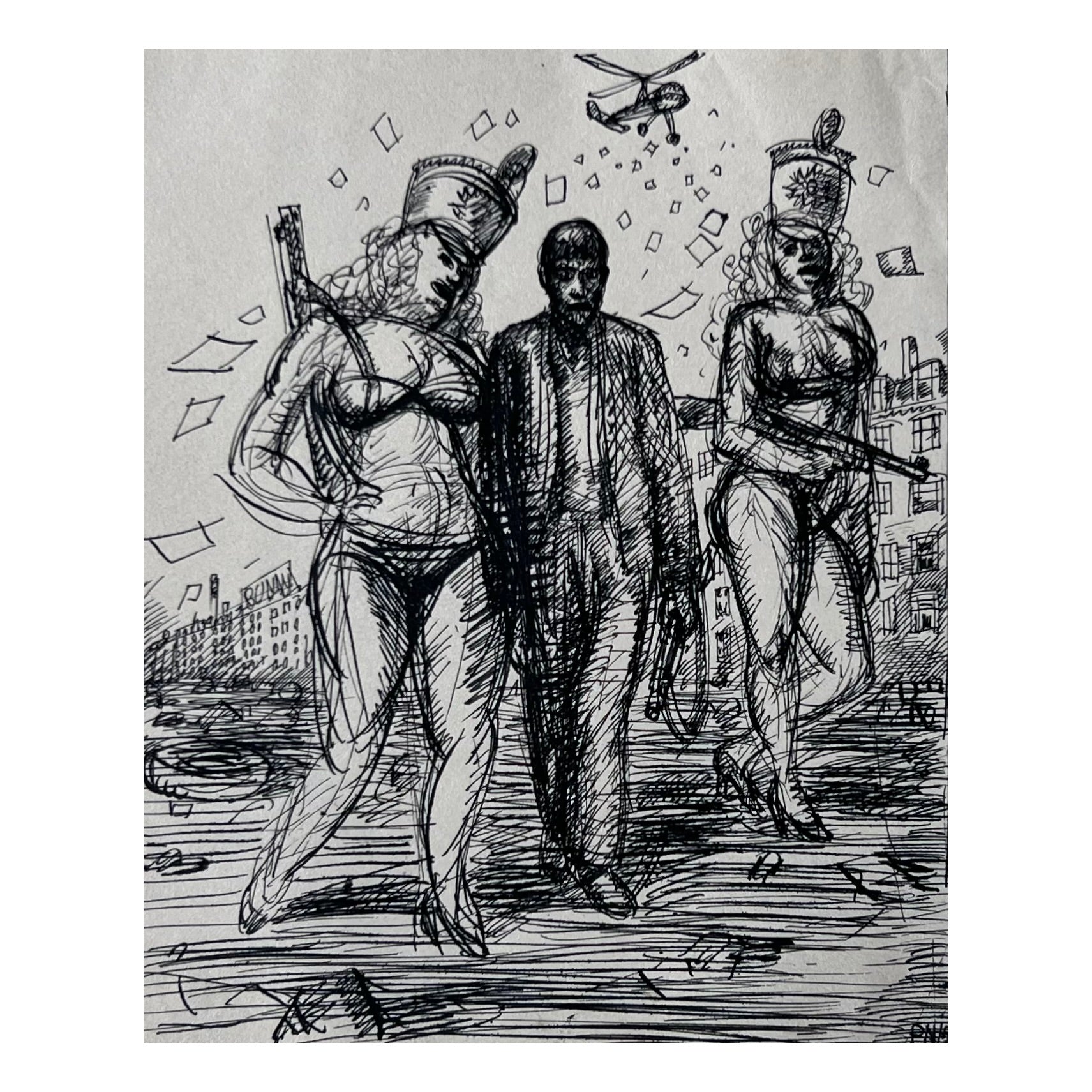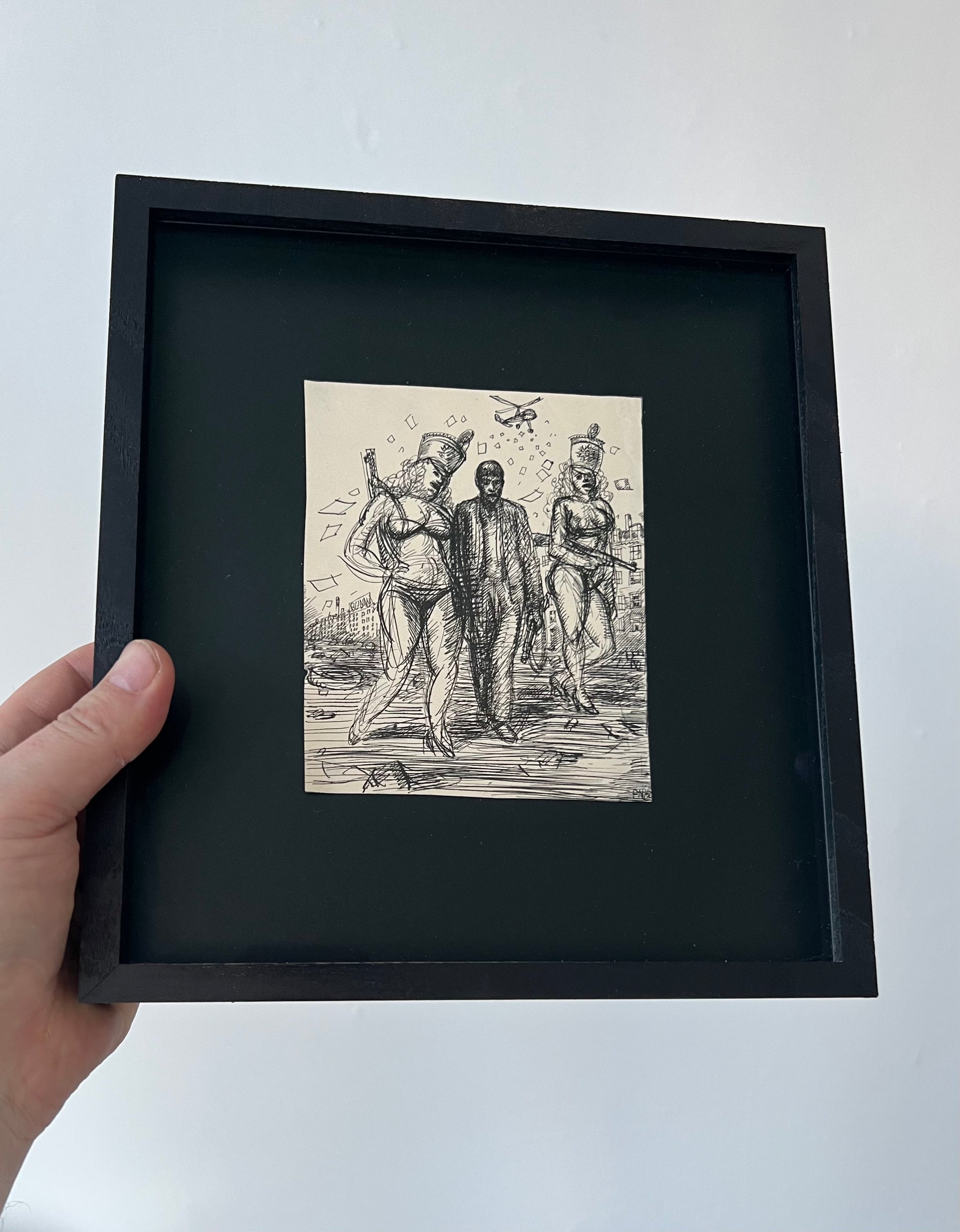 Palle Nielsen (1920-2000). ”Antikrigserie”, pen on paper, signed and dated “PN 52”. 13,5 x 11 (26 x 23) cm. New frame, museum glass.