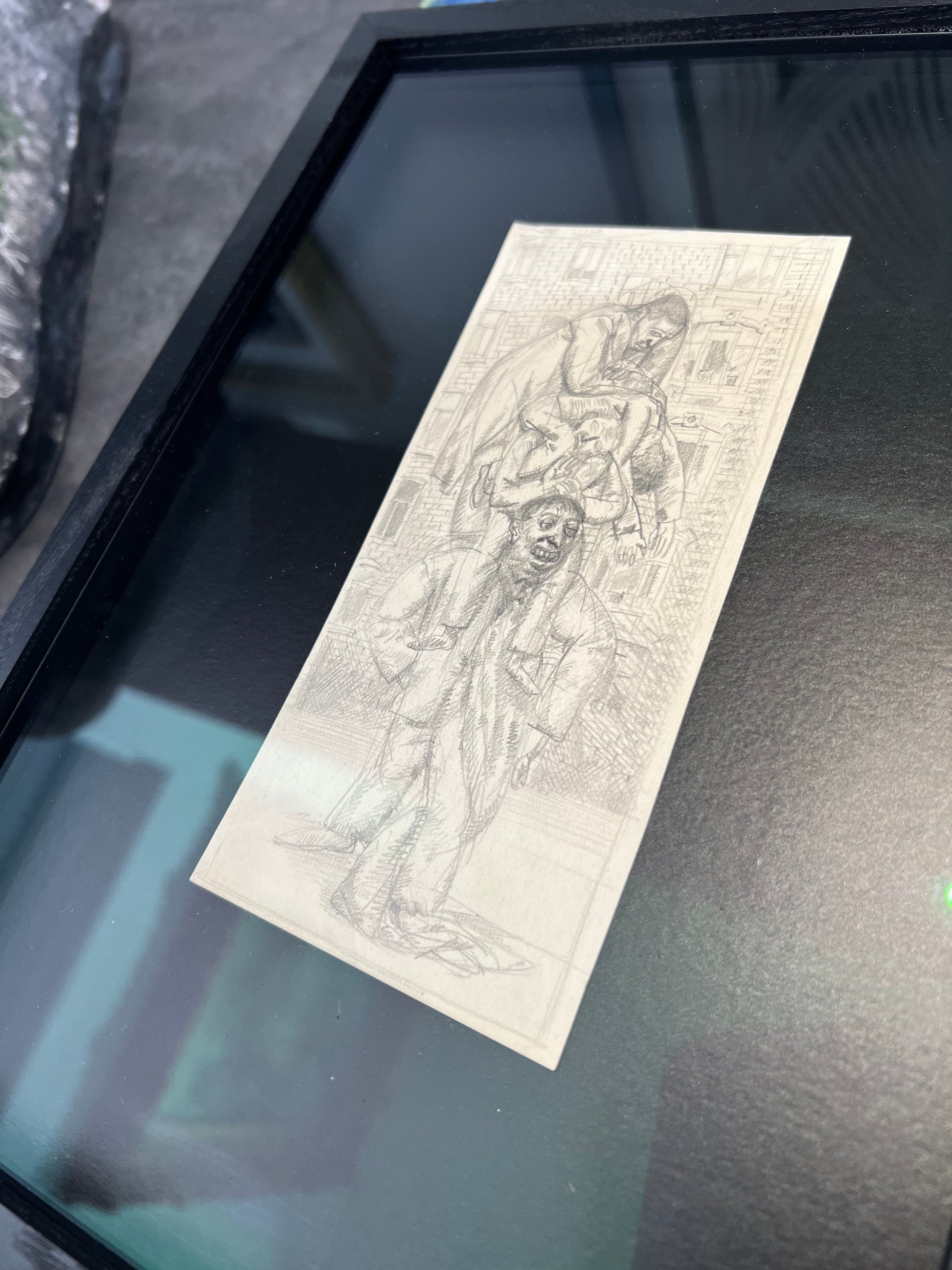 Palle Nielsen (1920-2000). “Rædselserie”, pencil on paper, unsigned. 16,5 x 8 (28 x 20) cm. New wood frame, museum glass.
