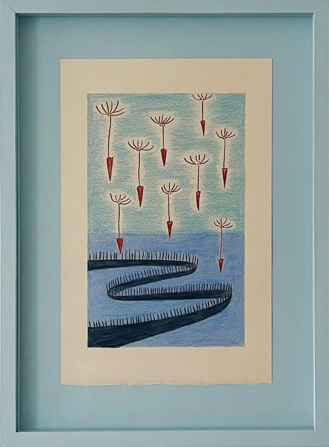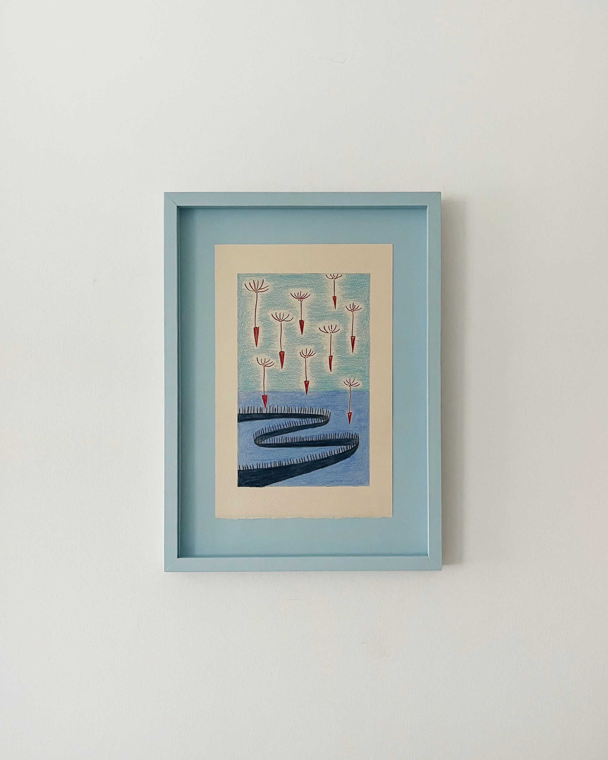 Patricia Perales Garcia (b. 1991). "Motherhood (Despair)”, oil pastel, oil crayon and colour pencil on arches paper, signed on the back. 28 x 19 (39 x 29) cm. New wood frame, museumglass.