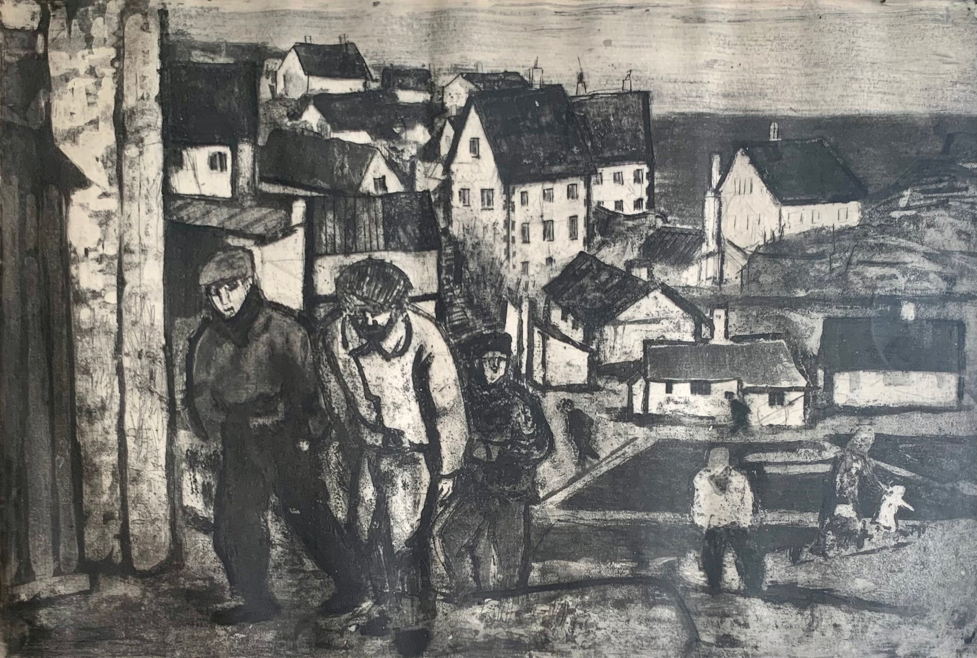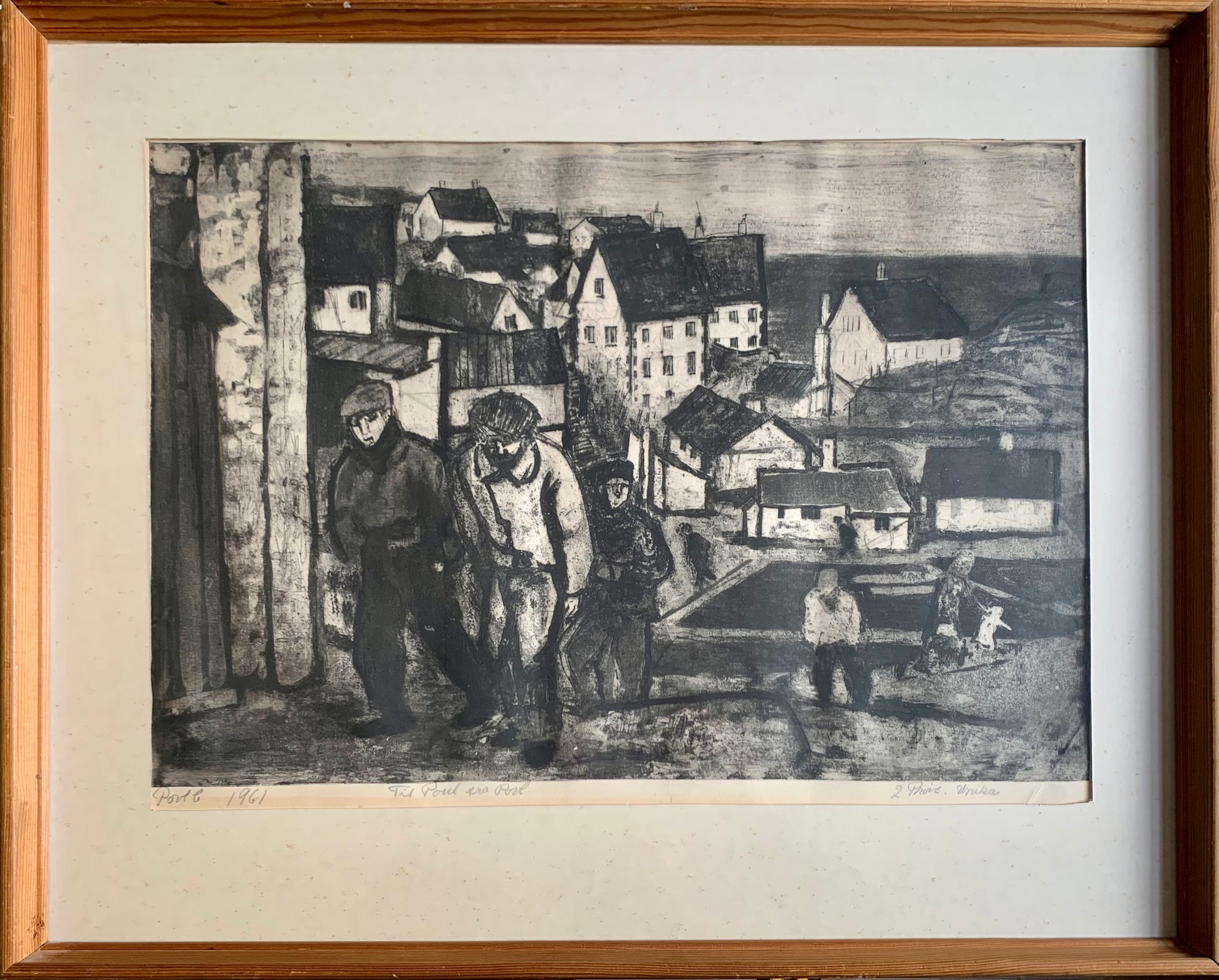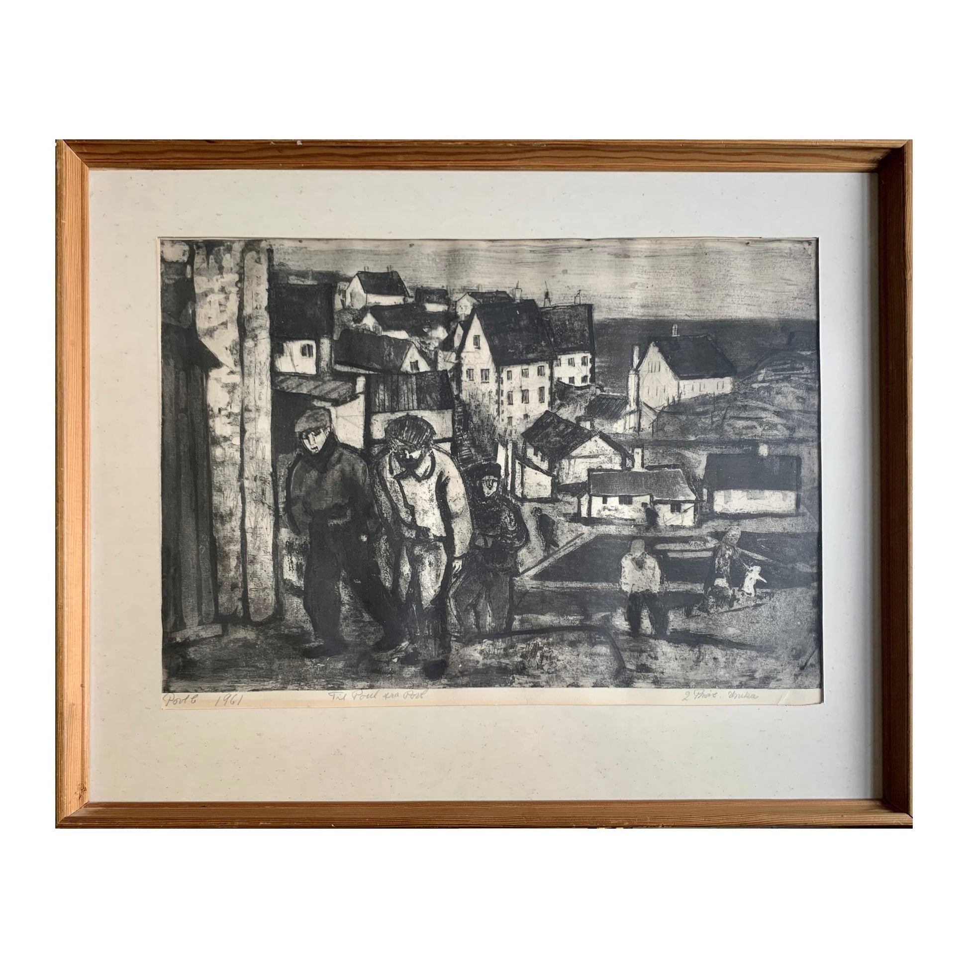 Povl Christensen (1909-1977). “Fra Bergen”, etching, signed. 41 x 58 (59 x 73) cm. Fold in lower right corner.