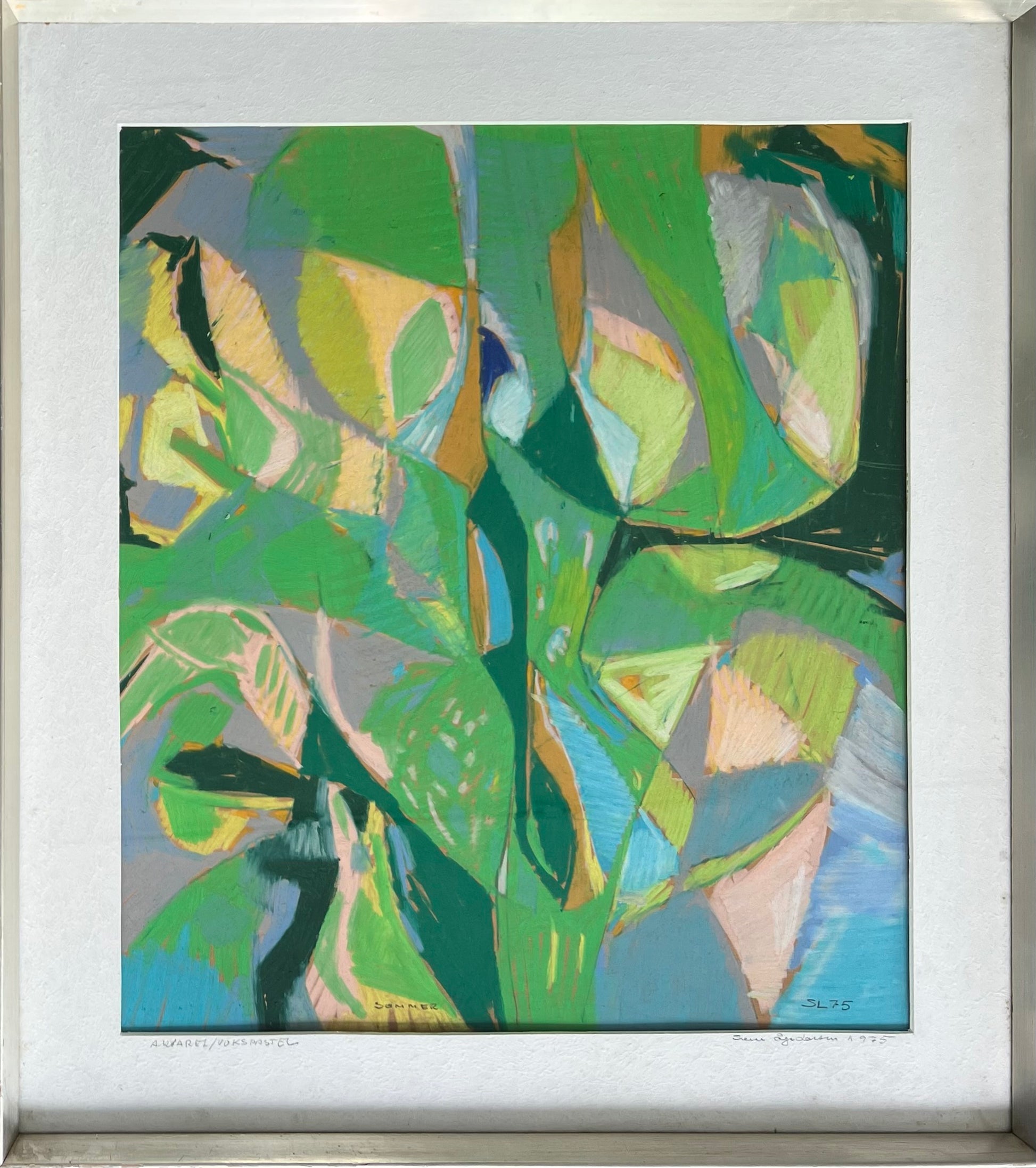 Sven Åge Larsen (1931-2004). “Sommer”, oilchalk on paper, signed and dated 1975. 53 x 46 (69 x 62) cm. Some wear on frame.