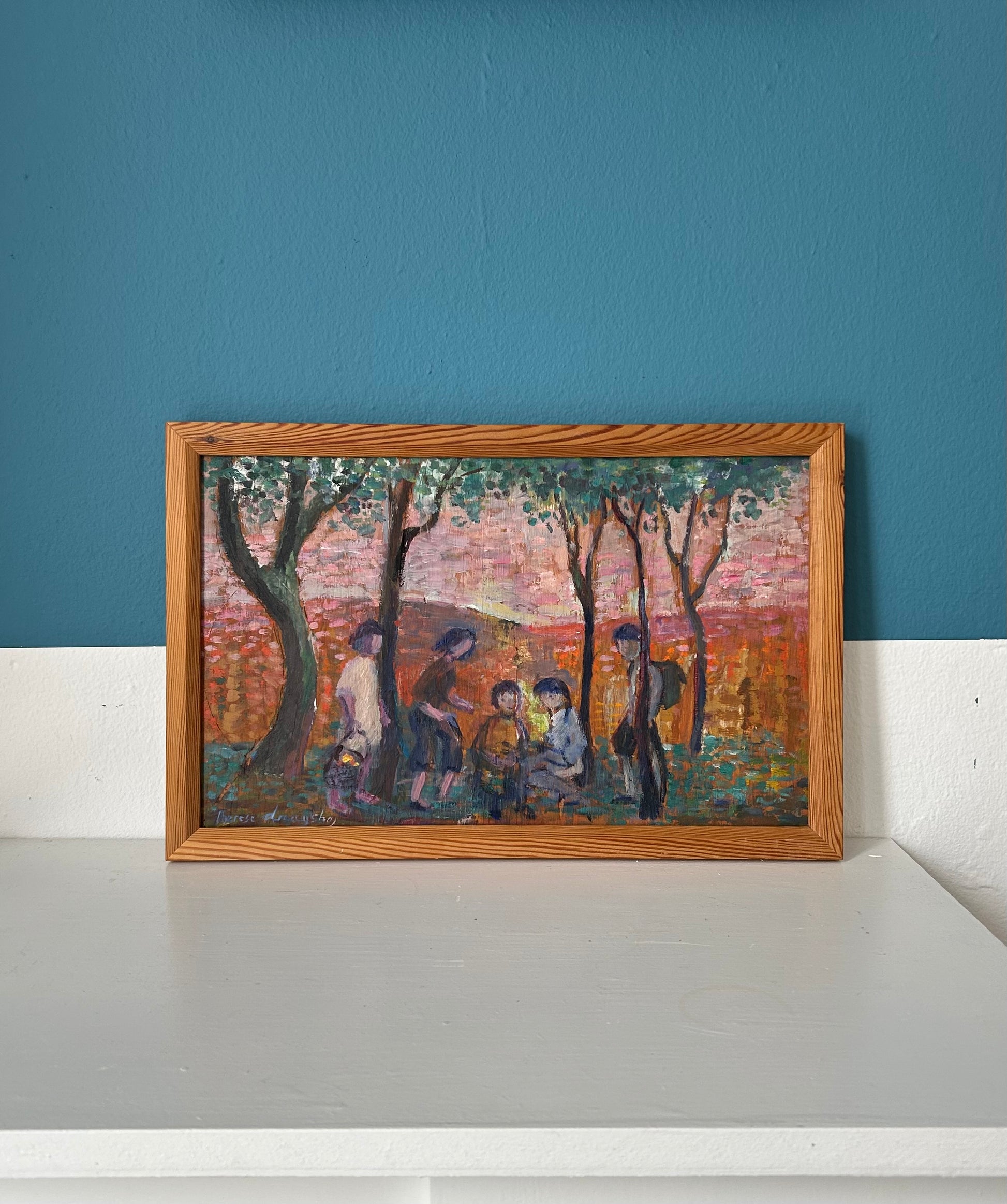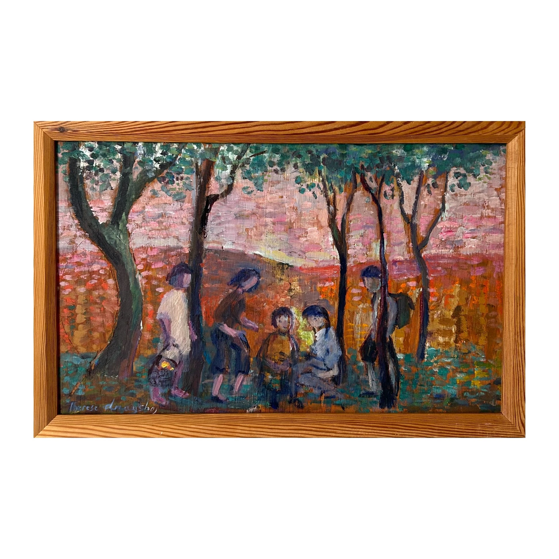 Therese Dragshøj (1909-1998)."Vandrefugle.., Møn", oil on canvas, signed and dated on the back. 23 x 38 (27 x 42) cm. Framed.