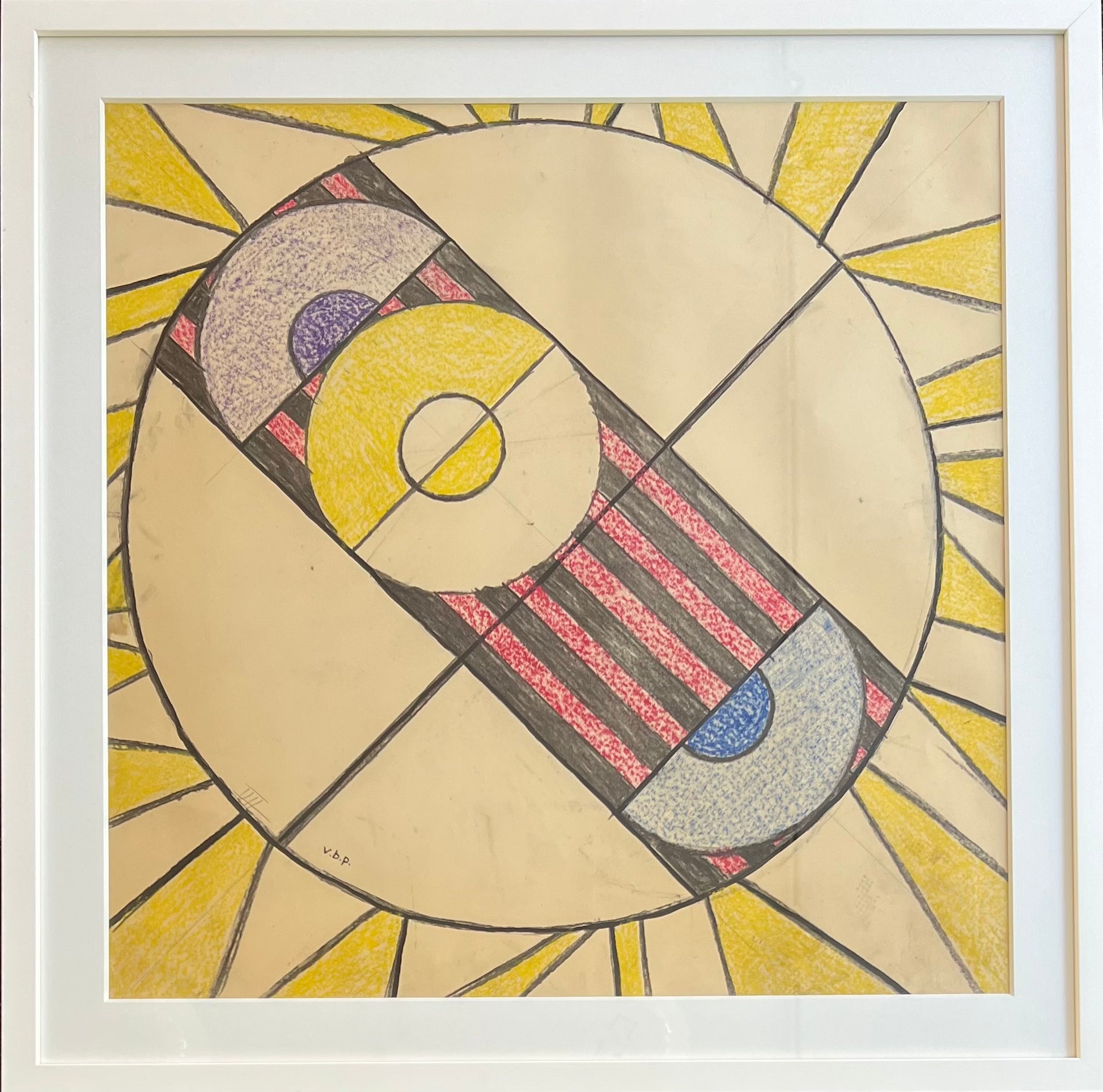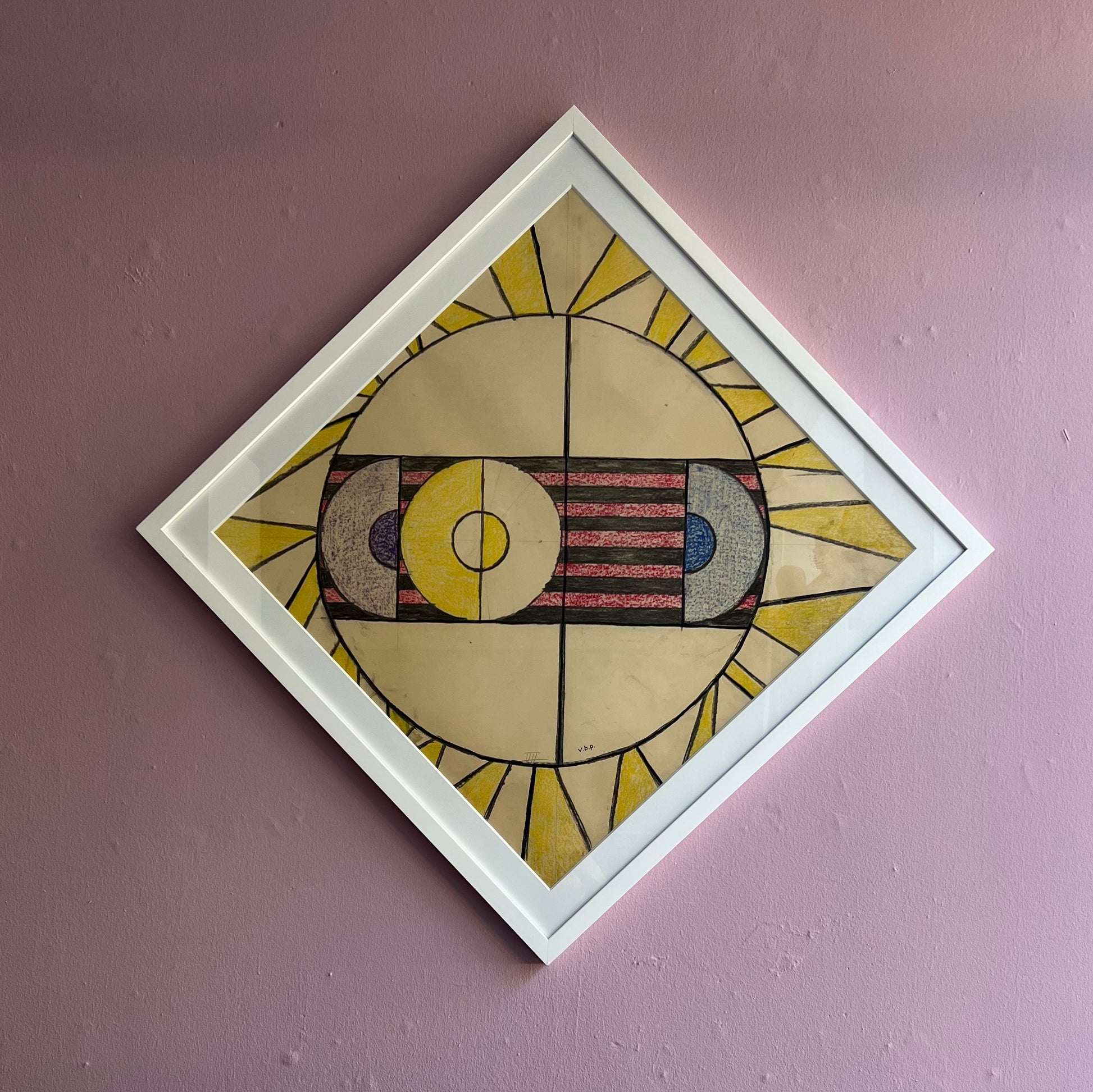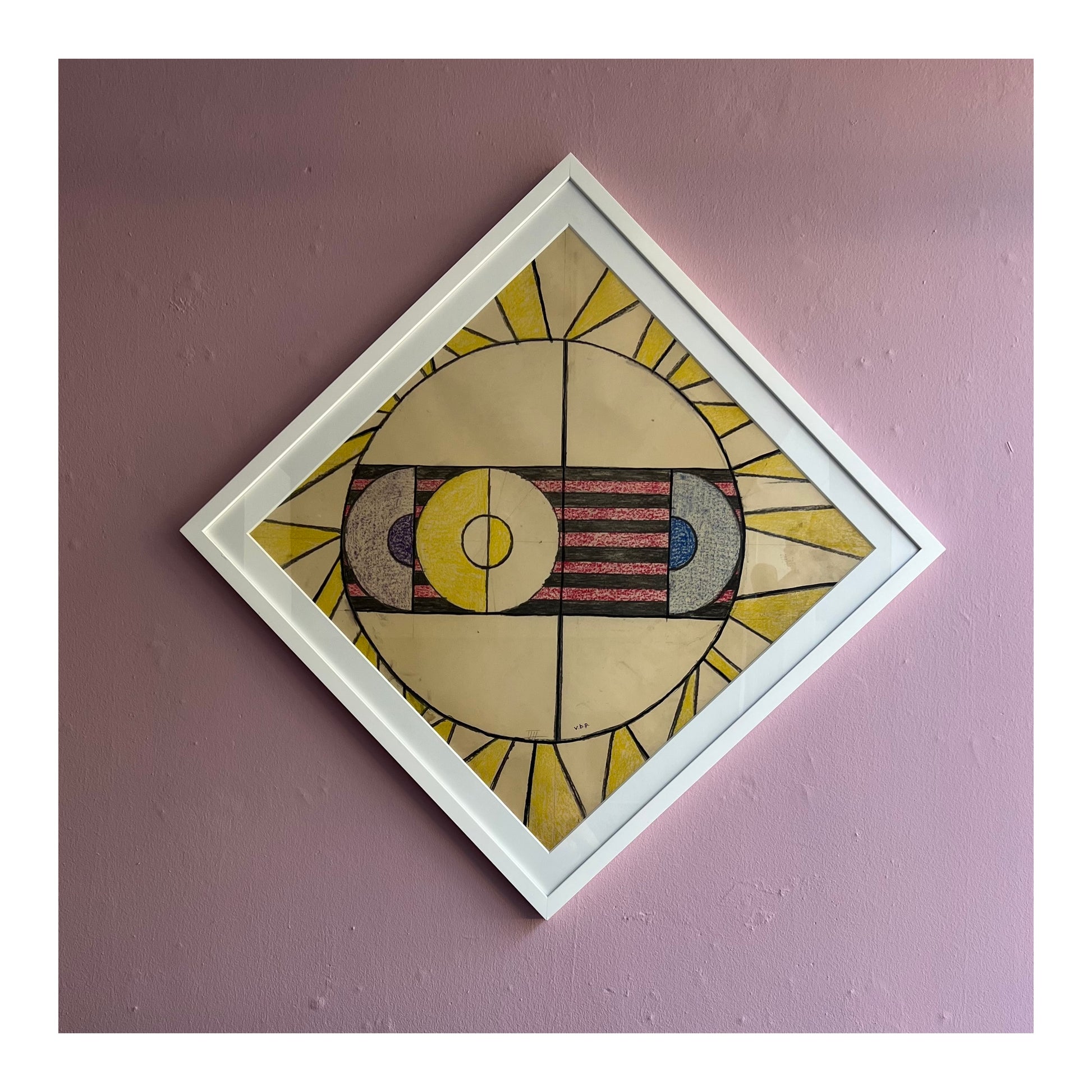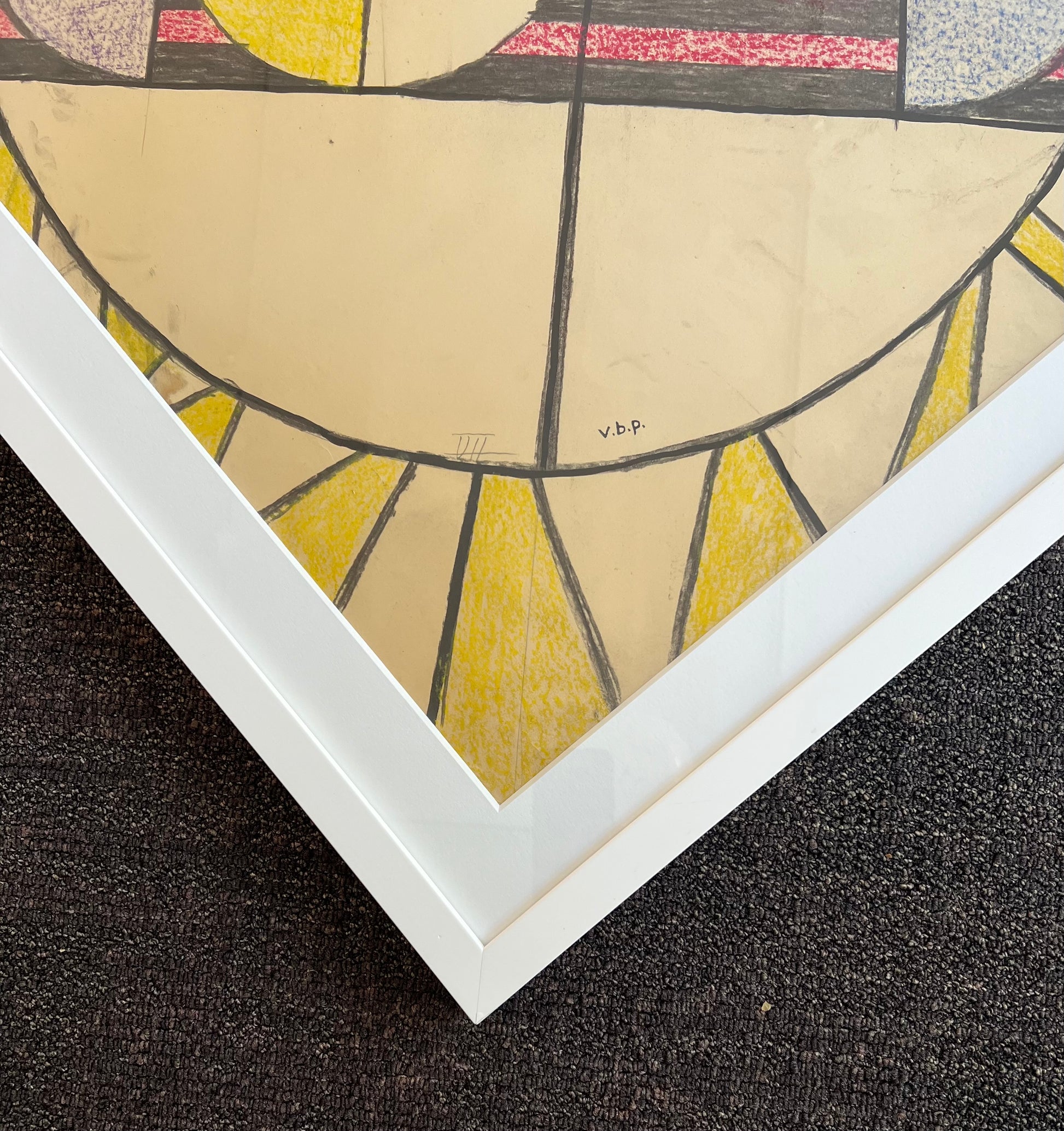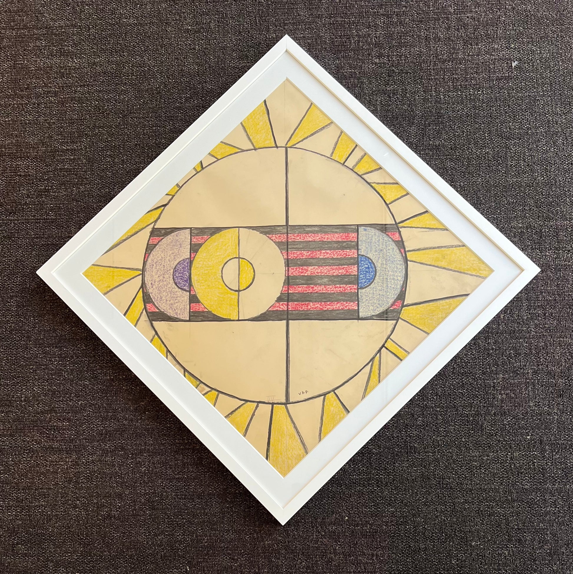 Vilhelm Bjerke Petersen (1909-1957). Sketch for stadsbiblioteket i Halmstad, oilchalk on paper, stamp signature. 68 x 68 (83 x 83) cm.